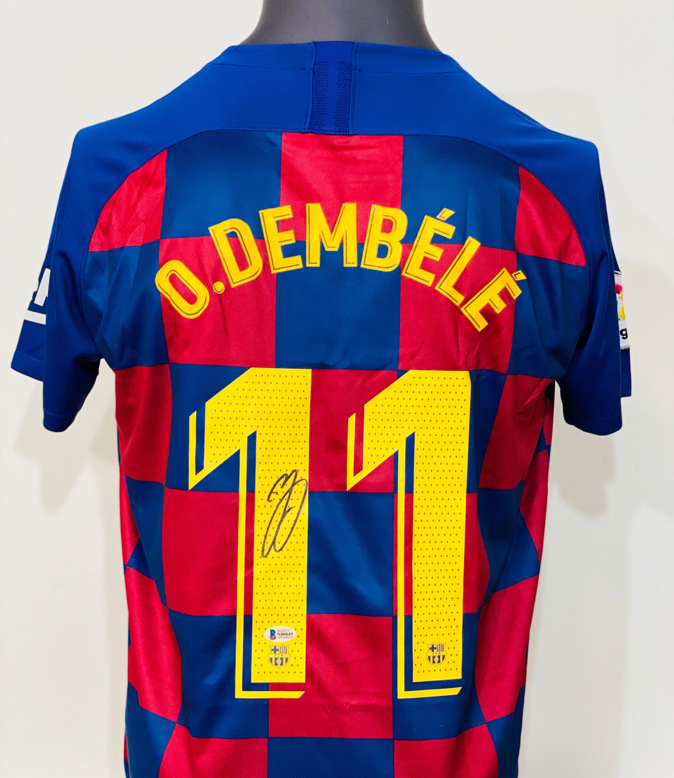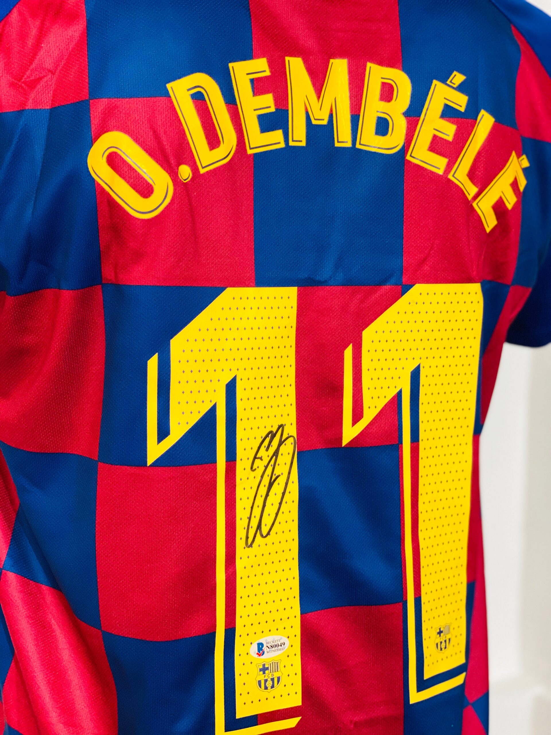Jersey autografiada por Dembélé, del Barcelona.