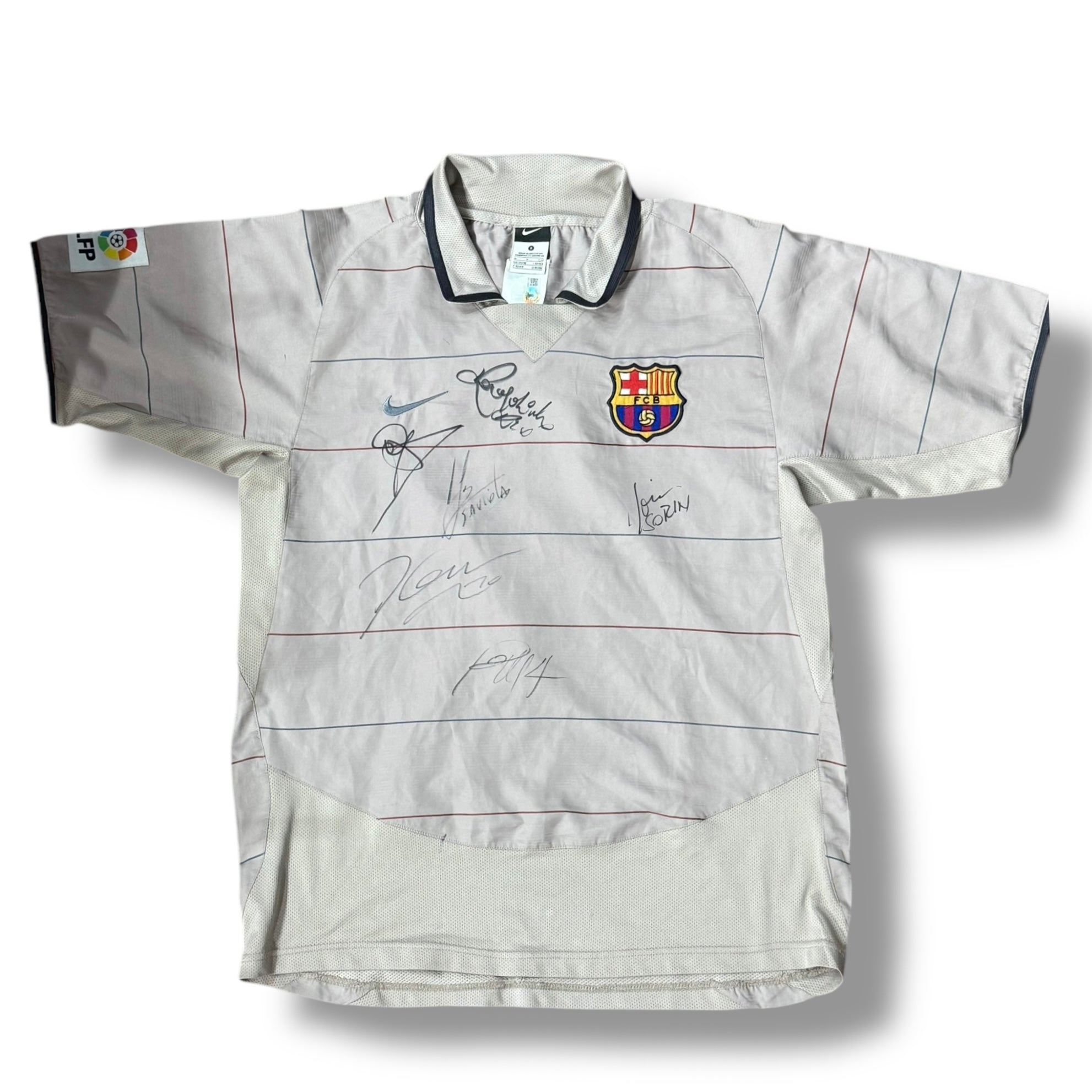 Jersey autografiado por los jugadores que marcaron la época mas grande del Barcelona, RONALDINHO – RAFAEL MARQUEZ (X2), DECO, SAVIOLA, PUYOL Y SORIN.