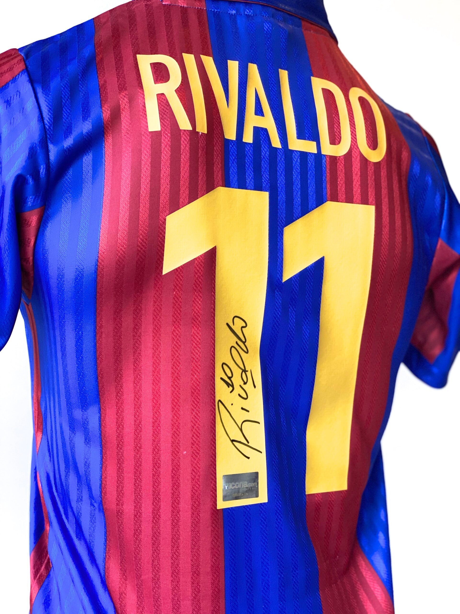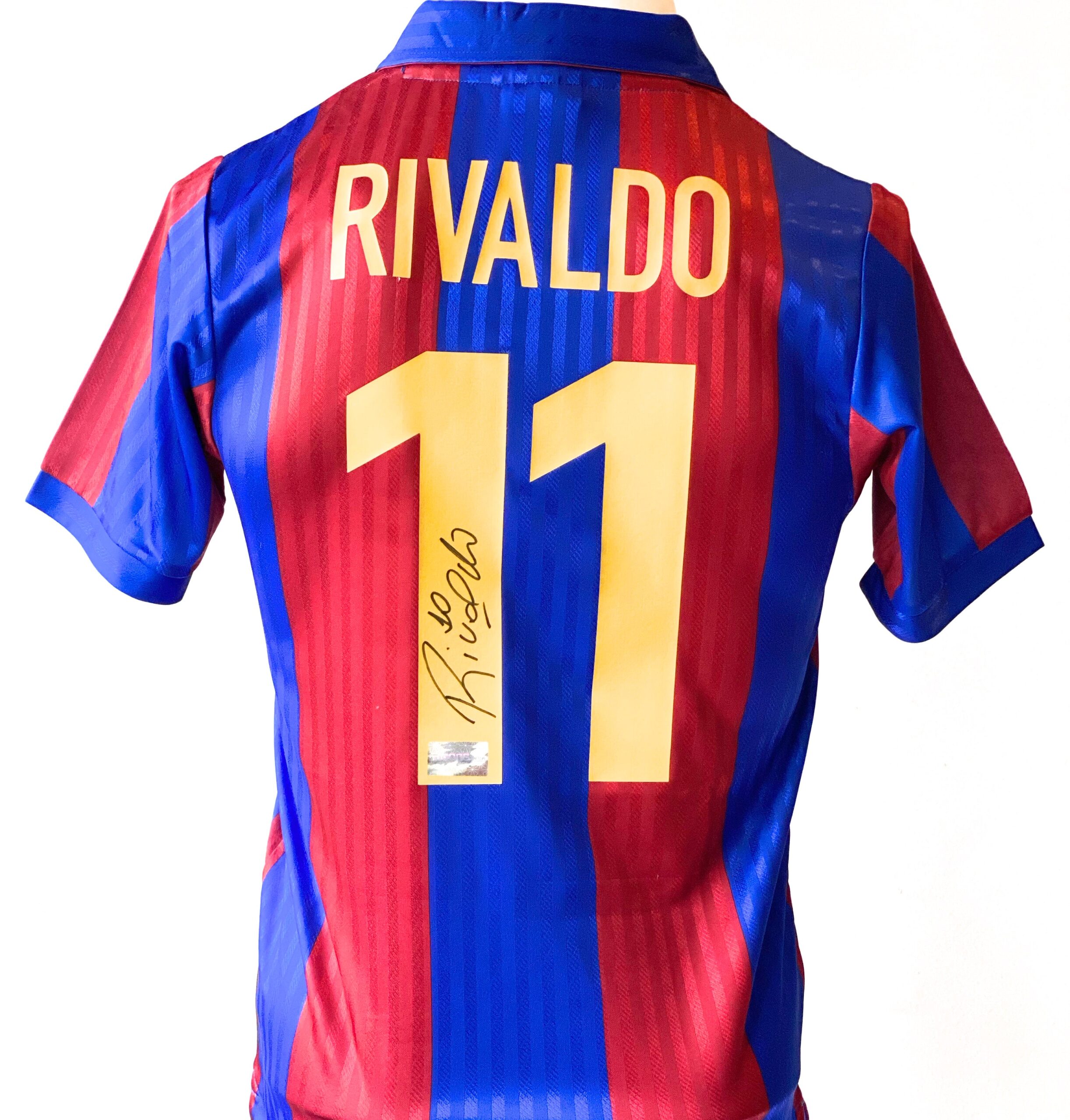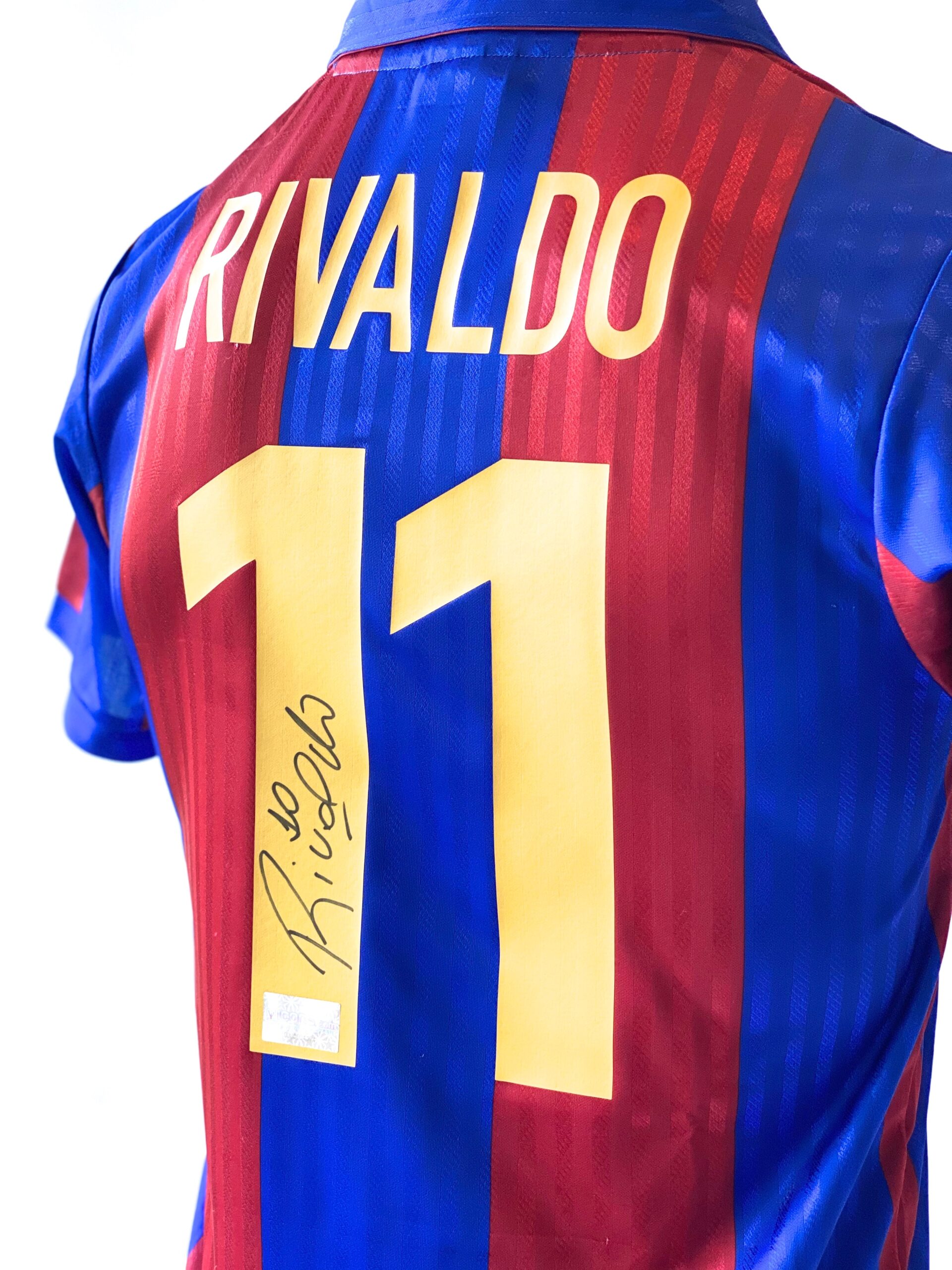 Jersey del Barcelona autografiado por Rivaldo. Vítor Borba Ferreira Gomes, más conocido como Rivaldo, es un exfutbolista brasileño. Fue considerado como uno de los mejores futbolistas del mundo de entre finales de los años 1990 y principios de los años 2000. Con la Selección Brasileña ganó la Copa América de 1999 y la Copa Mundial Corea del Sur-Japón 2002.