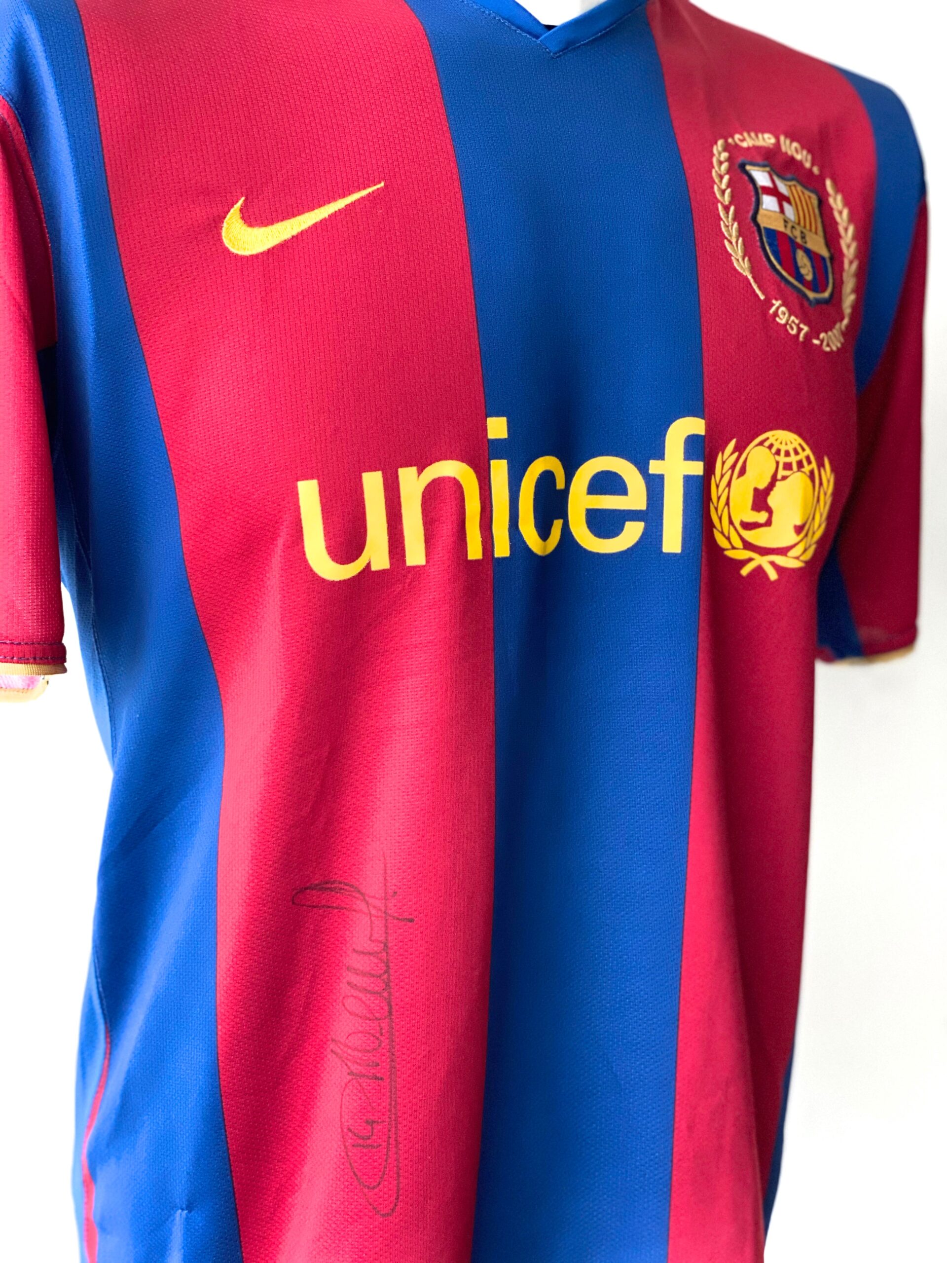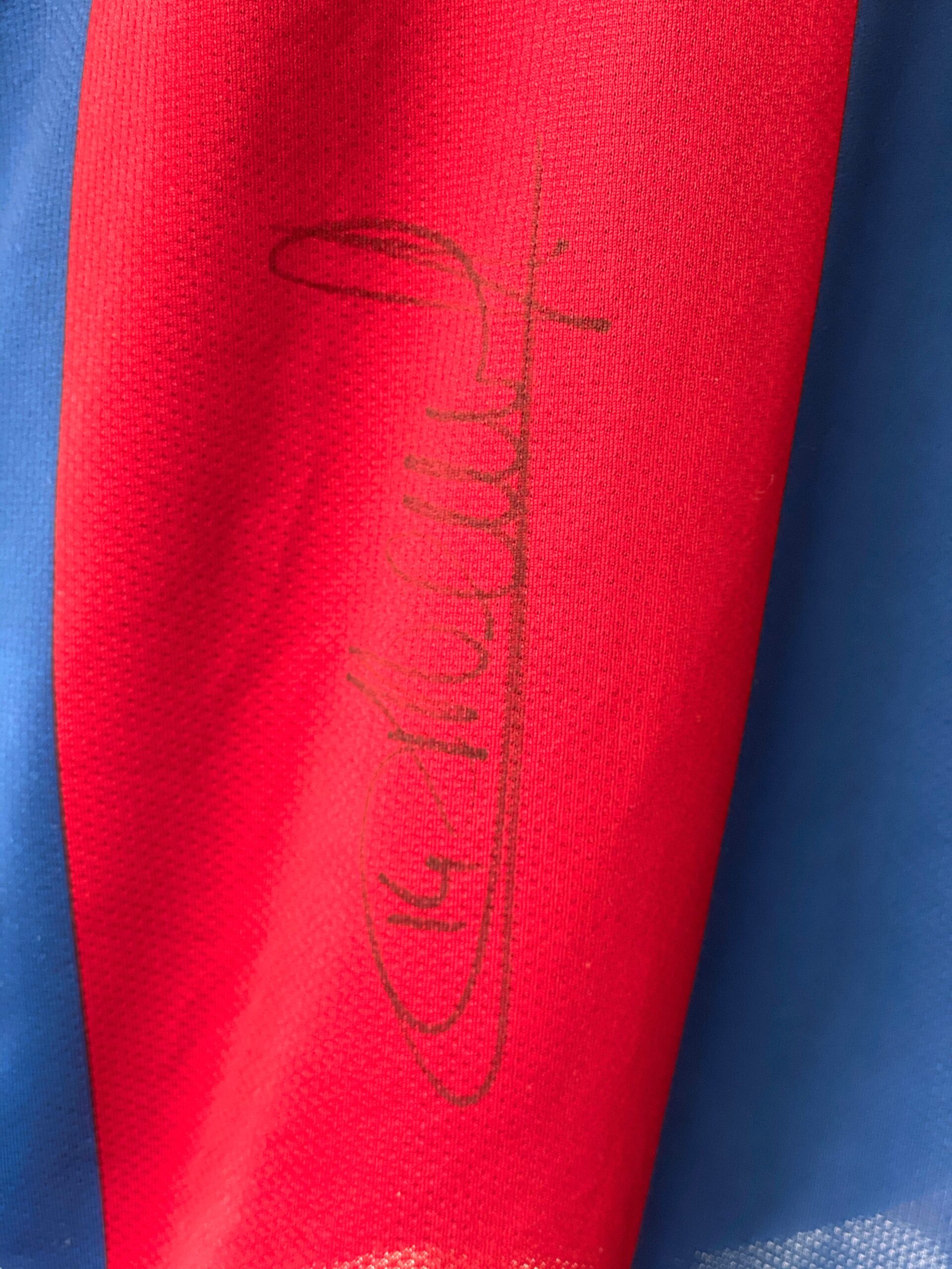 Jersey autografiada por Thierry Henry, del Barcelona. Thierry Daniel Henry es un exfutbolista francés. Actualmente es entrenador y se encuentra dirigiendo al Montreal Impact de la MLS. Jugaba de delantero, iniciando su carrera deportiva en 1994 en el A. S. Mónaco y retirándose en New York Red Bulls de la Major League Soccer de Estados Unidos en 2014.
