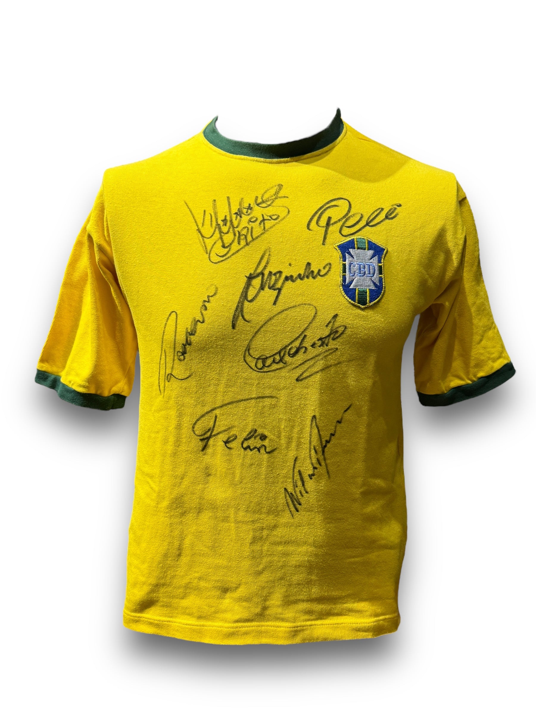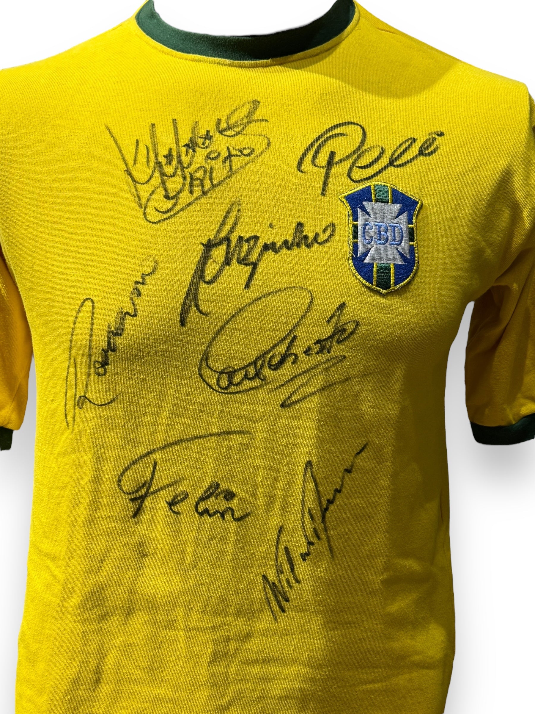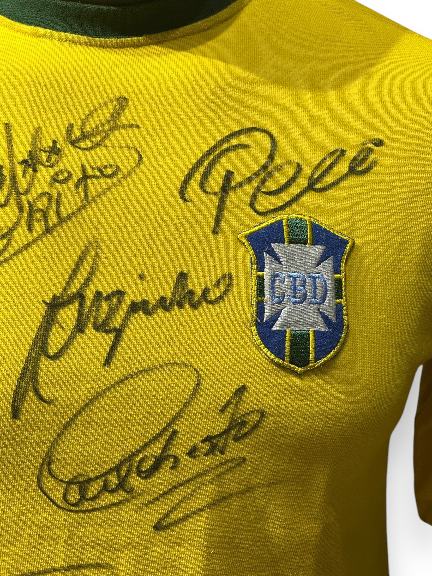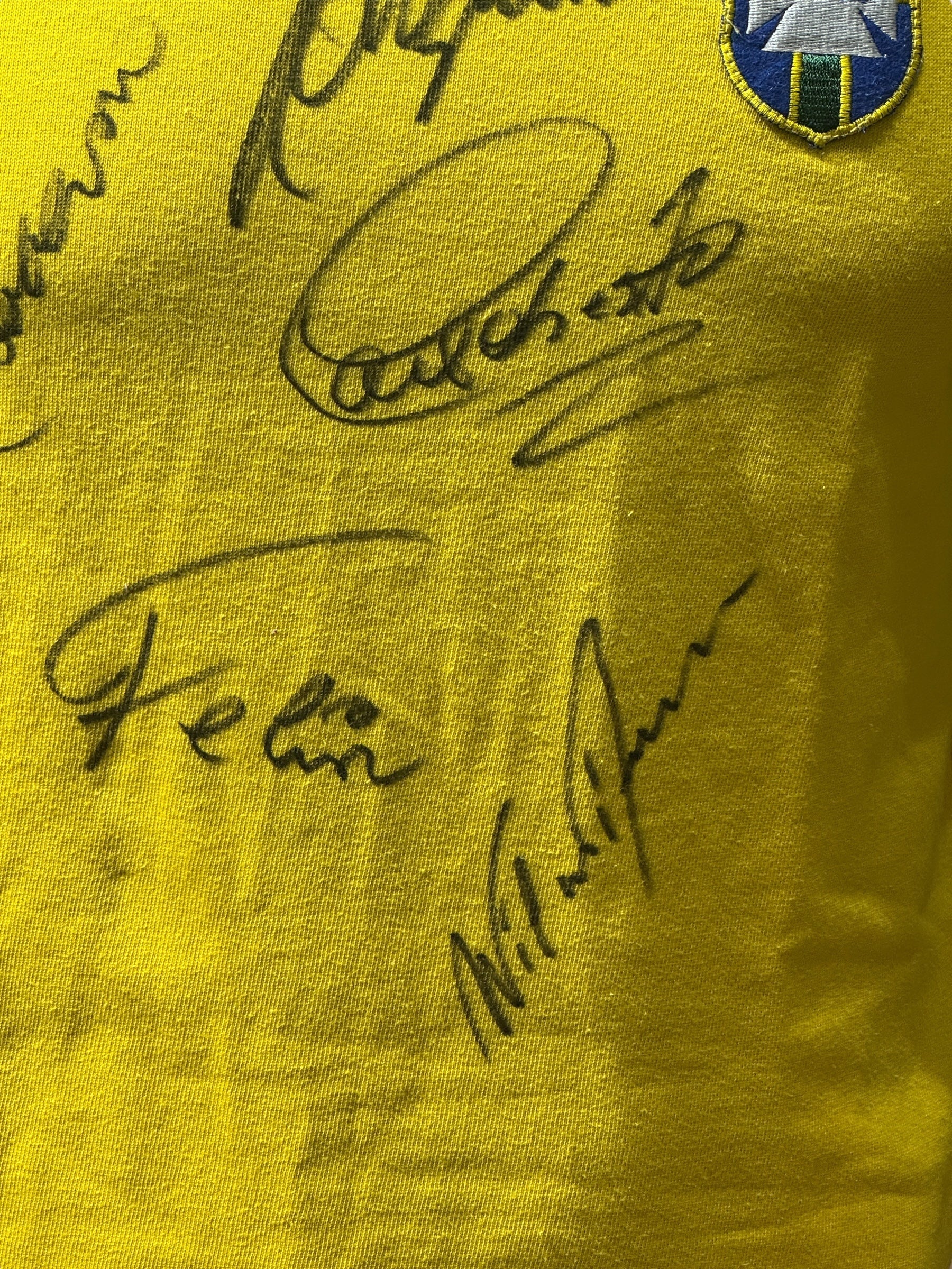 Jersey autografiado por algunas leyendas del equipo Brasil de 1970