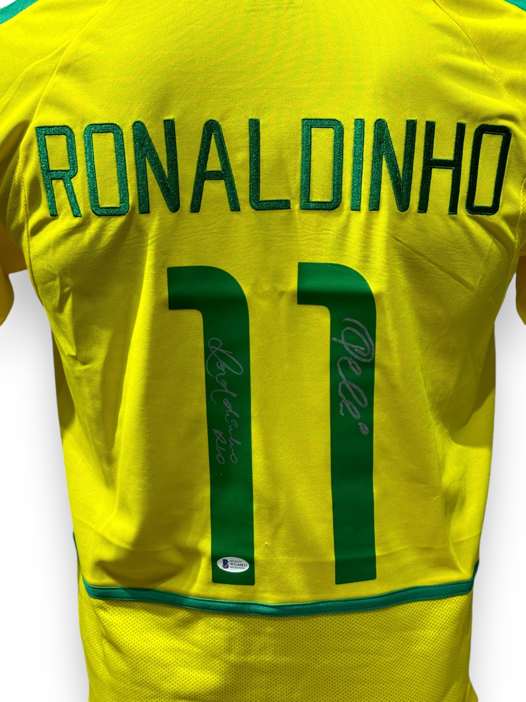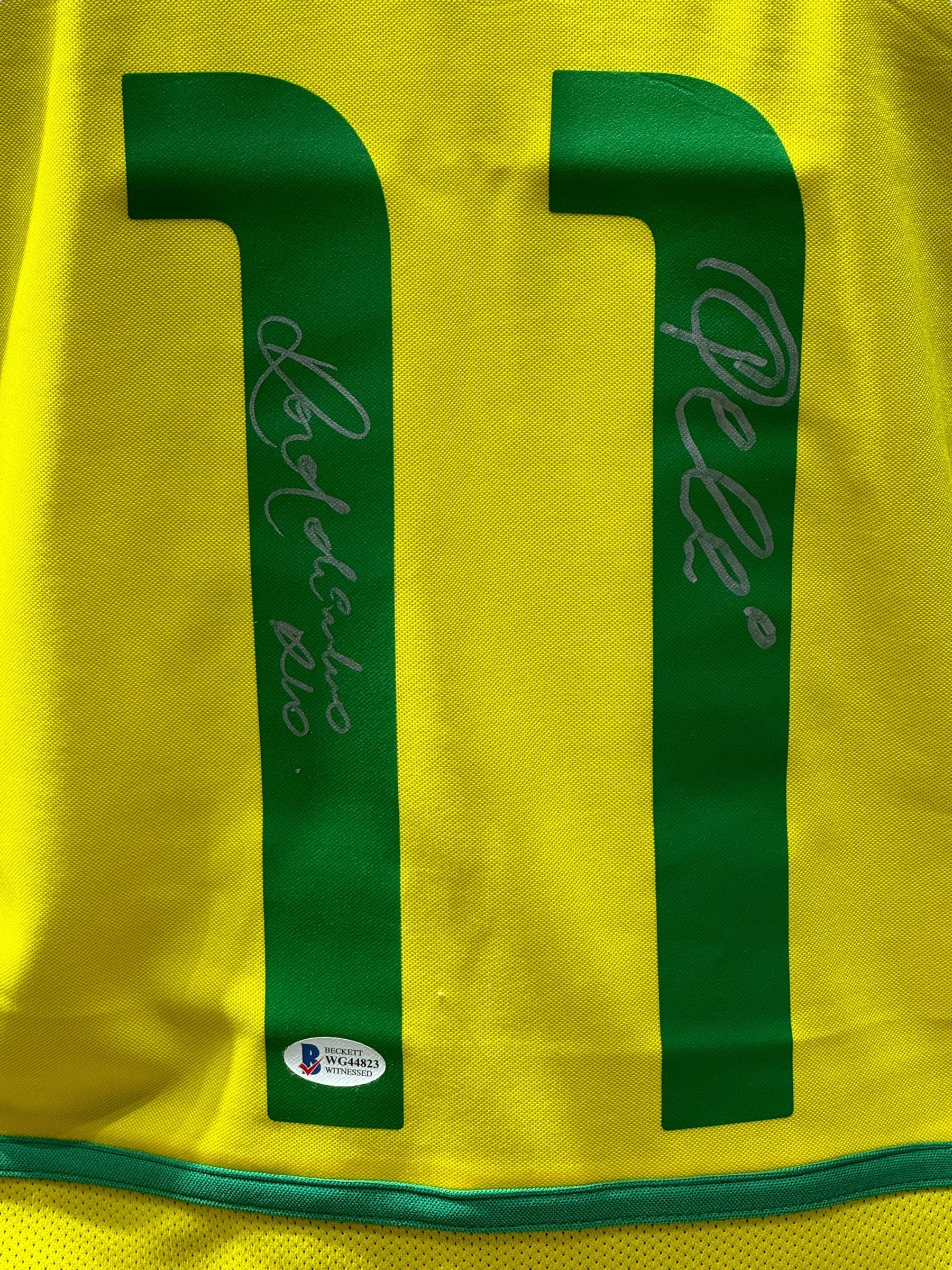 Jersey autografiado por los jugadores de Brasil Pelé y Ronaldinho