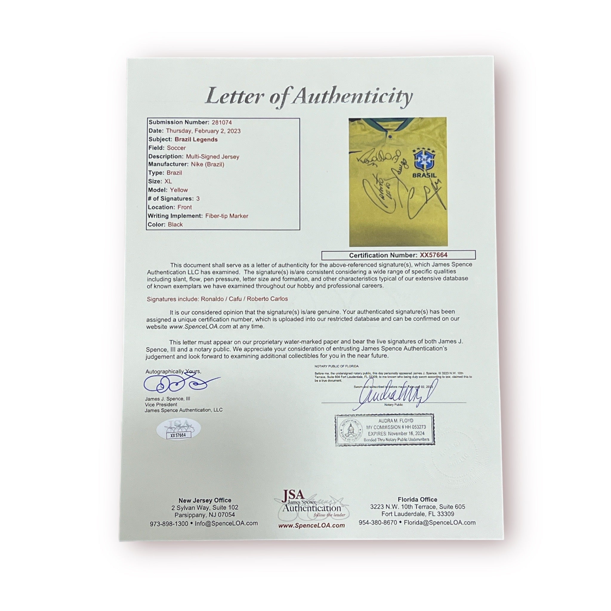 CERTIFICADO DE AUTENTICIDAD JSA (CARTA NOTARIADA)