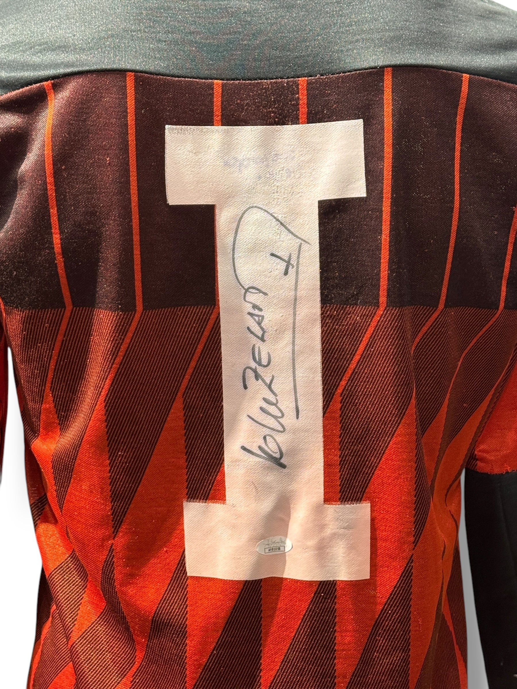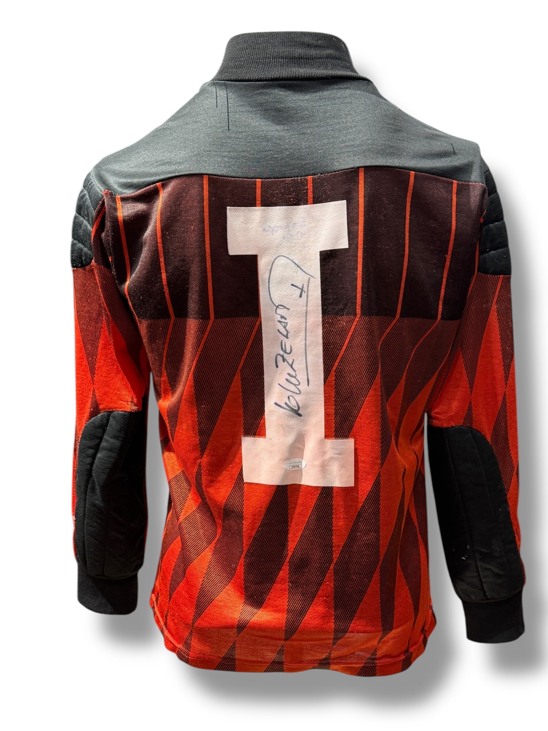 Jersey autografiado y usado por el exjugador del América, Héctor Miguel Zelada. Este jersey se usó en juego por el mejor arquero que ha tenido el Club América.