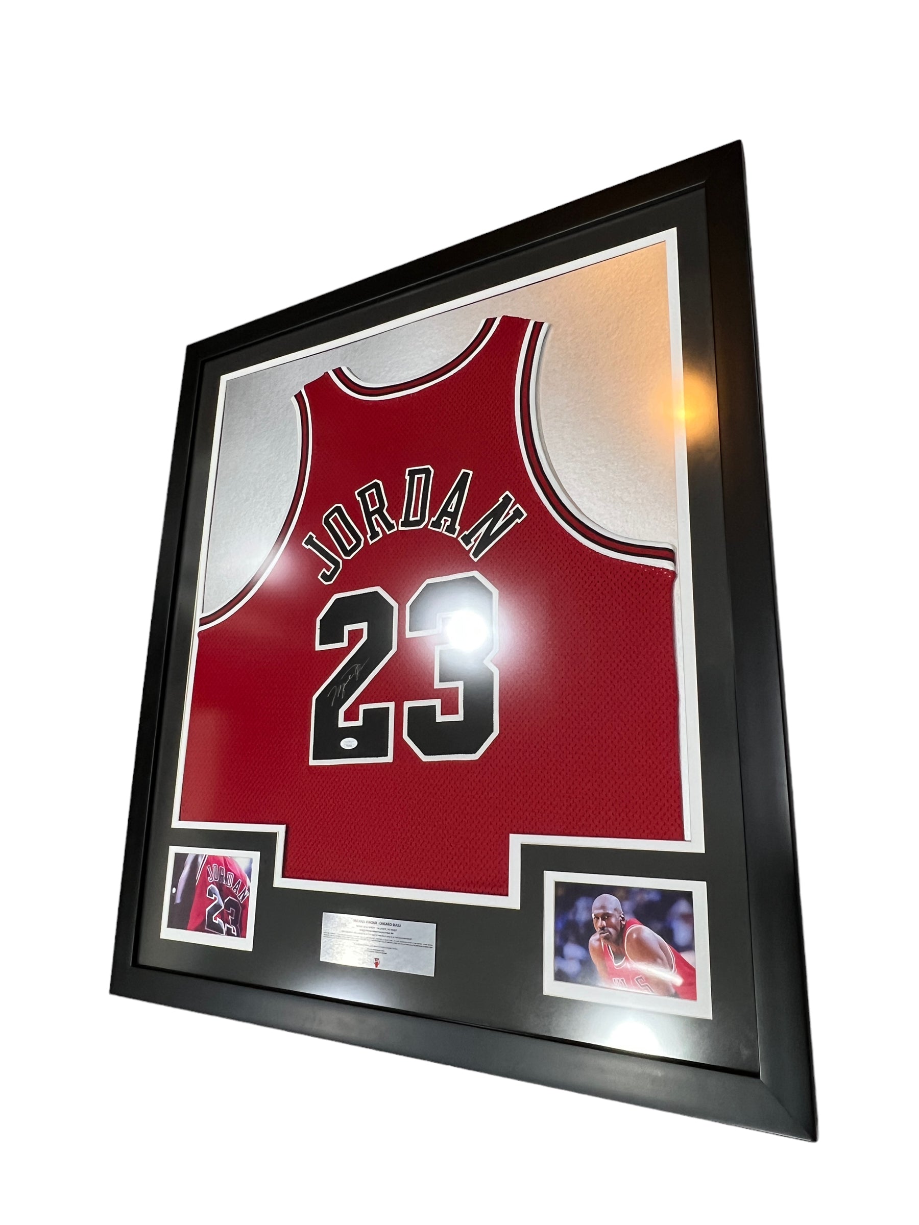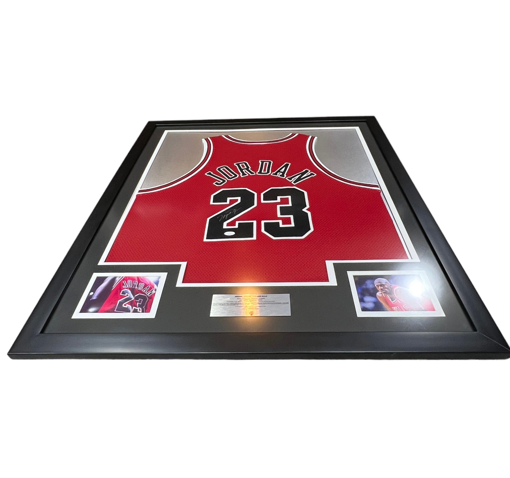 Jersey enmarcado por el jugador de los Bulls Michael Jordan