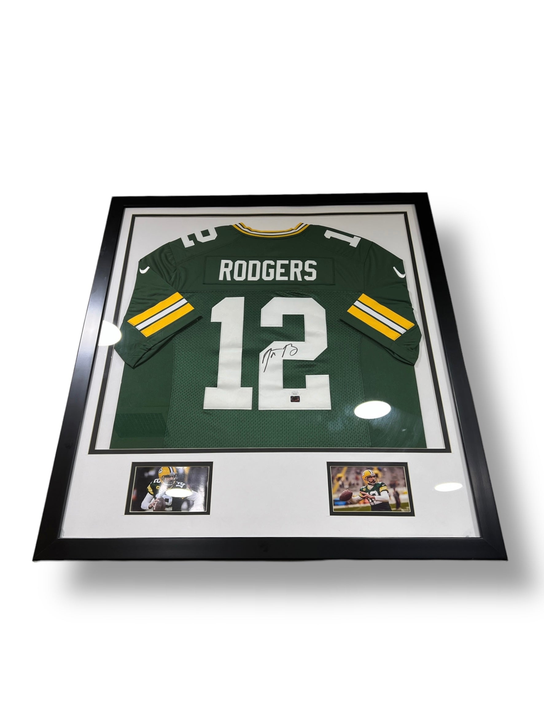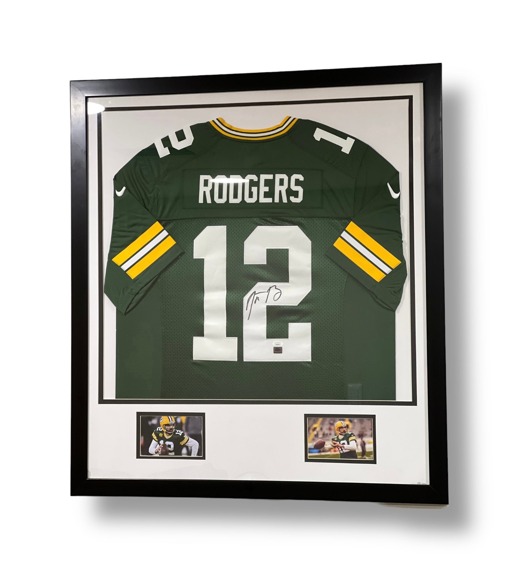 Jersey enmarcado autografiado por el jugador Aaron Rodgers