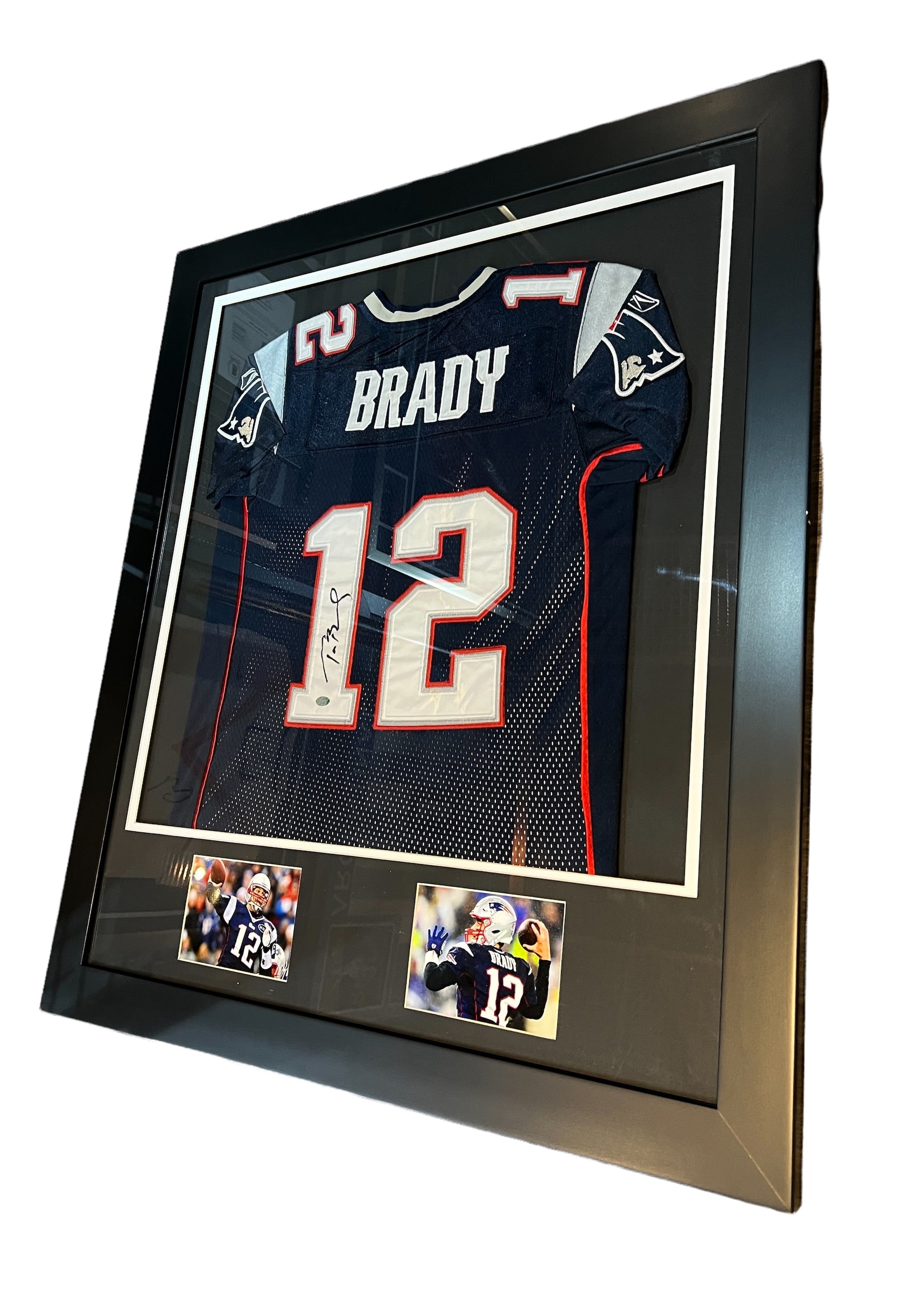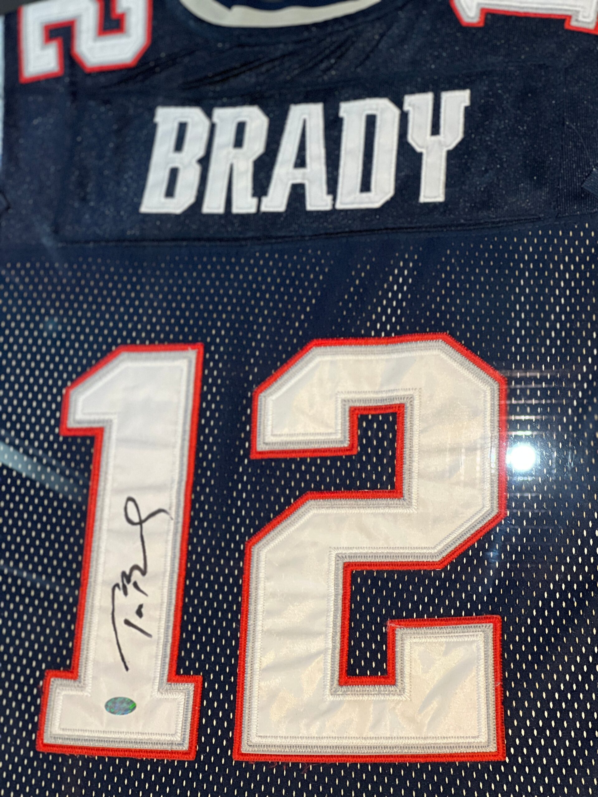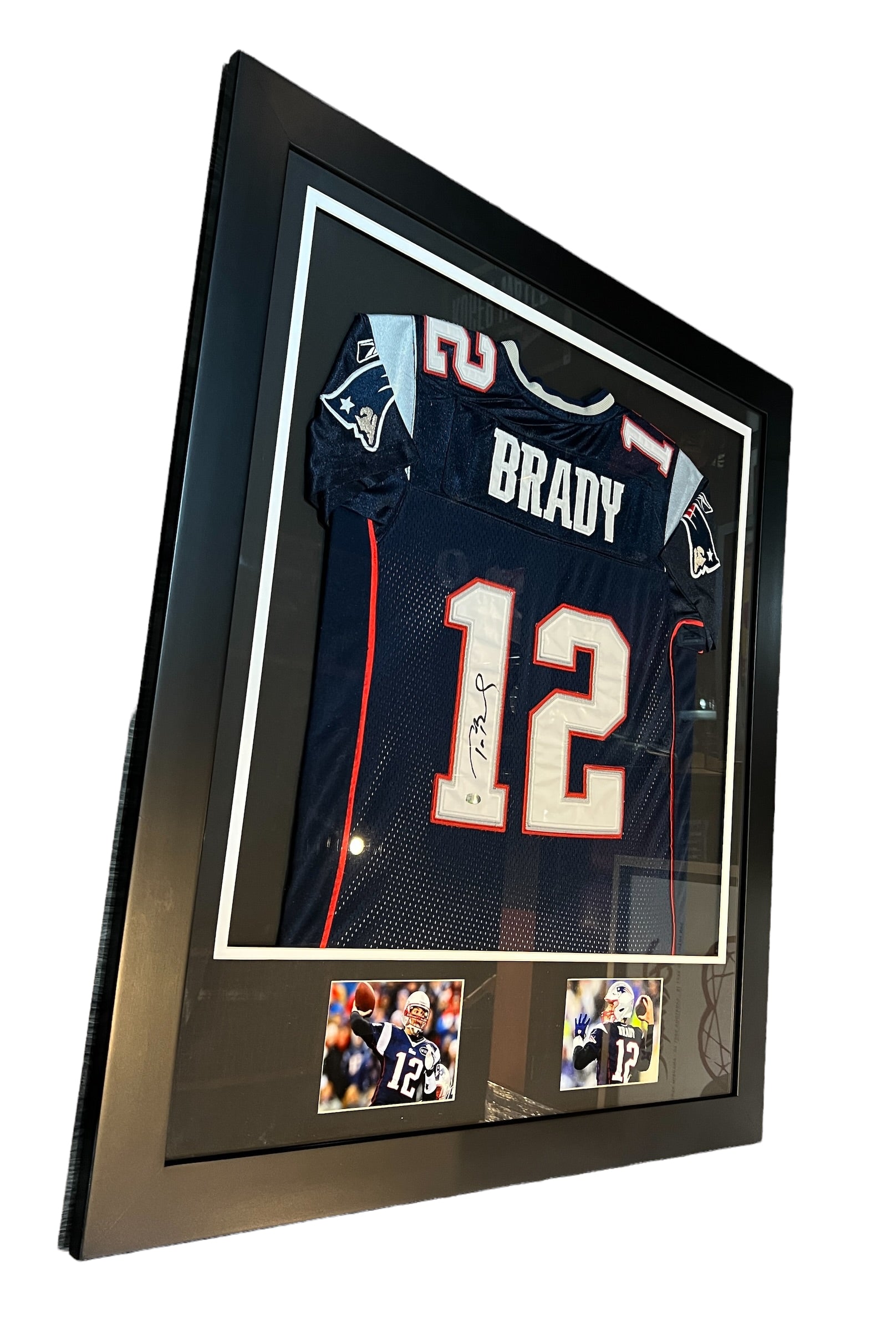 Jersey enmarcado y autografiado por el jugador de los Patriots Tom Brady