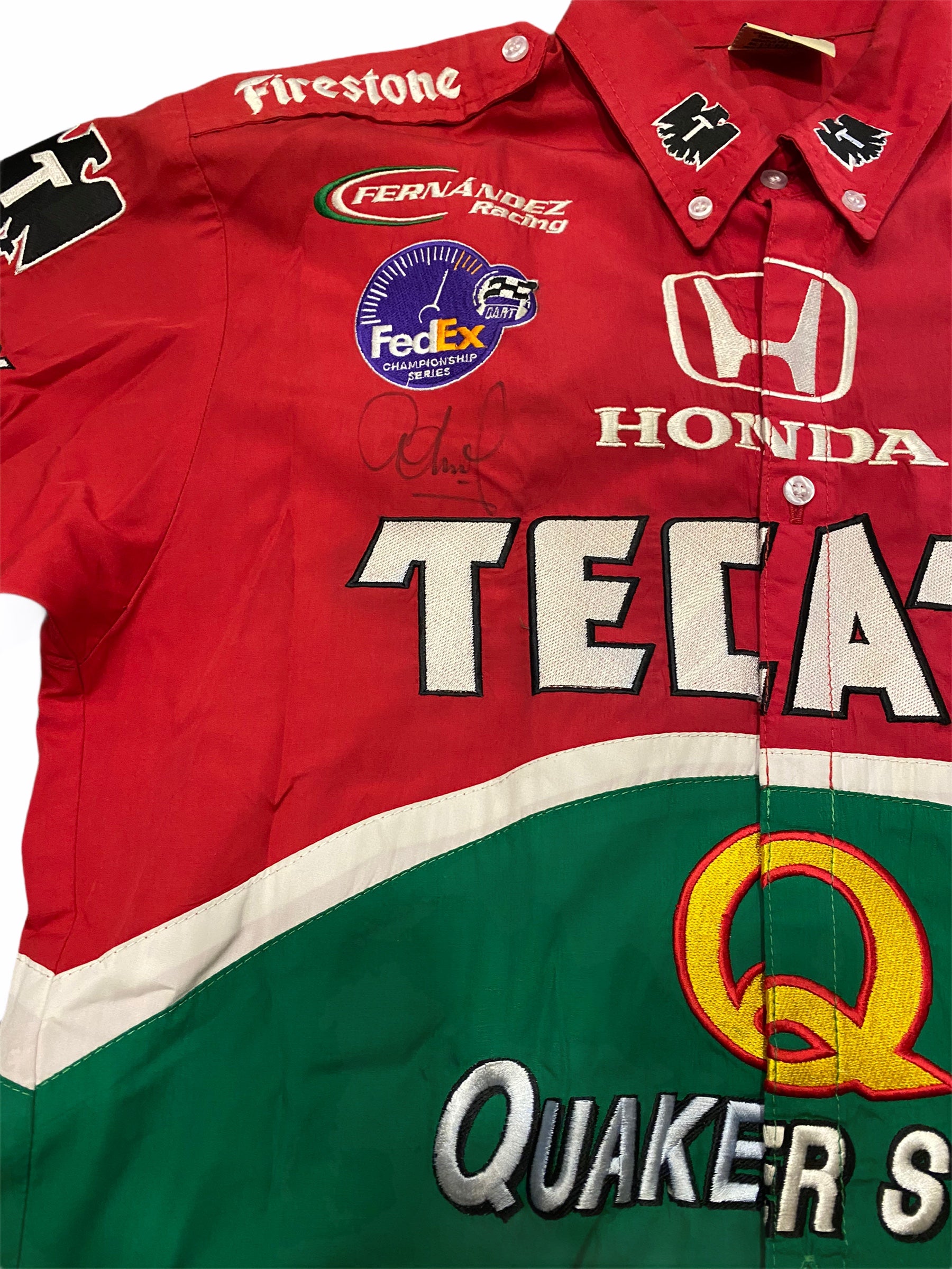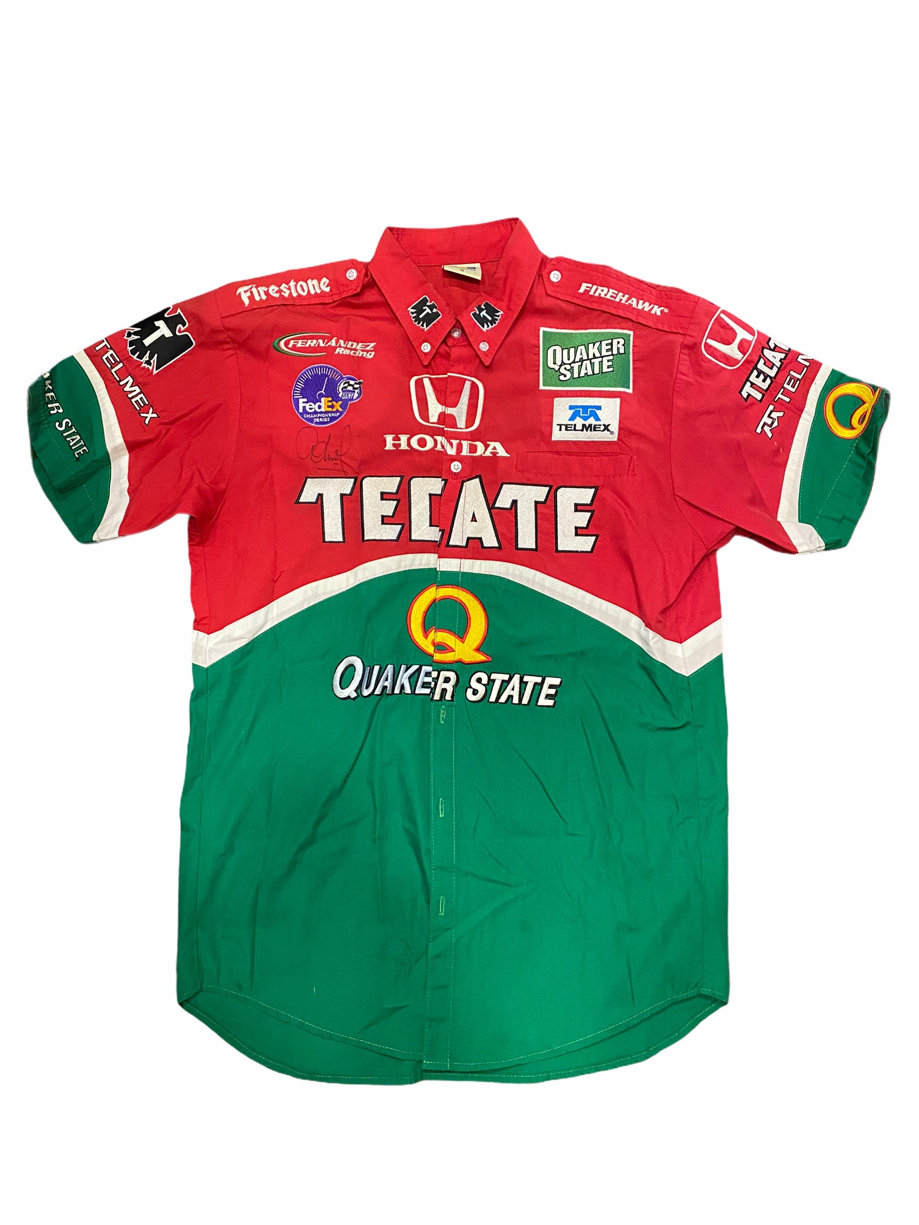 Jersey autentico firmado por el ex corredor mexicano de Indy car Adrián Fernández.