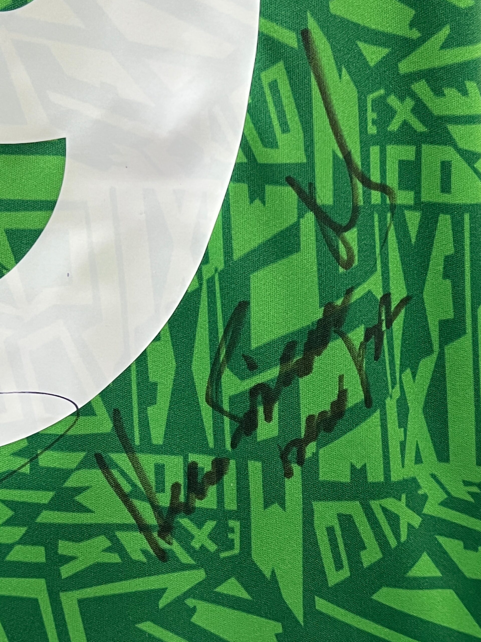 Jersey autografiado por Hugo Sánchez Zague y Jorge Campos (firmas atrás)