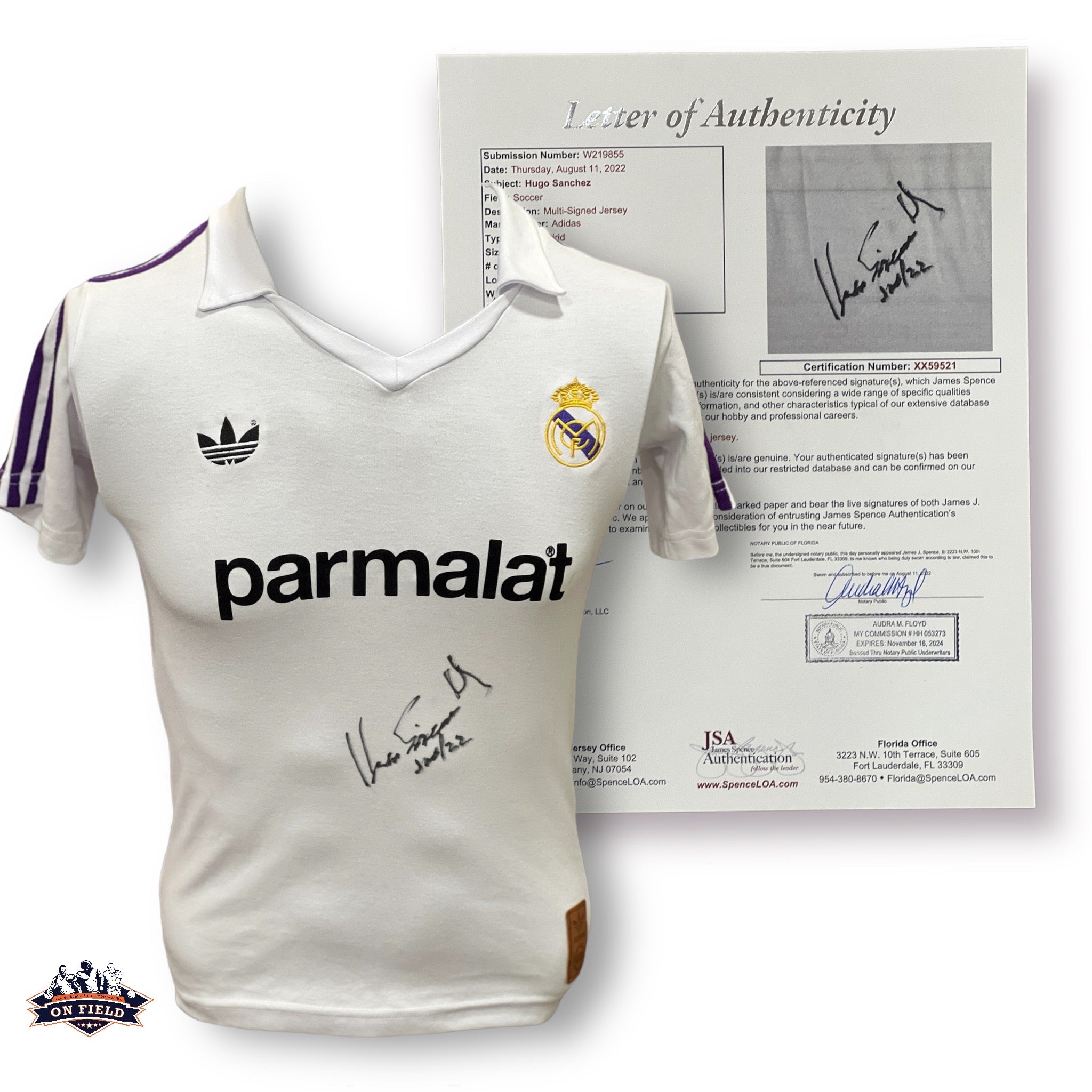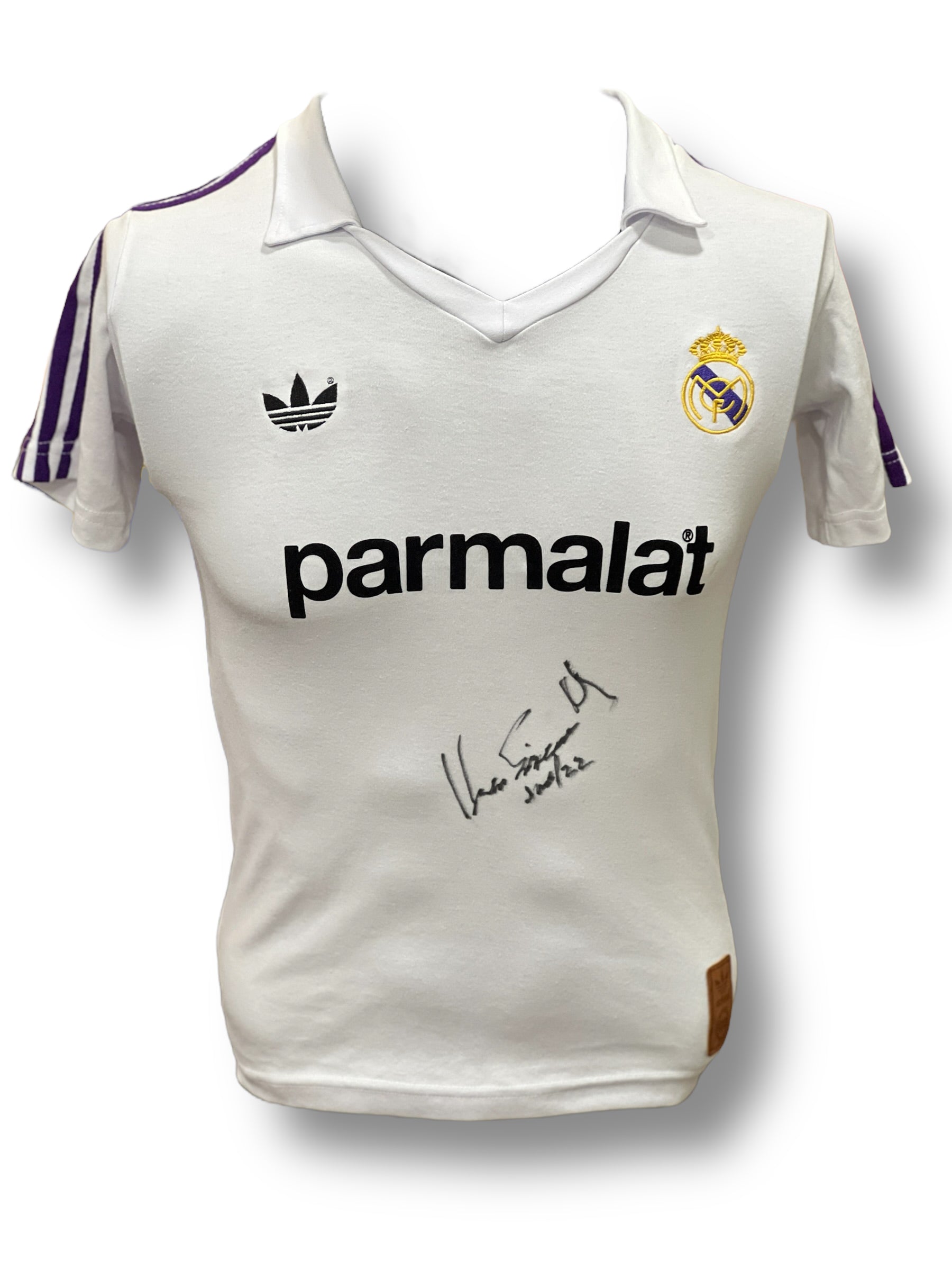 Jersey autografiado por el jugador del Real Madrid Hugo Sánchez.