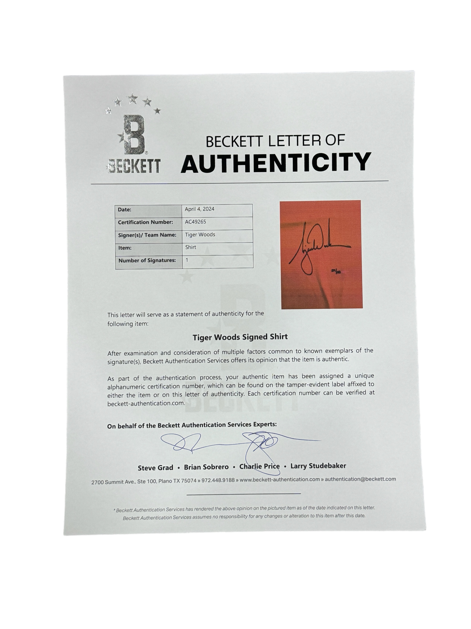 Certificado Beckett