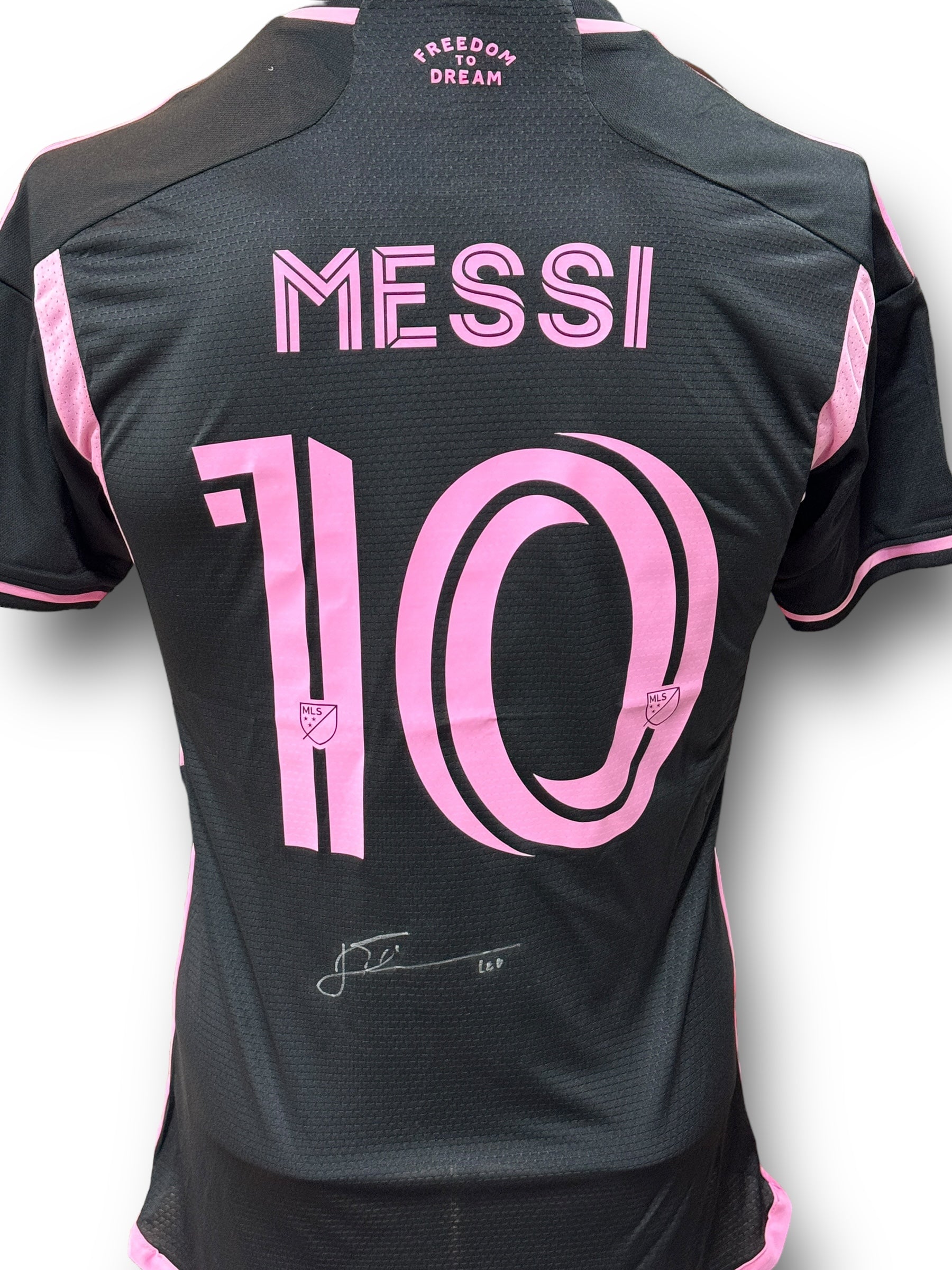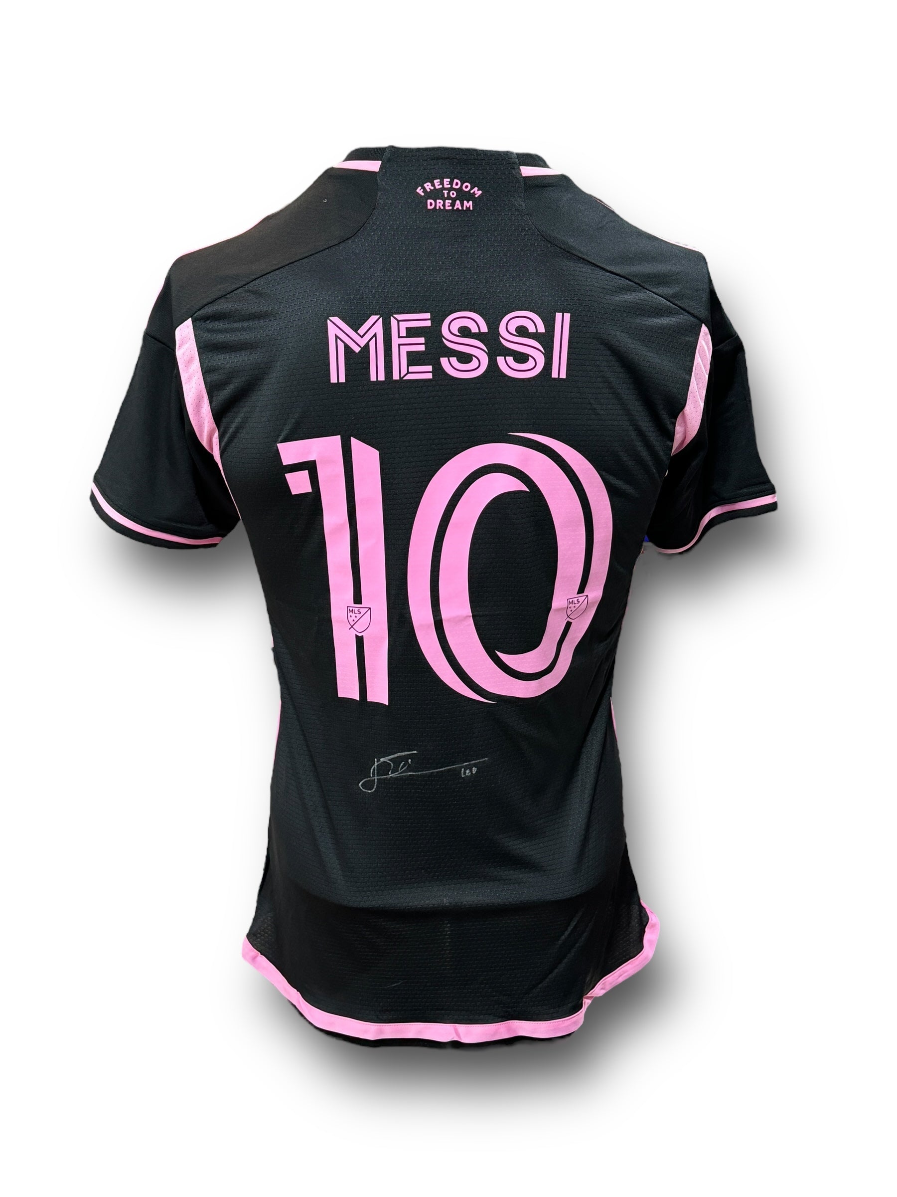 Jersey autografiado por el jugador argentino Lionel Messi en color negro