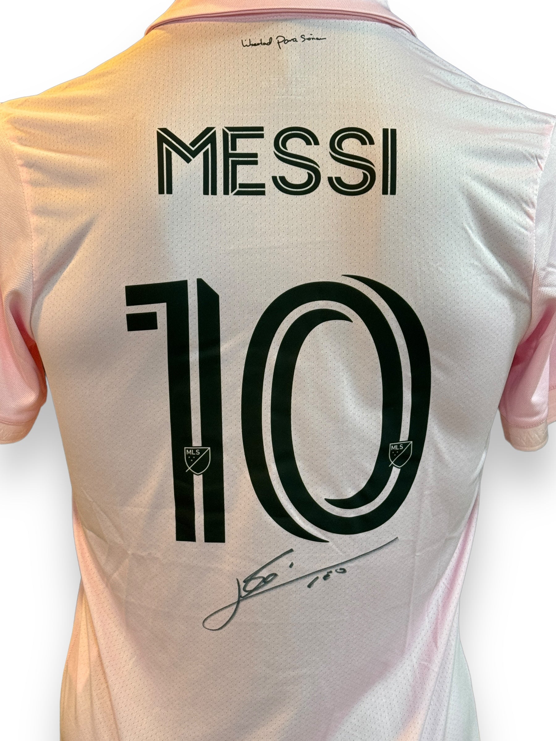 Jersey autografiado por el jugador argentino Lionel Messi en color Rosa