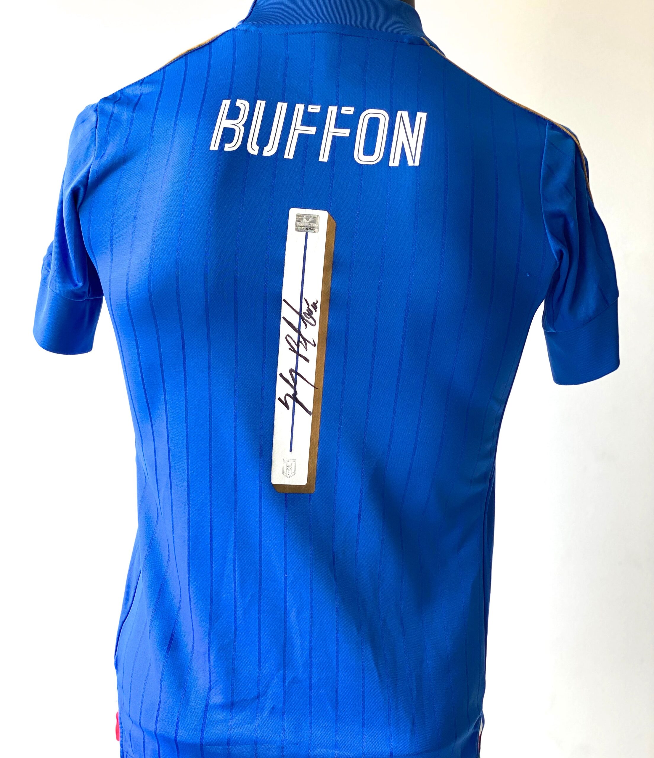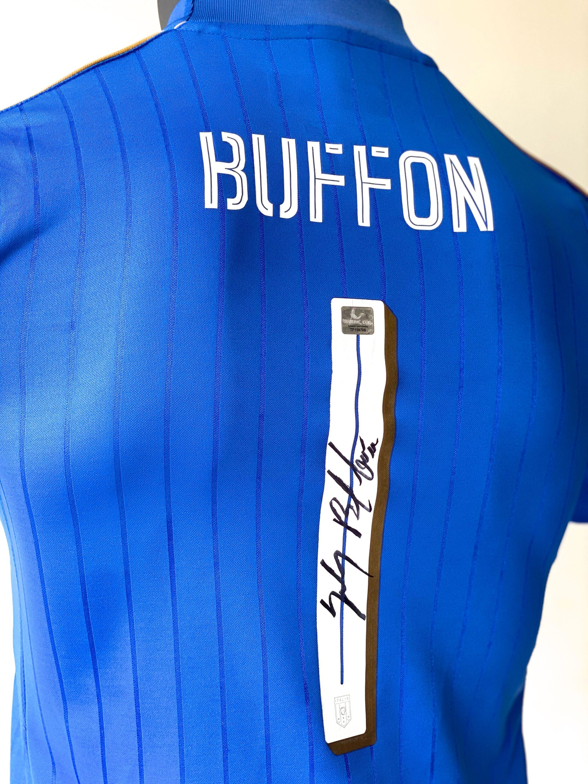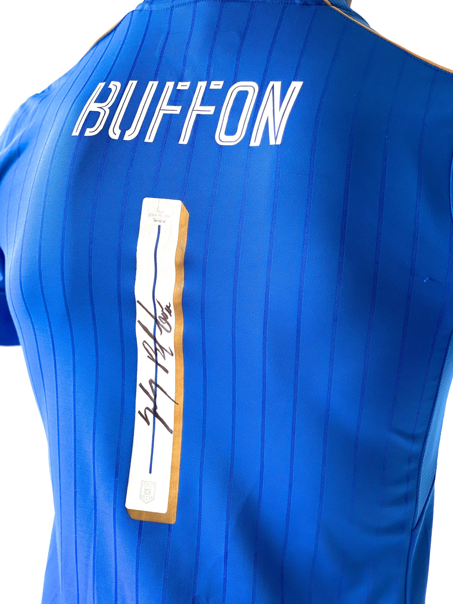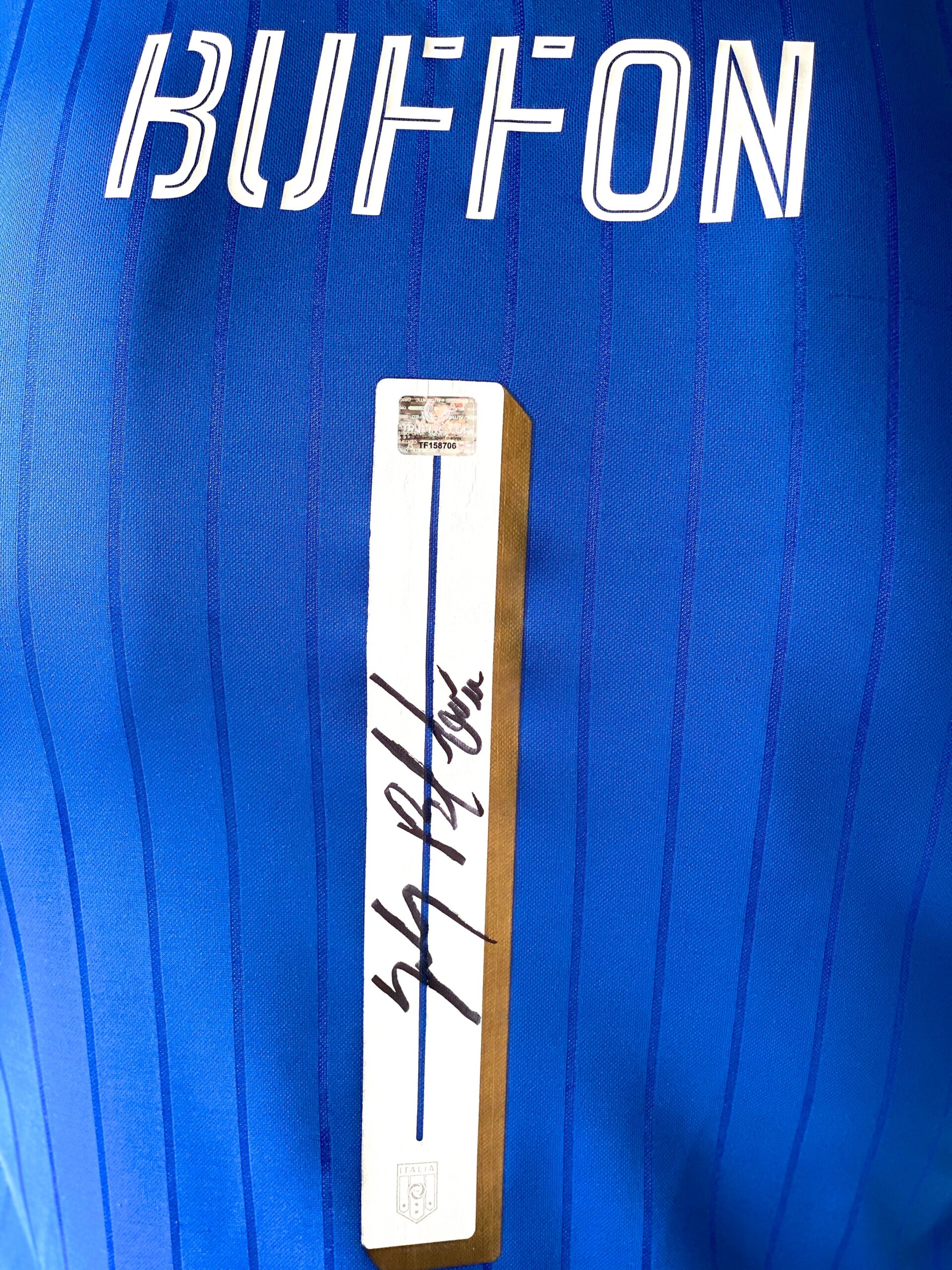 Jersey autografiado por aquel histórico de la Selección Italiana Gianluigi Buffon.  Gianluigi Buffon es un futbolista italiano que juega de Guardameta en la Juventus de la Serie A de Italia​ Inició su carrera deportiva en el Parma Football Club, al que ingresó a los 13 años, debutando profesionalmente con el primer equipo en 1995.