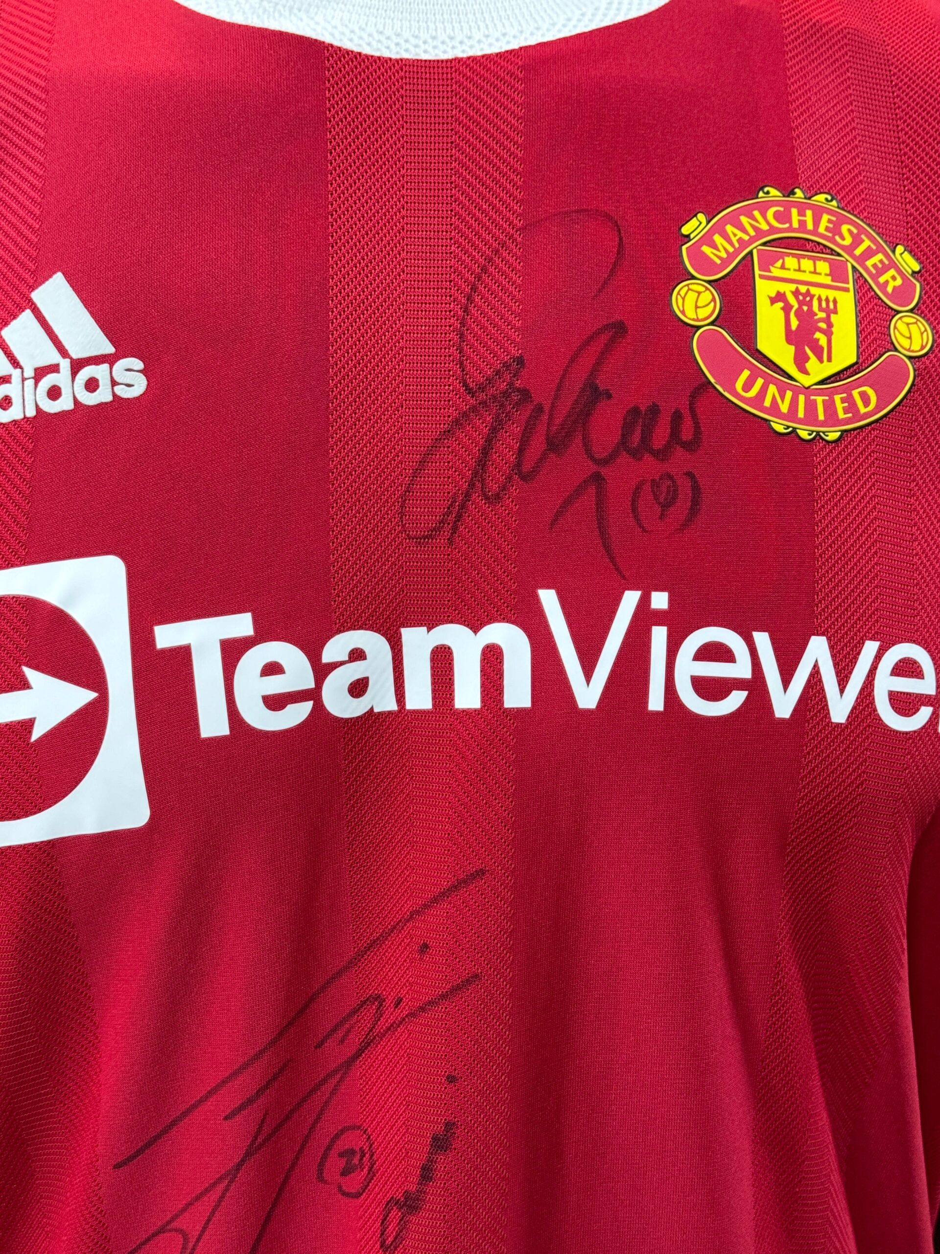 Jersey del equipo de Manchester United autografiado por el Chicharito Hernández – Cavani – Falcao.