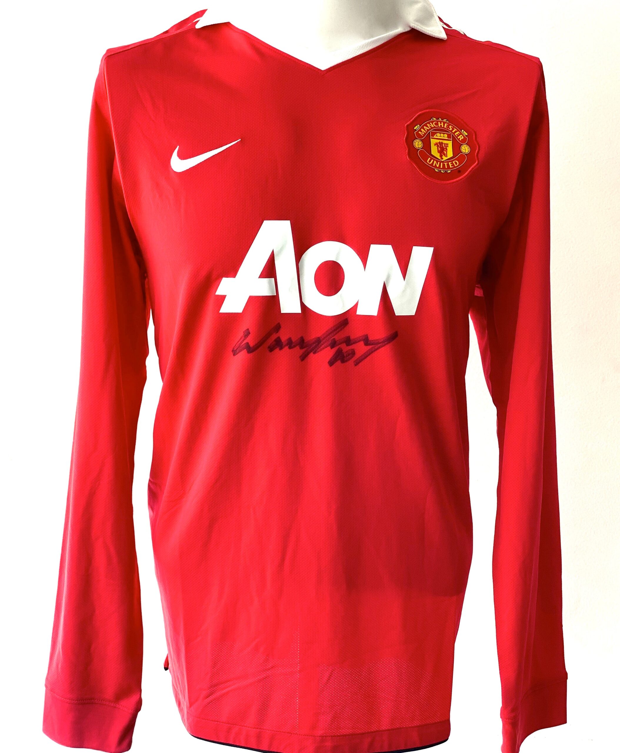 Jersey autografiado por Wayne Rooney, del Manchester United. Rooney inició su carrera deportiva en el Everton, después de unirse a sus categorías inferiores a la edad de 10 años. Debutó profesionalmente en 2002 después de su ascenso al primer equipo.