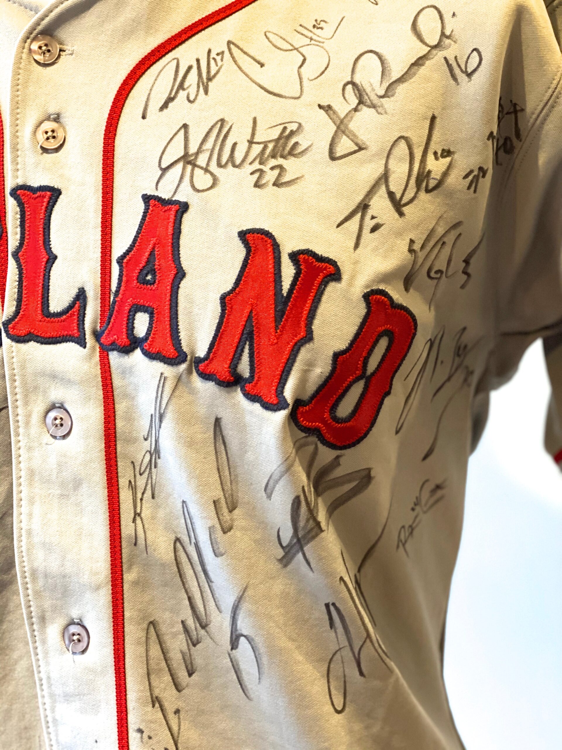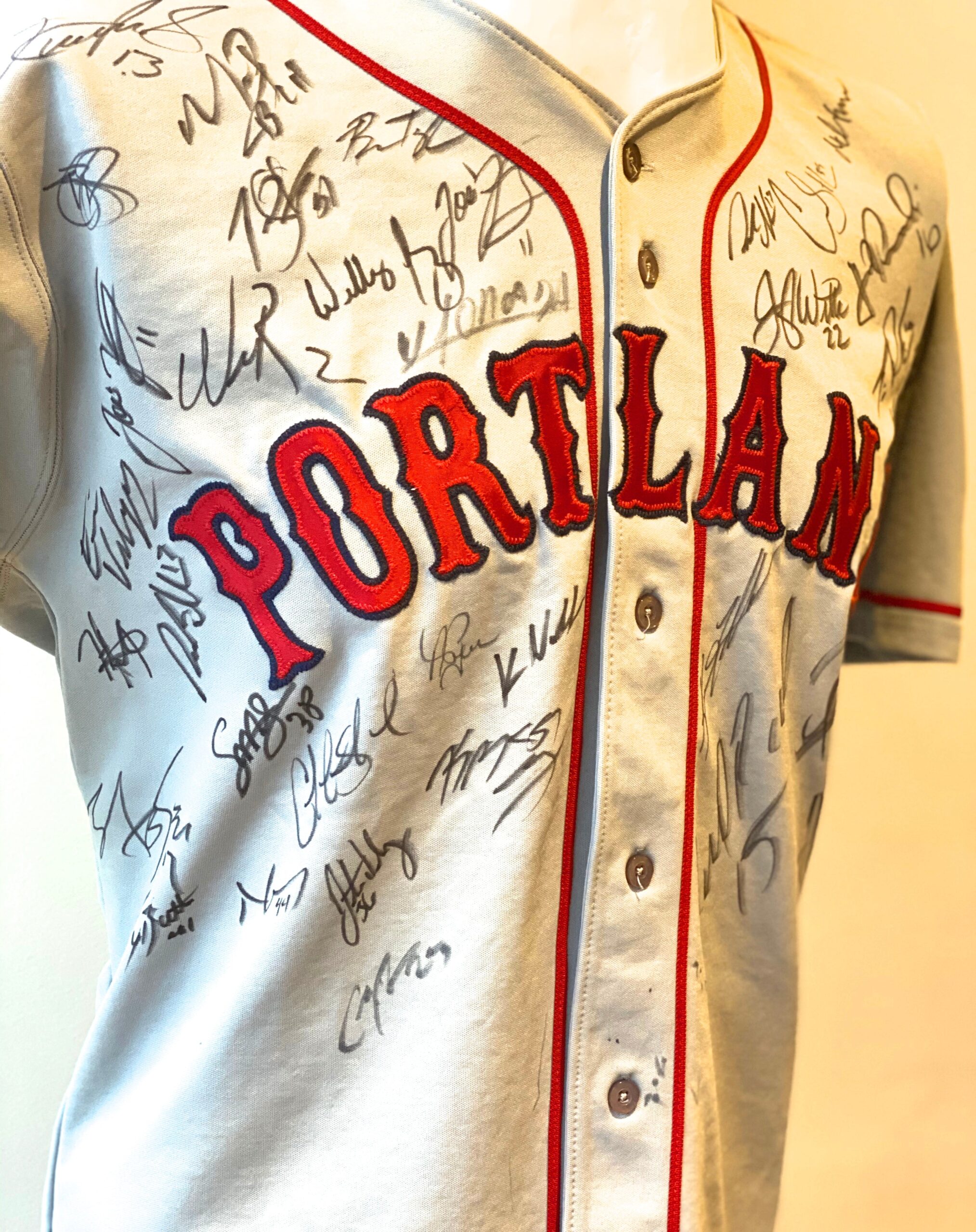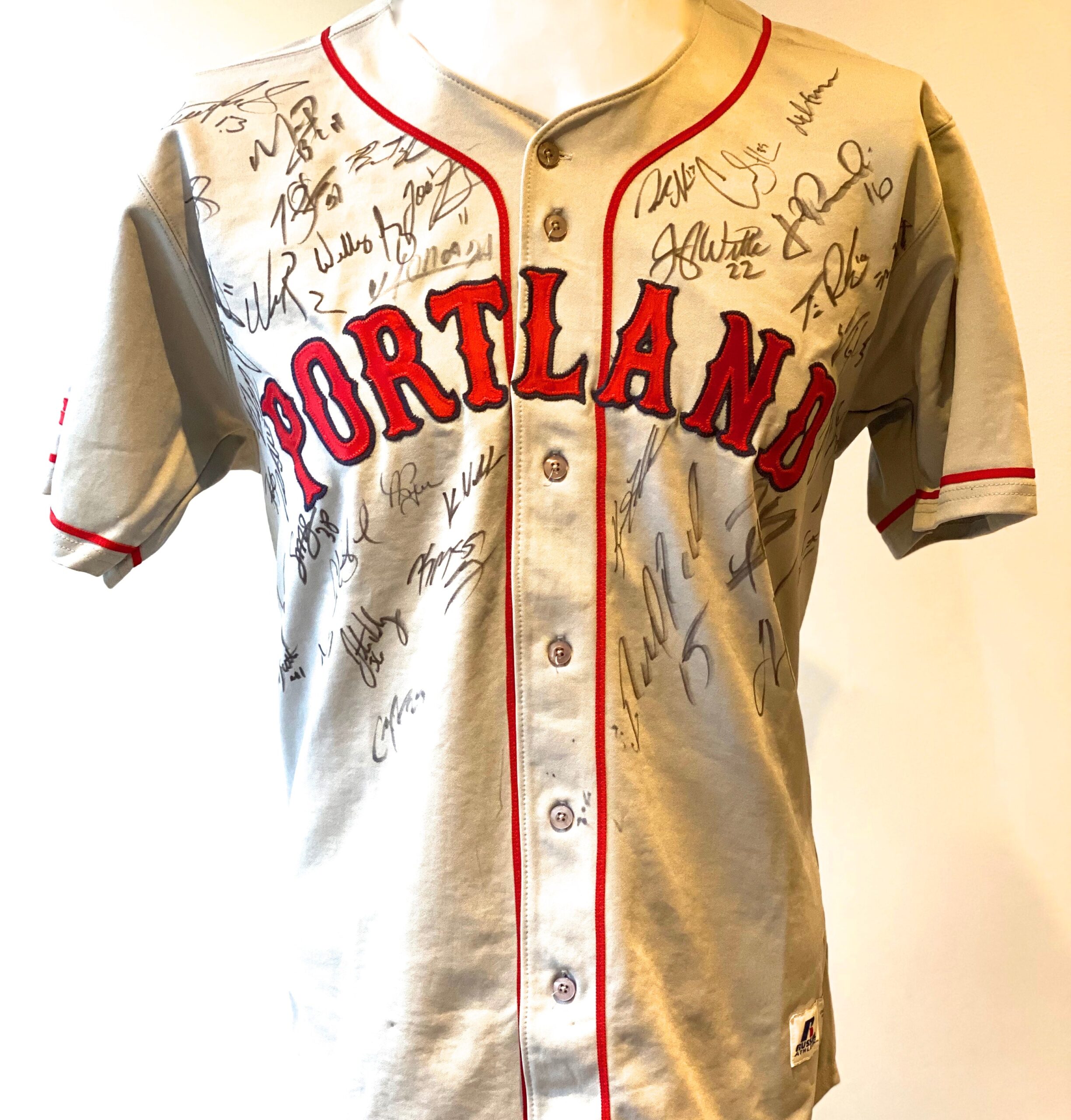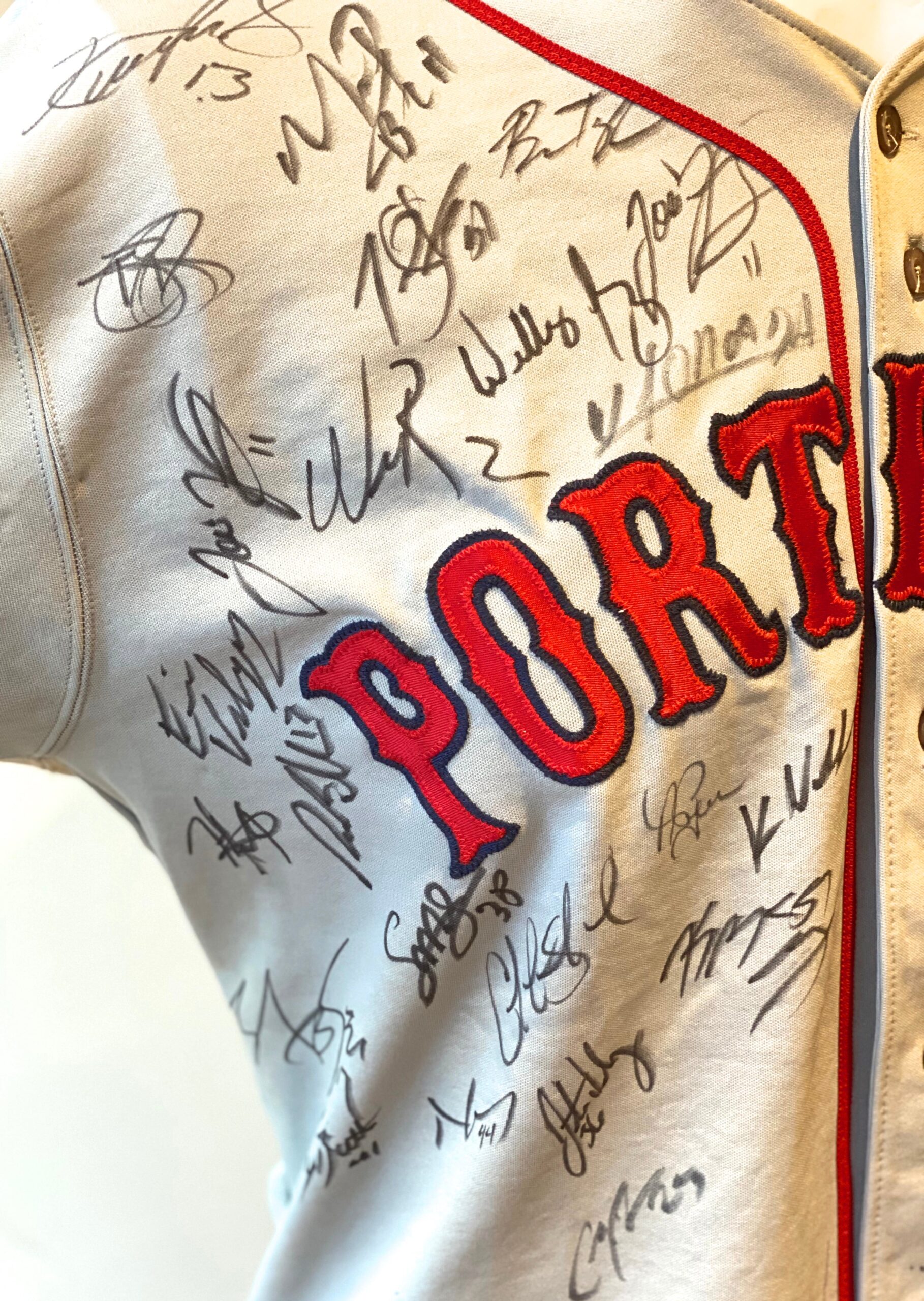 Jersey autografiada por el equipo de Ligas Menores de los Red Sox (Portland Sea Dogs) de la temporada 2016. En este equipo militaron ese año los hoy jugadores de ligas mayores Andrew Benintendi y Joan Moncada.