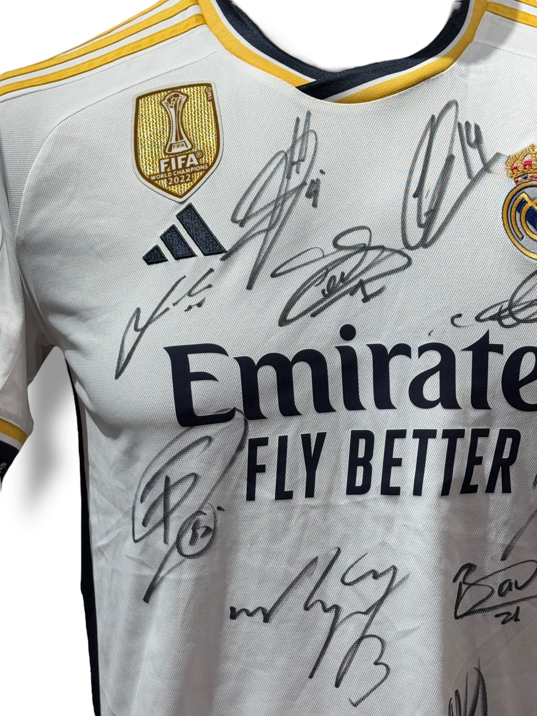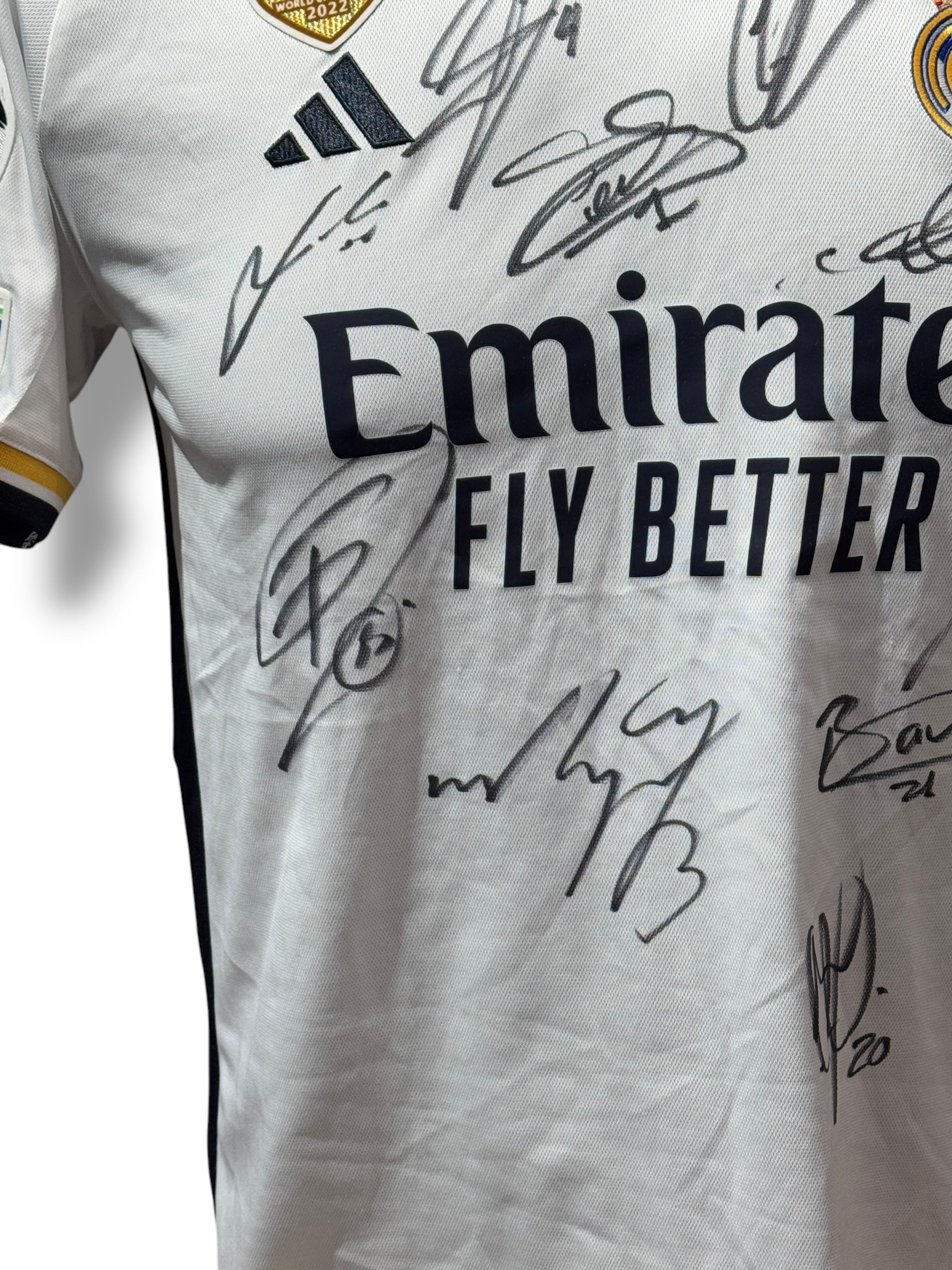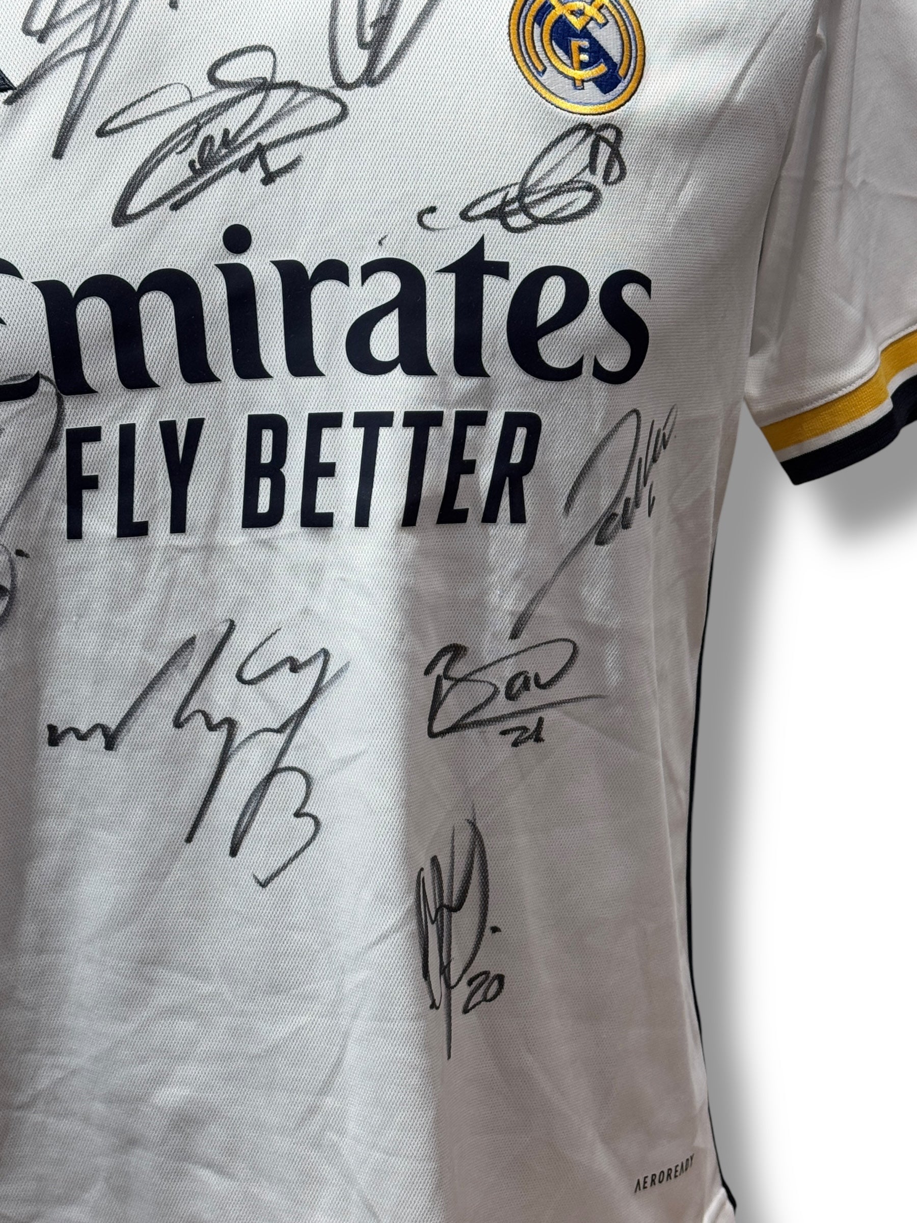Jersey autografiado por el equipo del Real Madrid temporada 2022.