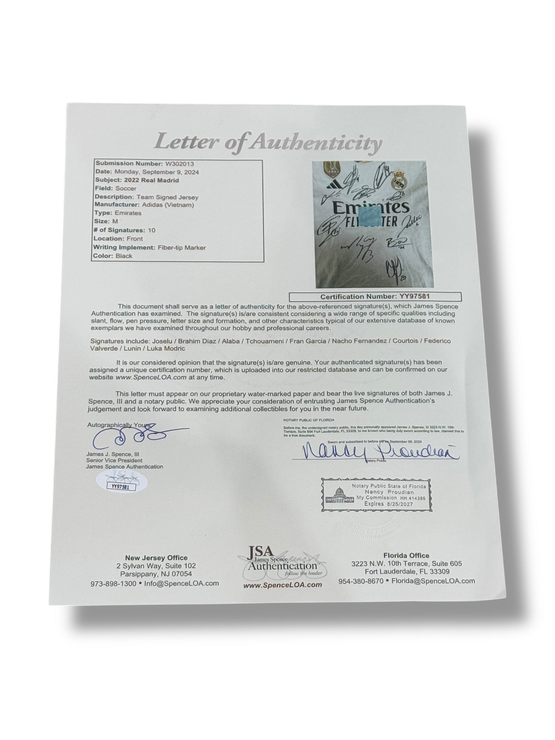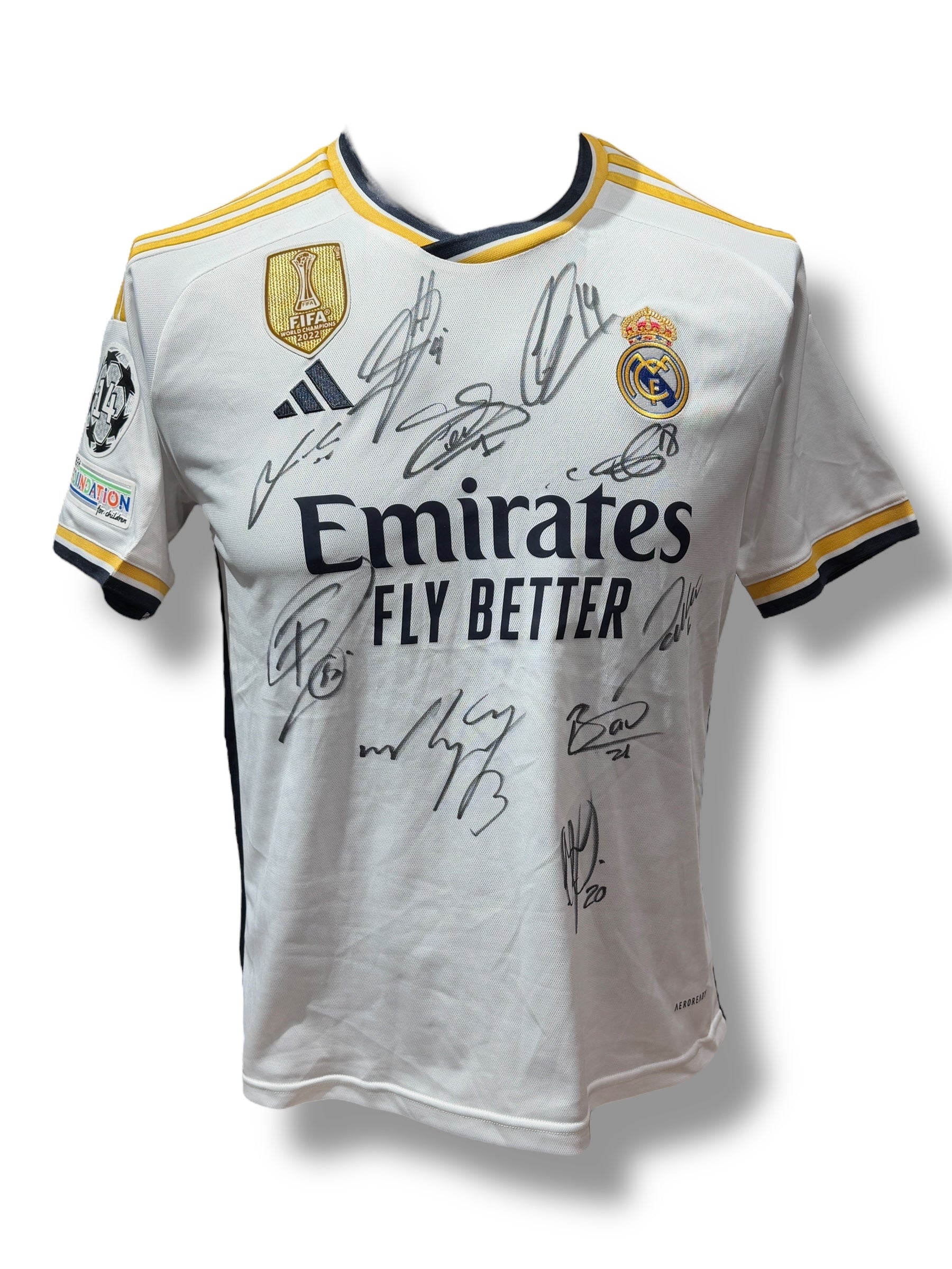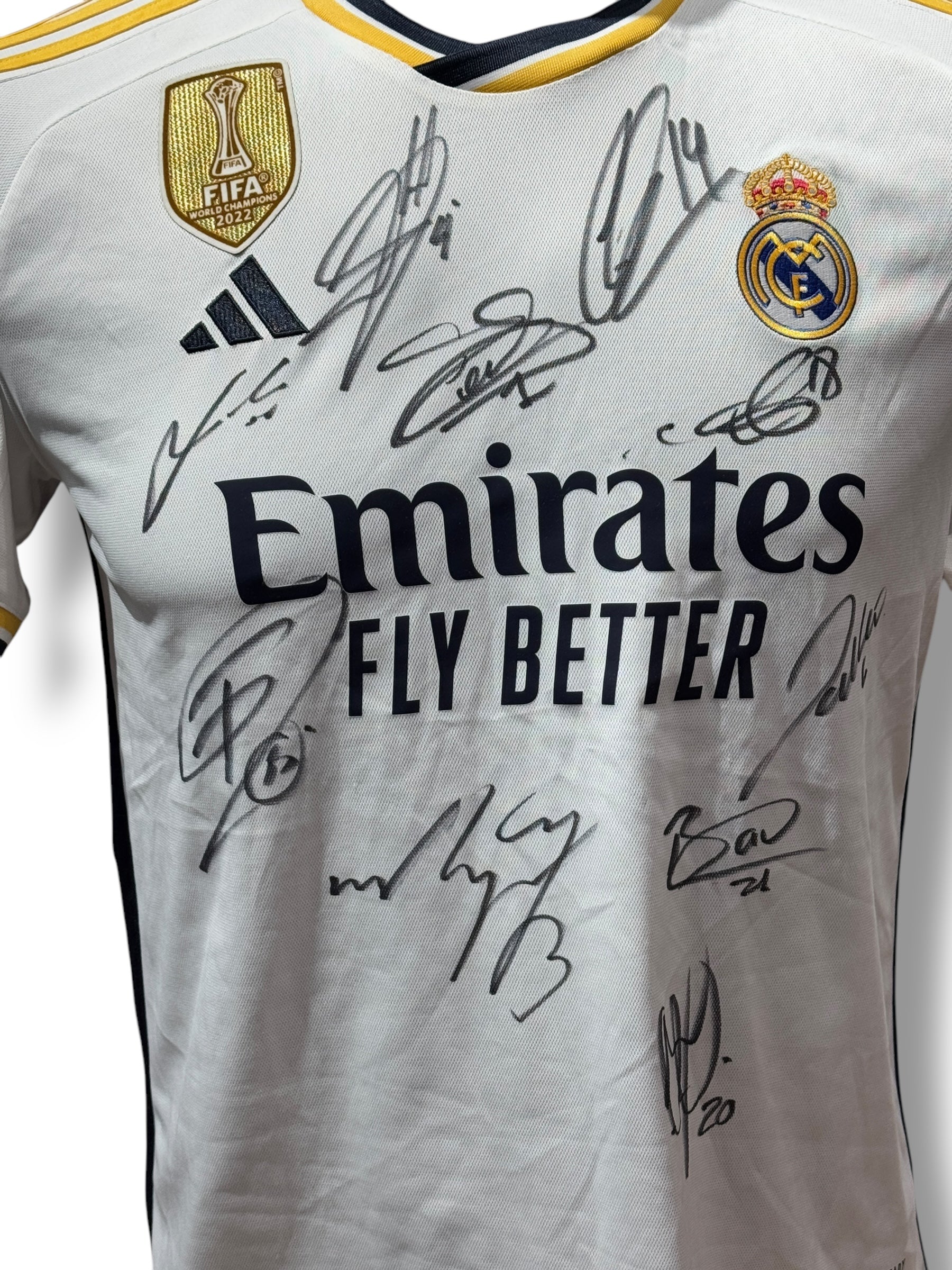 Jersey autografiado por el equipo del Real Madrid temporada 2022.