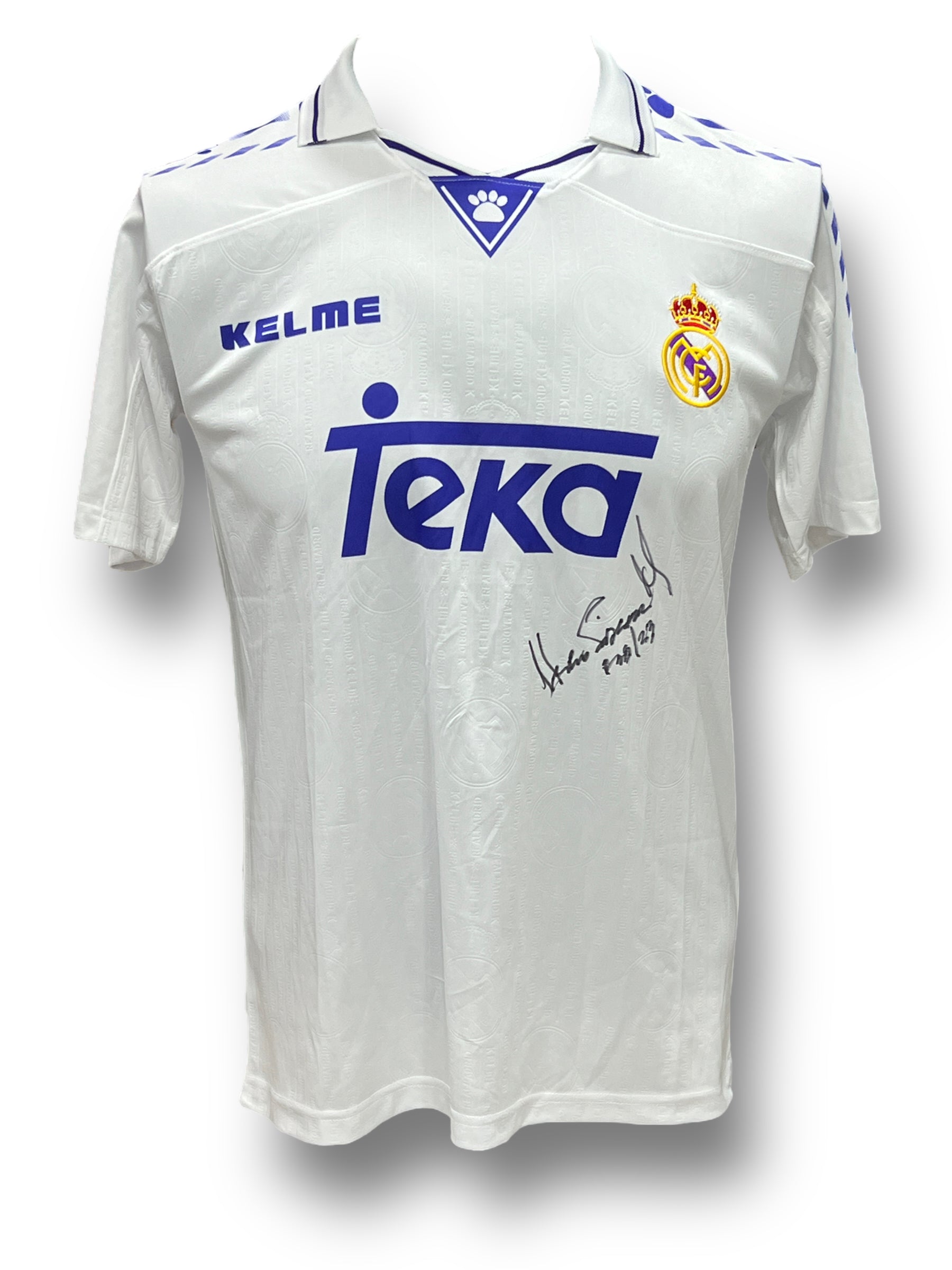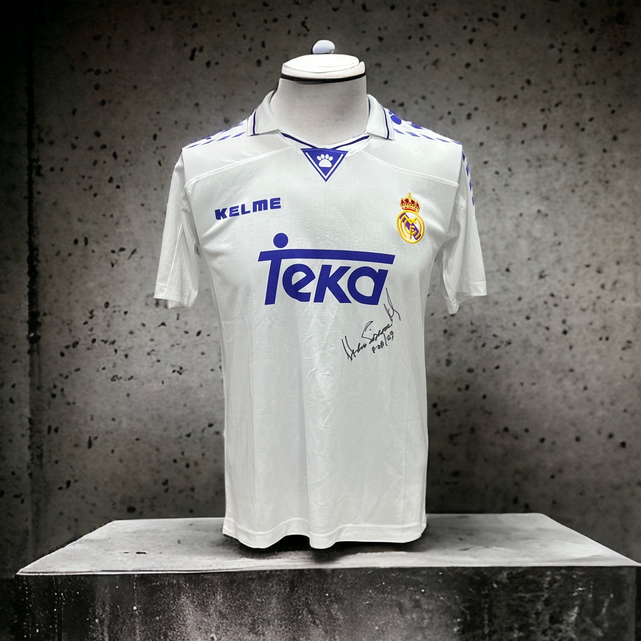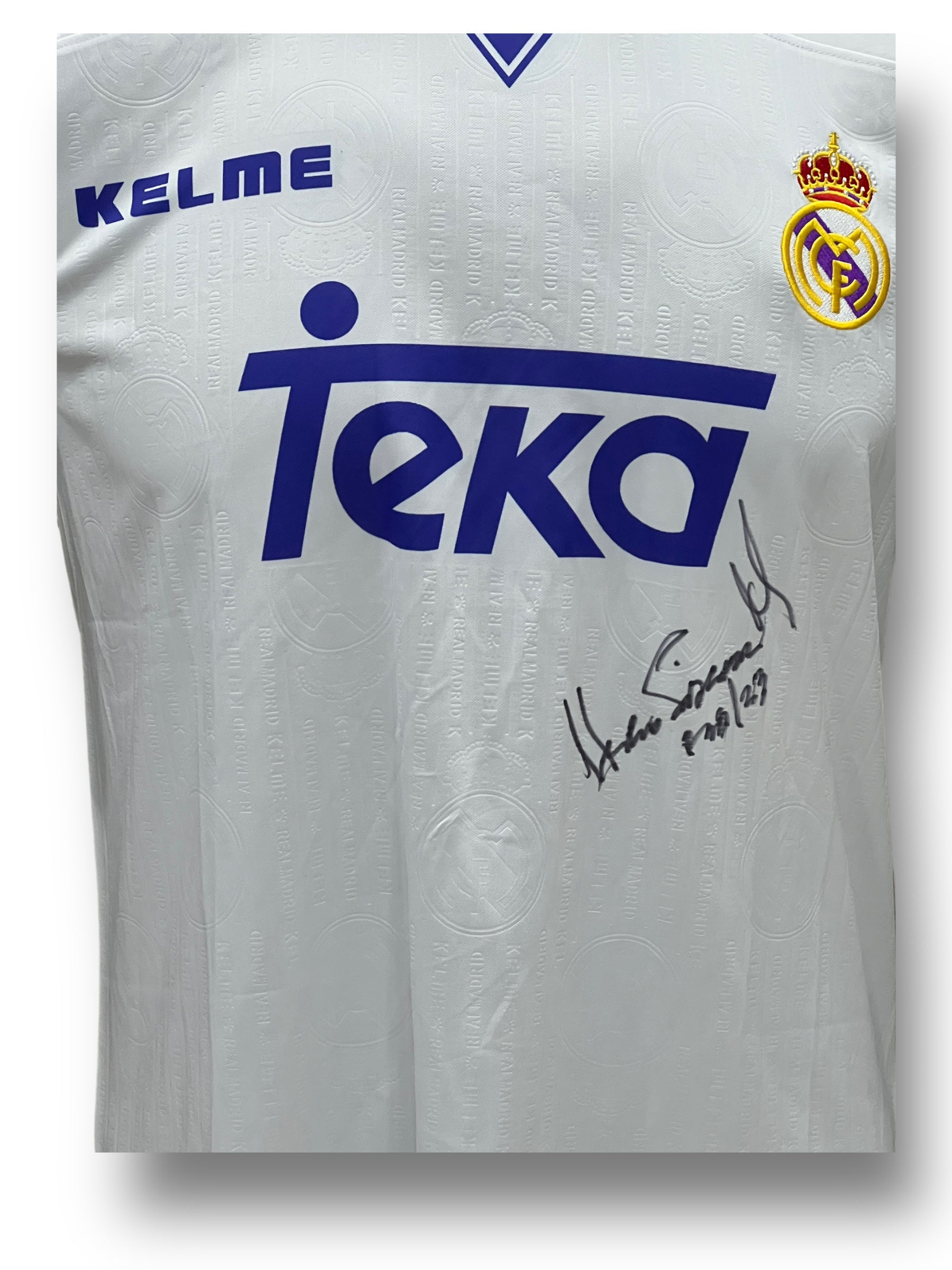 Jersey autografiado por el jugador del Real Madrid Hugo Sánchez.