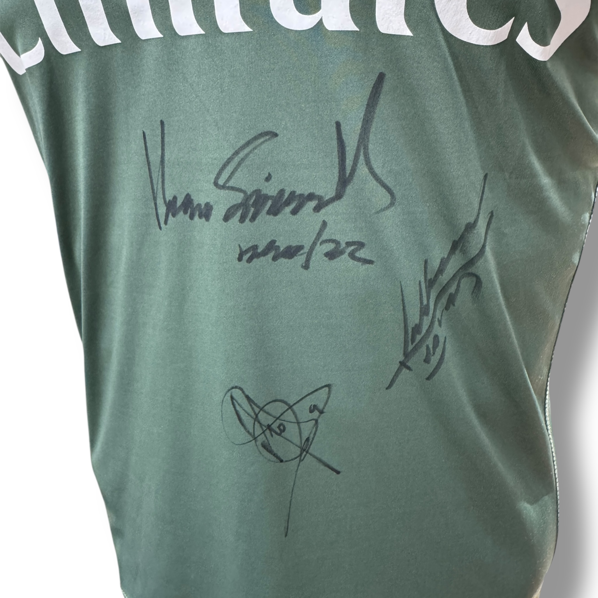 Jersey autografiado por Hugo Sanchez, Jorge Valdano, Fernando Morientes leyendas del Real Madrid
