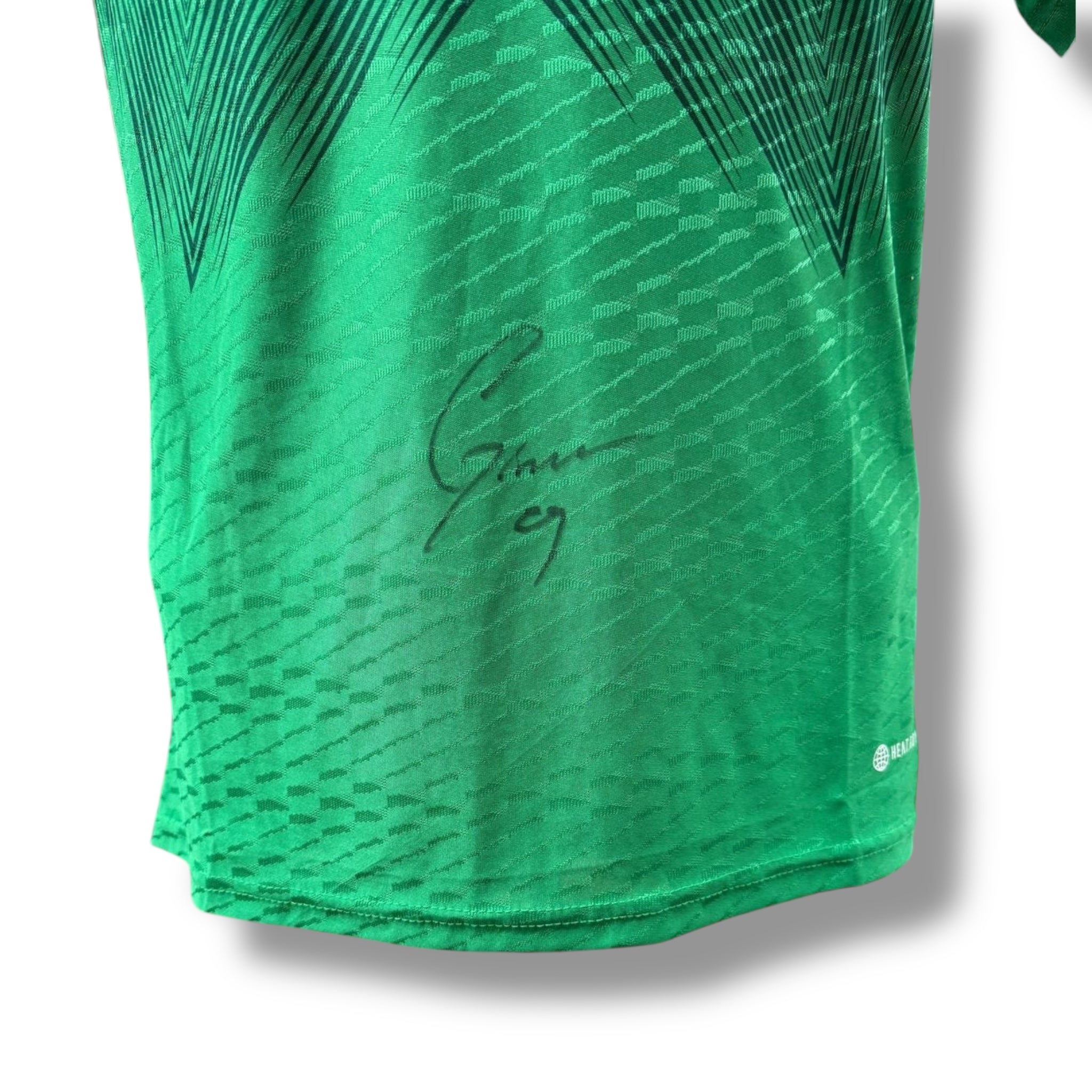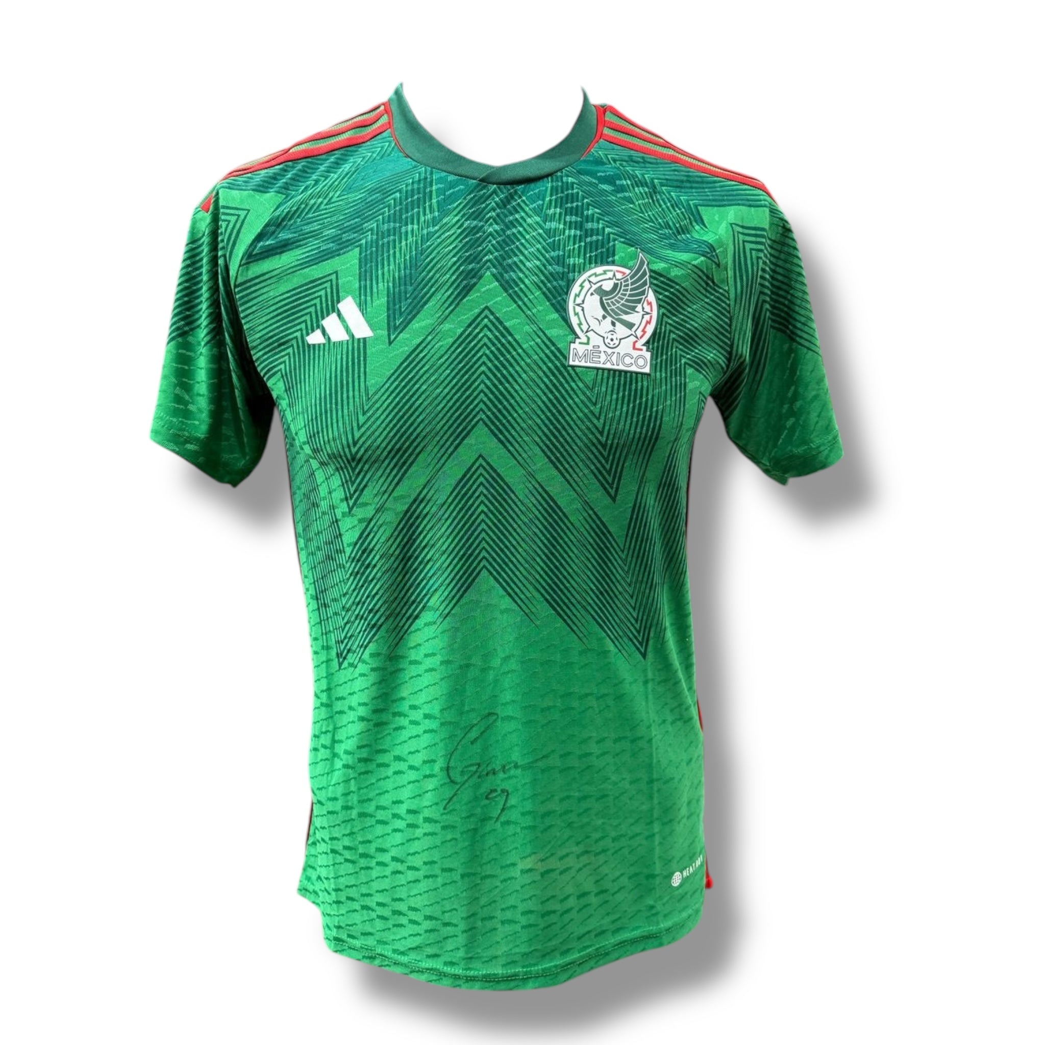 Jersey de México autografiado por nuestro delantero estrella del AC Milan, Santiago Giménez.  Sin duda este jersey debe pertenecer a un gran coleccionista.