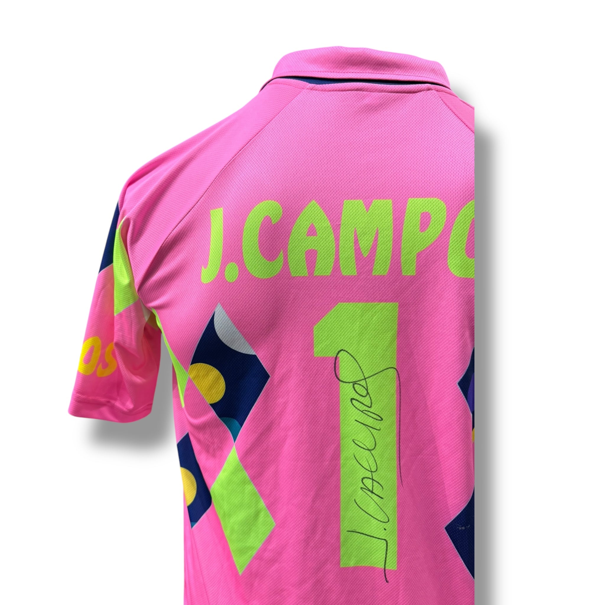 Jorge Campos Navarrete es un exfutbolista mexicano que se desempeñaba como guardameta y delantero. Un destacado jugador de México en la década de los 90, Campos era un jugador excéntrico conocido por su juego fuera del área.