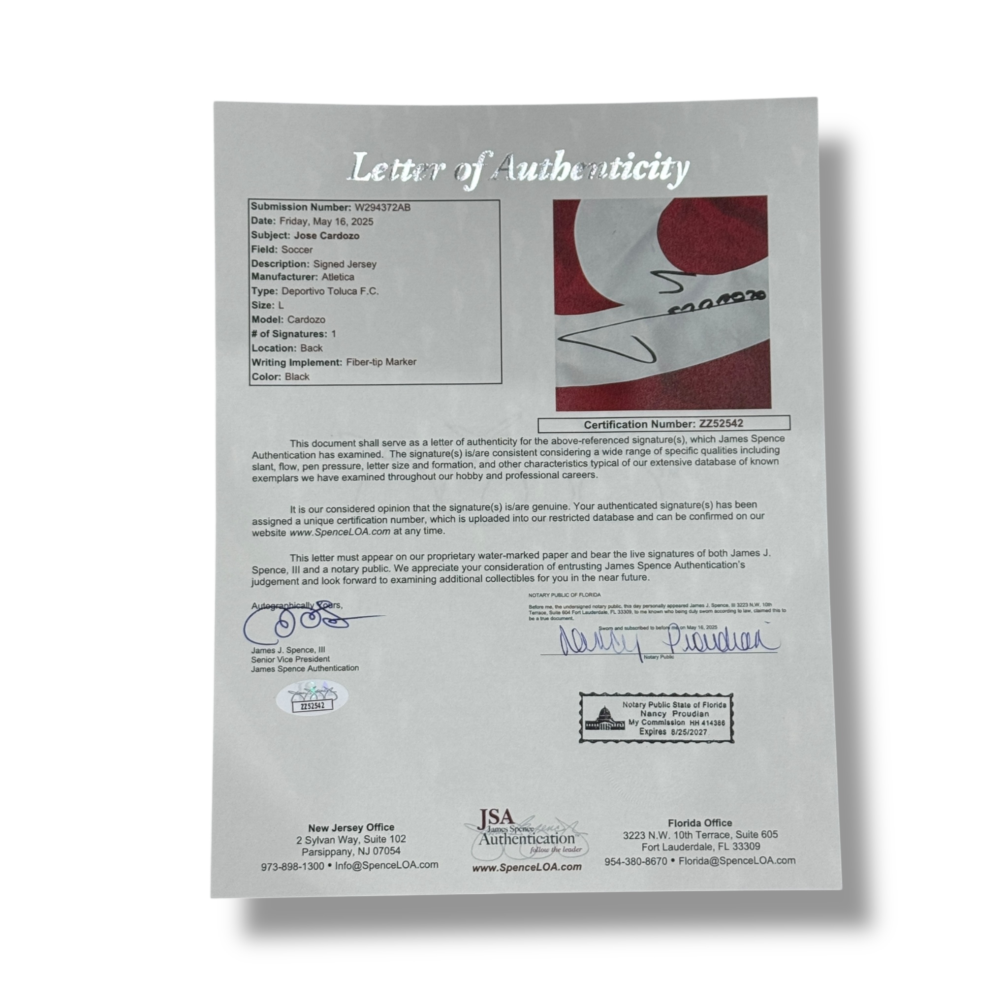 Jersey firmado por José Saturnino Cardozo