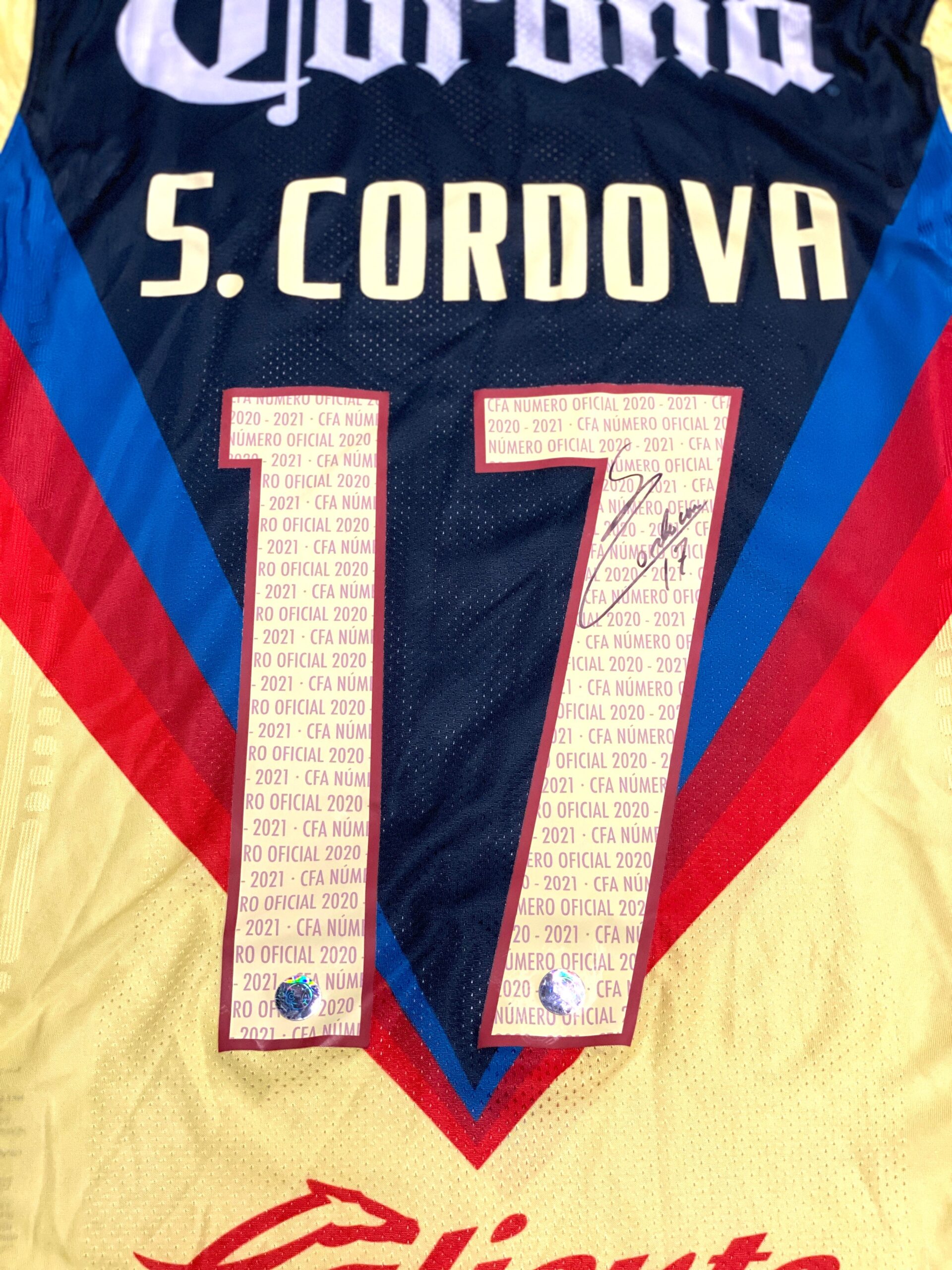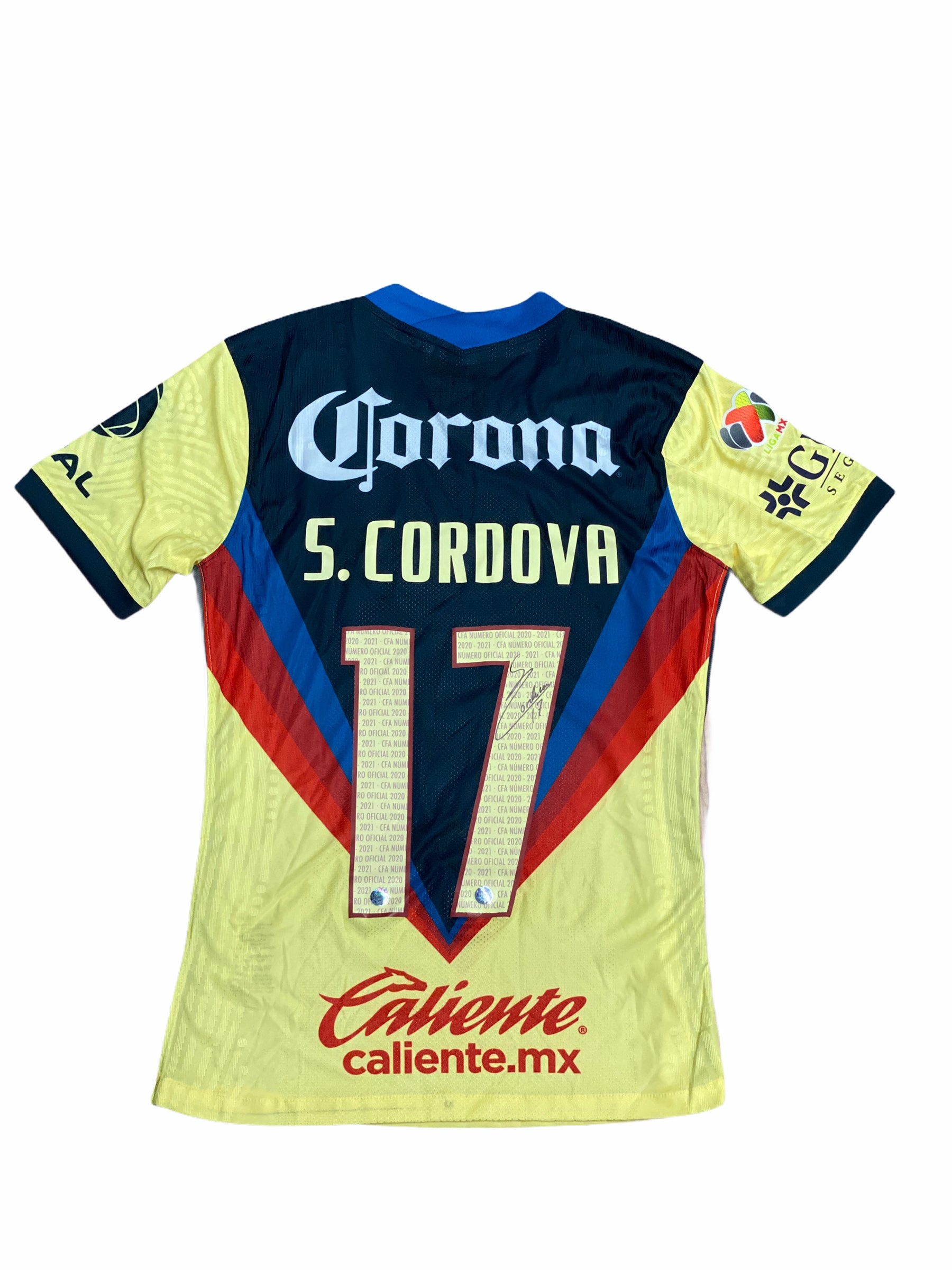 Jersey del América usado y autografiado por Sebastián Córdova.