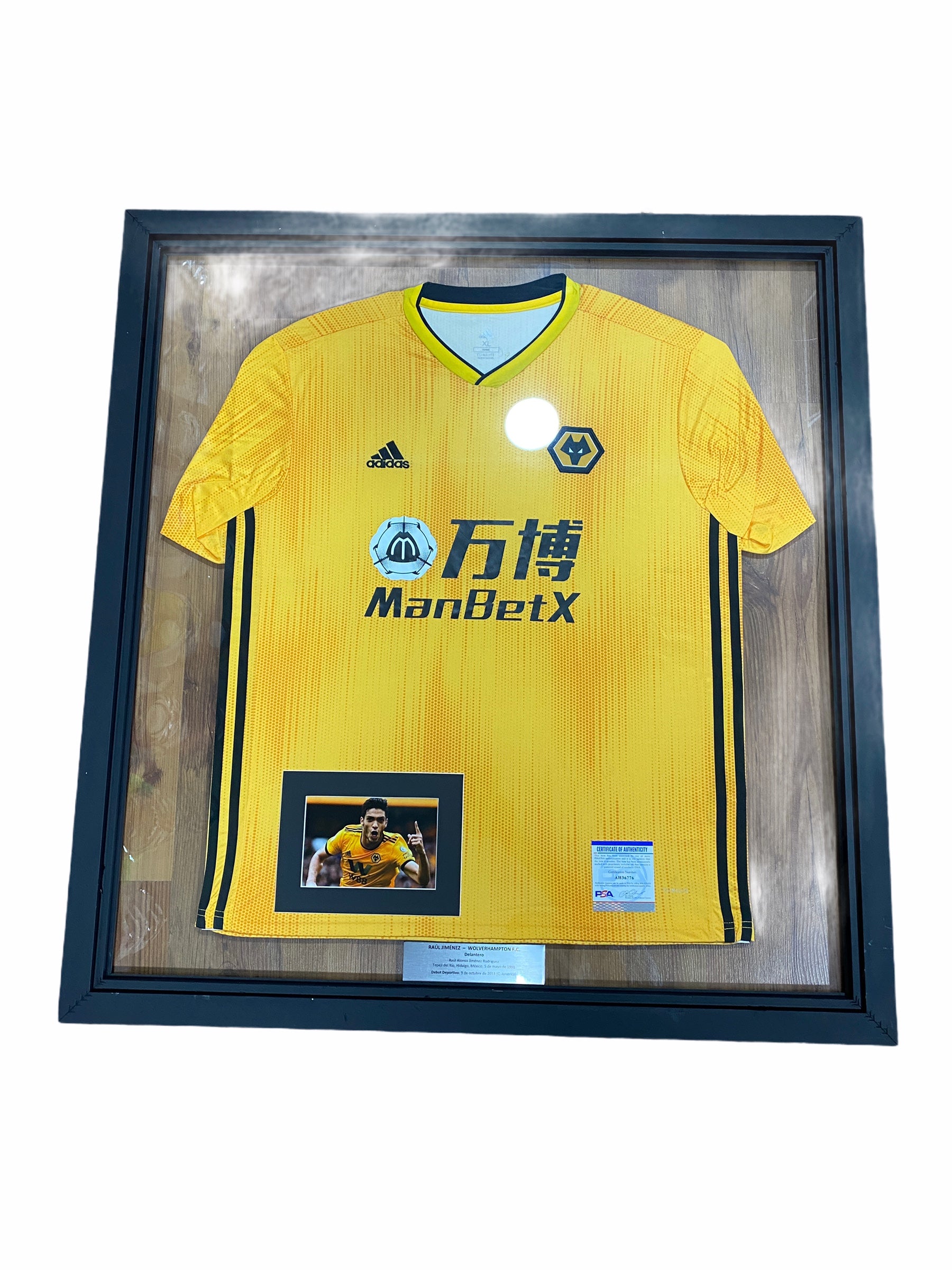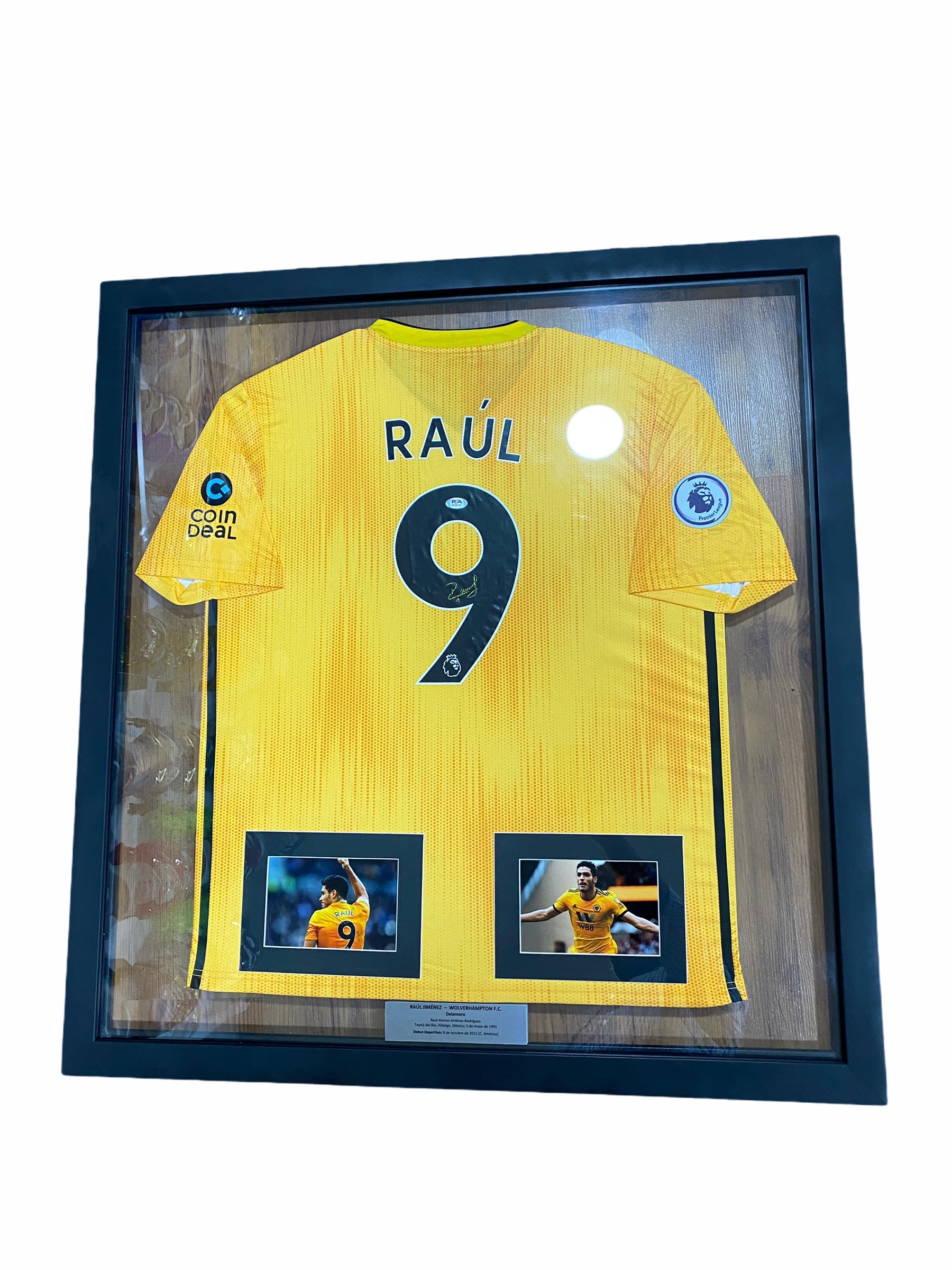 Jersey autografiado por Raúl Jiménez, del Wolverhampton.