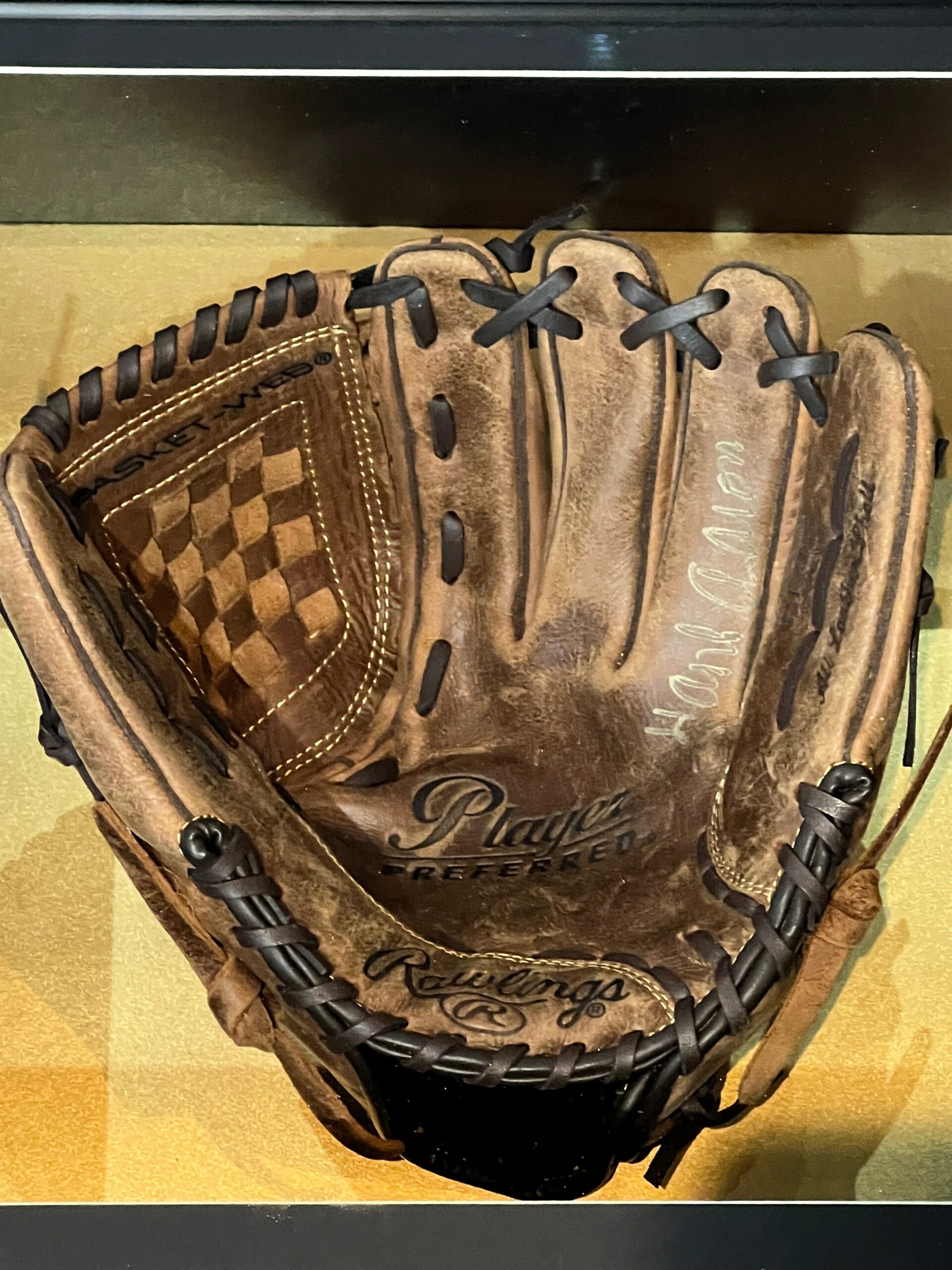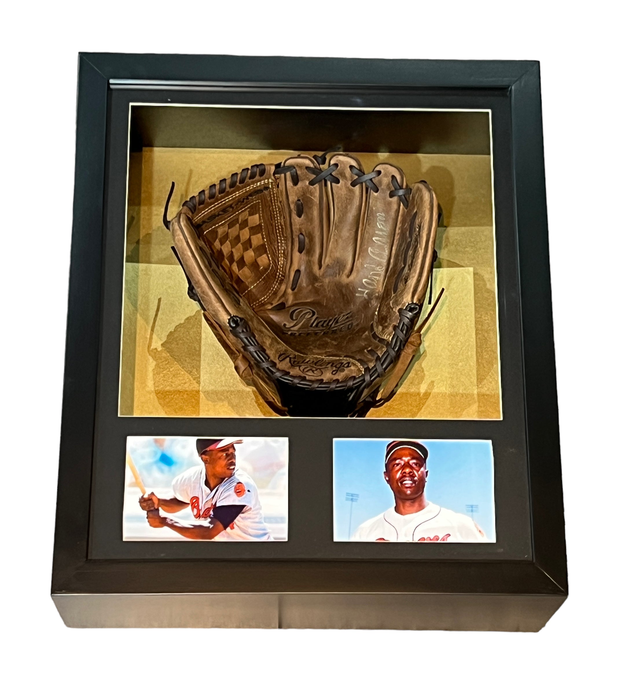 Manopla de Baseball autografiada por Hank Aaron, de los Braves de Atlanta.