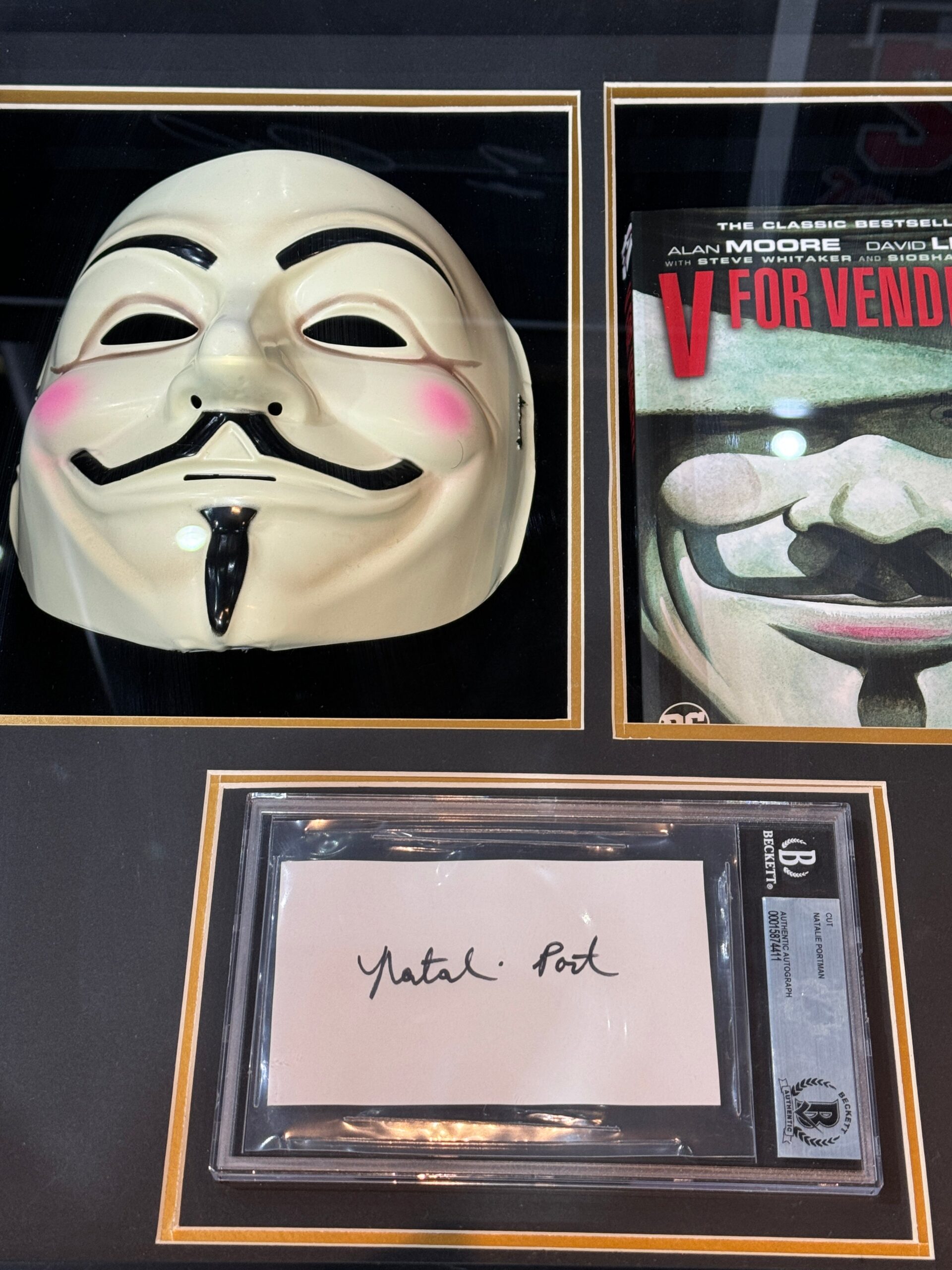Máscara enmarcada y autografiada por la actriz y directora Natalie Portman