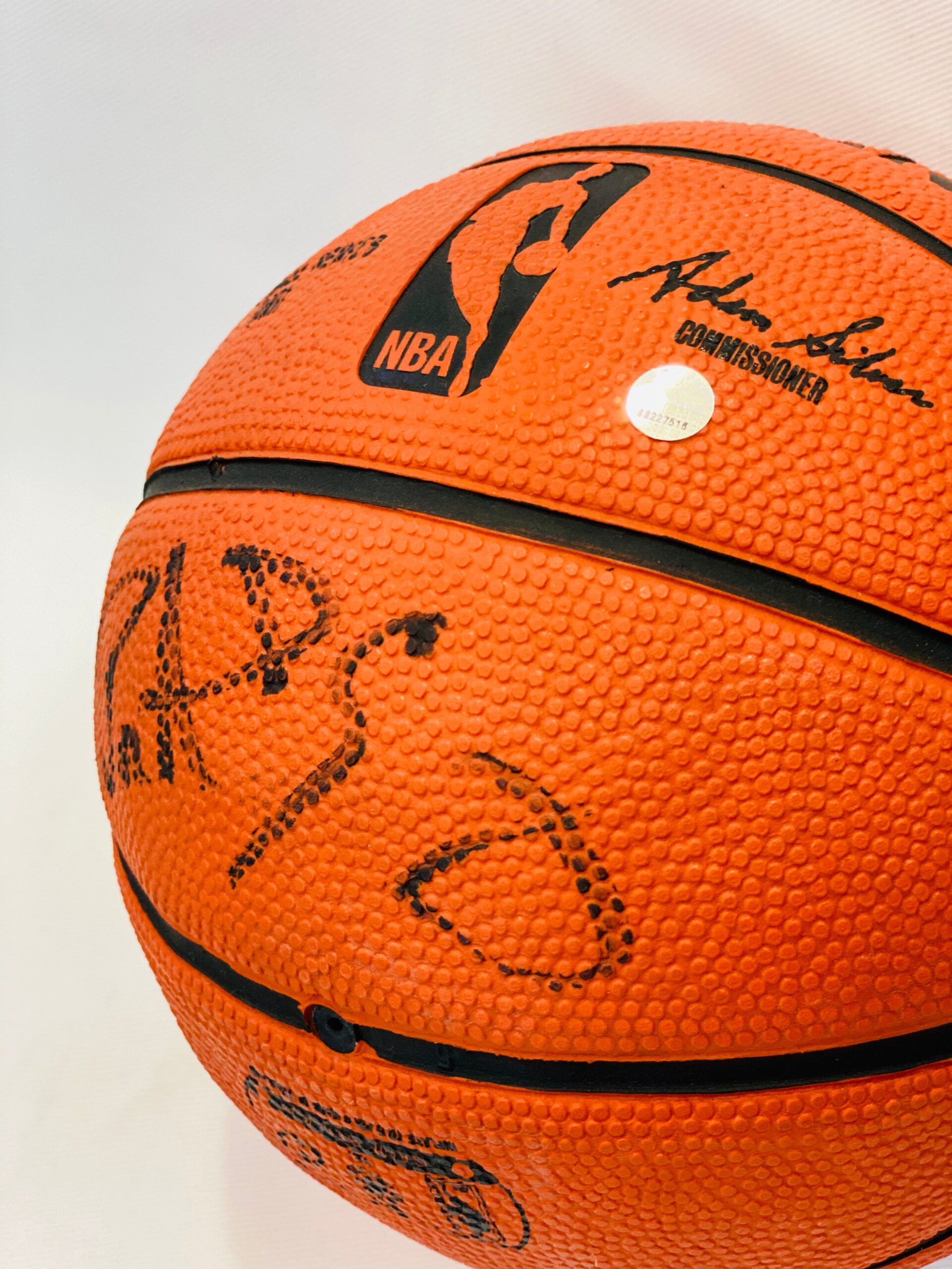 Balón de basketball autografiado por Patrick Ewing de N.Y. Knicks.