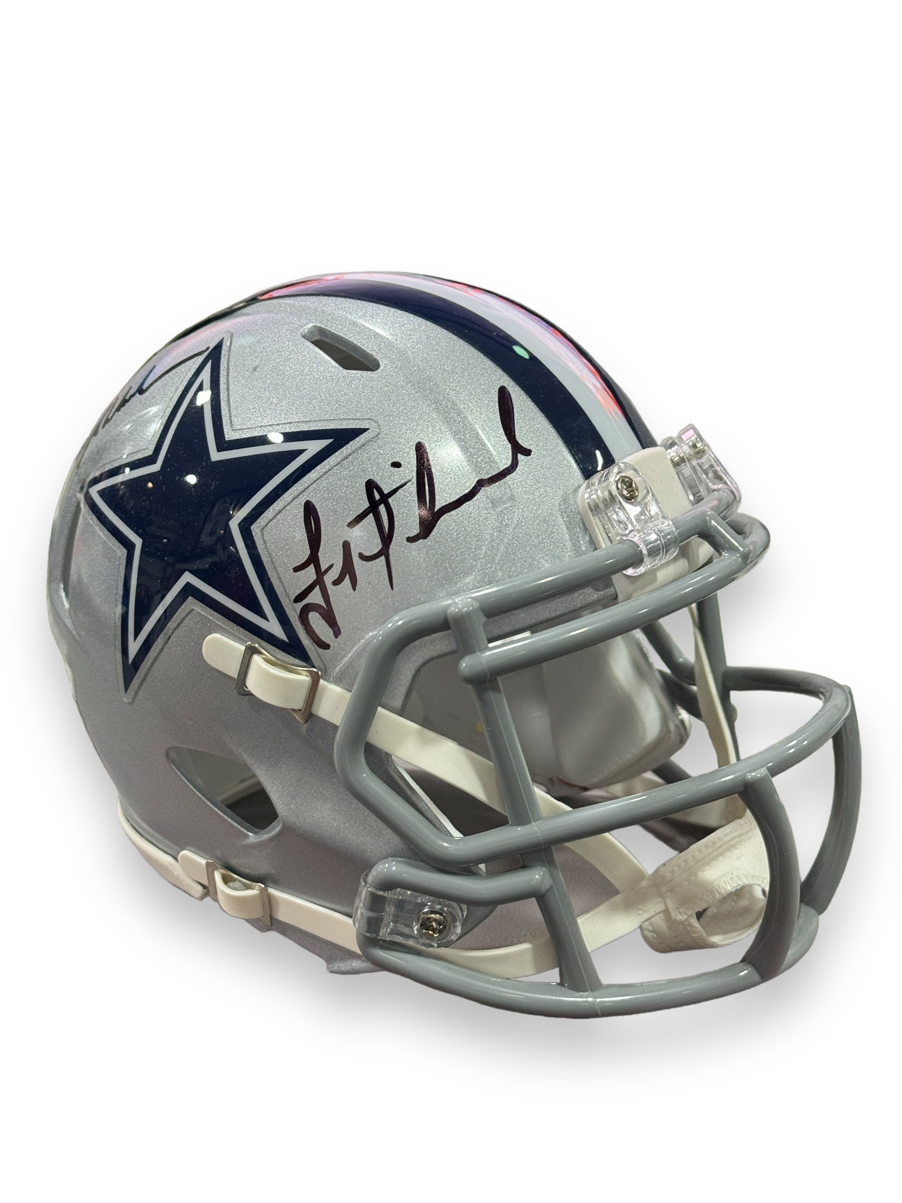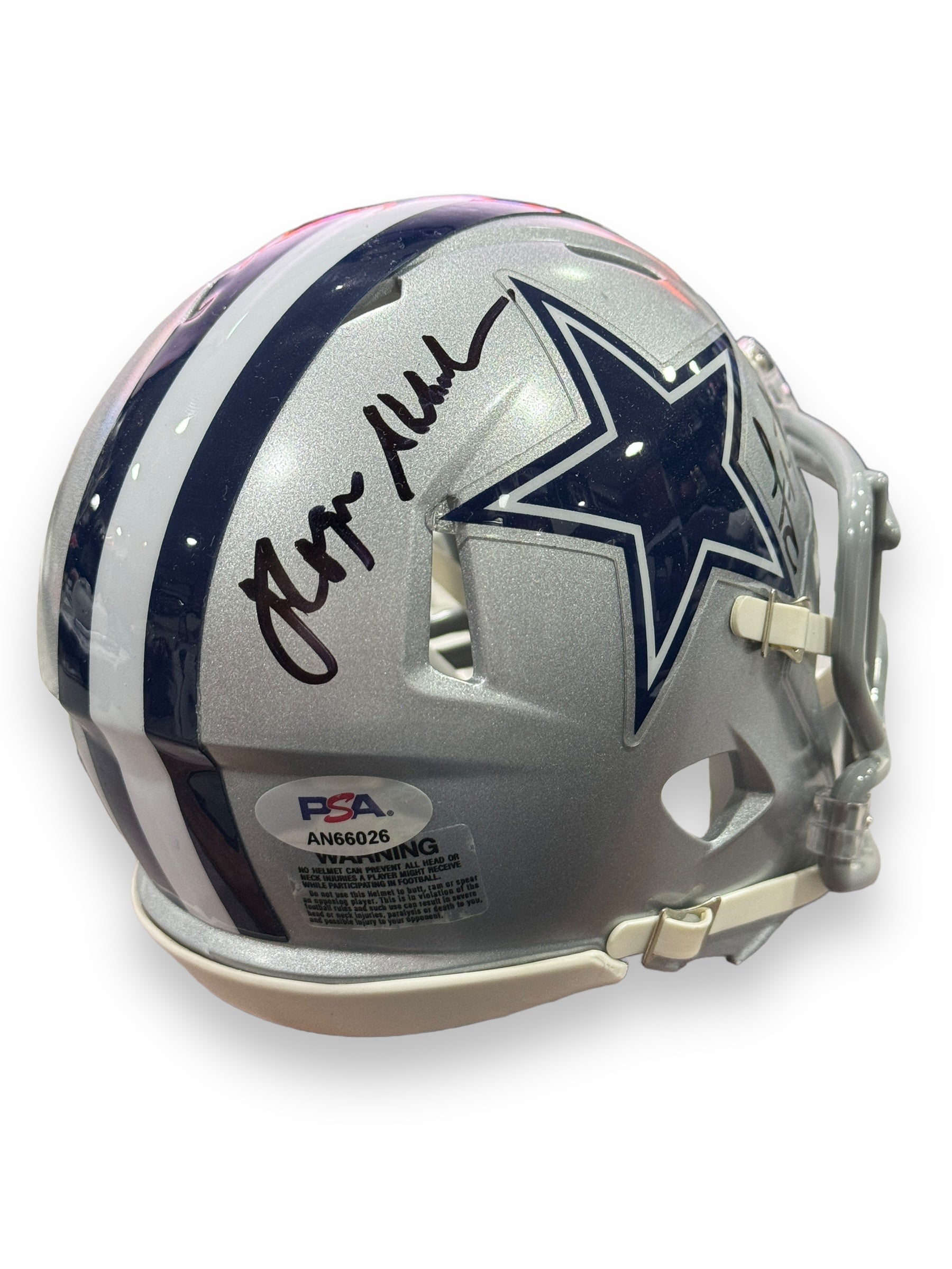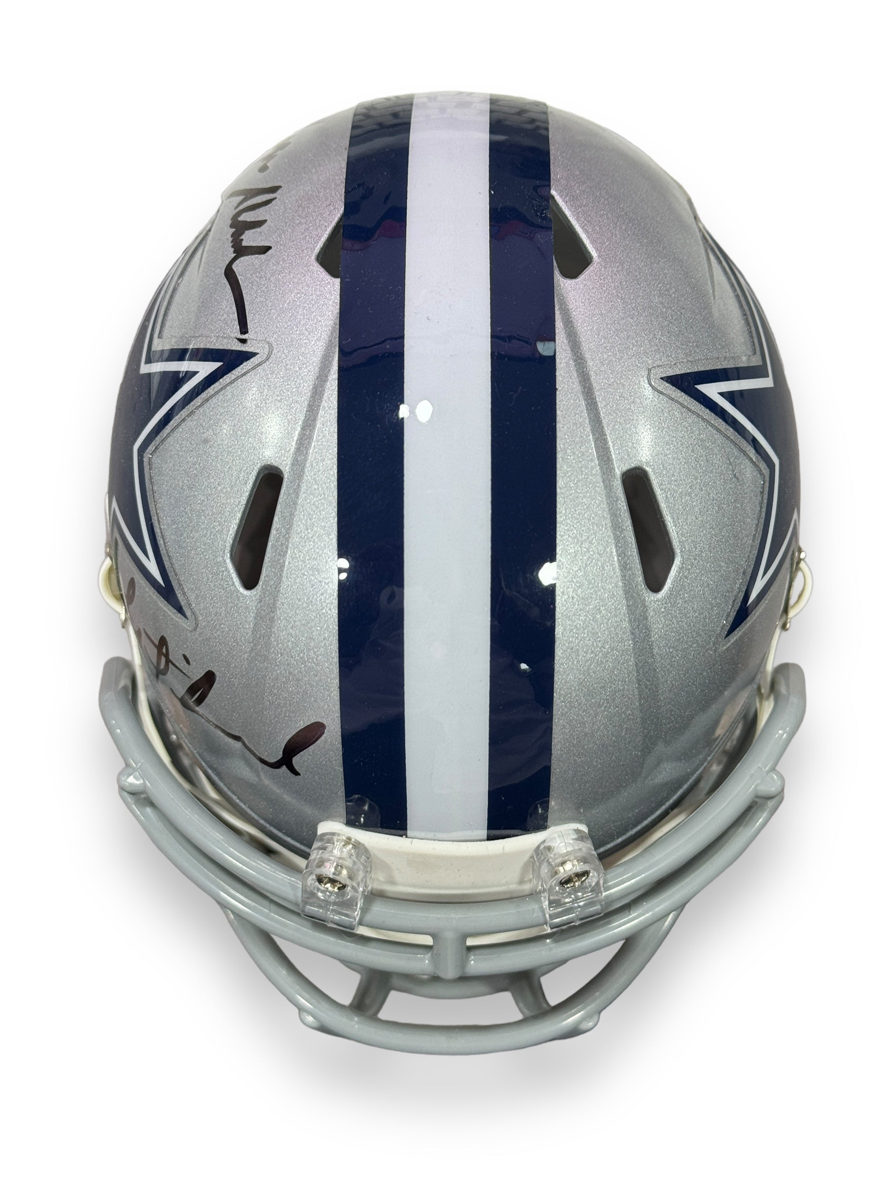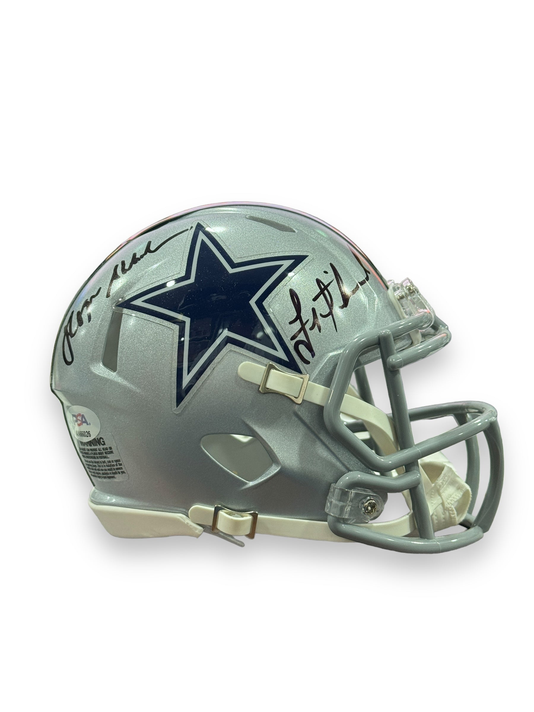 Mini Casco autografiado por los jugadores leyenda de los Cowboys, Roger Staubach y Troy Aikman.