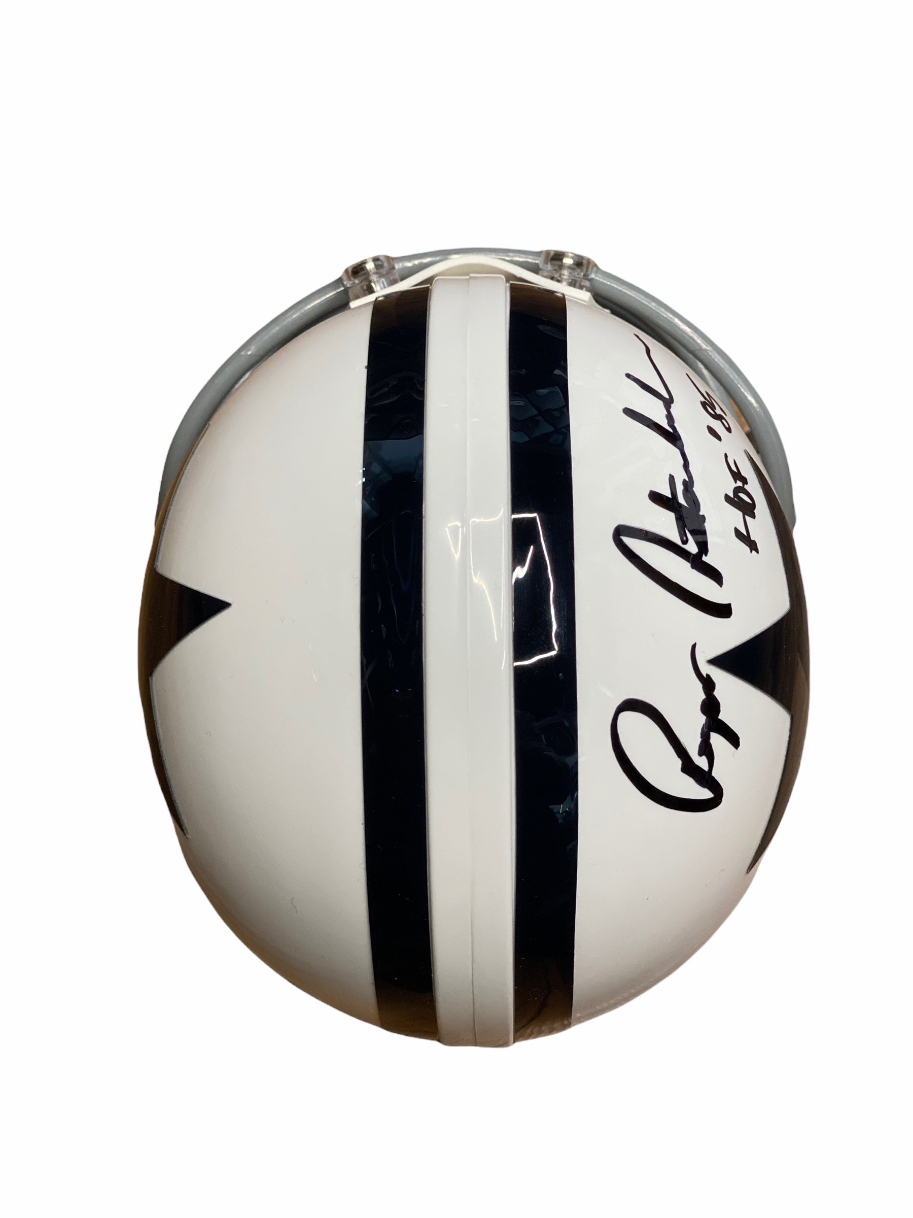 Mini casco autografiado por el jugador de los Cowboys Roger Sawback