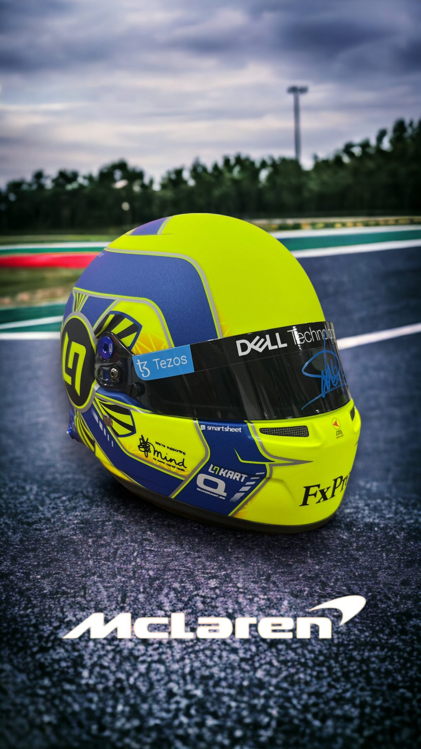 Mini casco 1:2 autografiado por el piloto de F1 McClaren, Lando Norris.