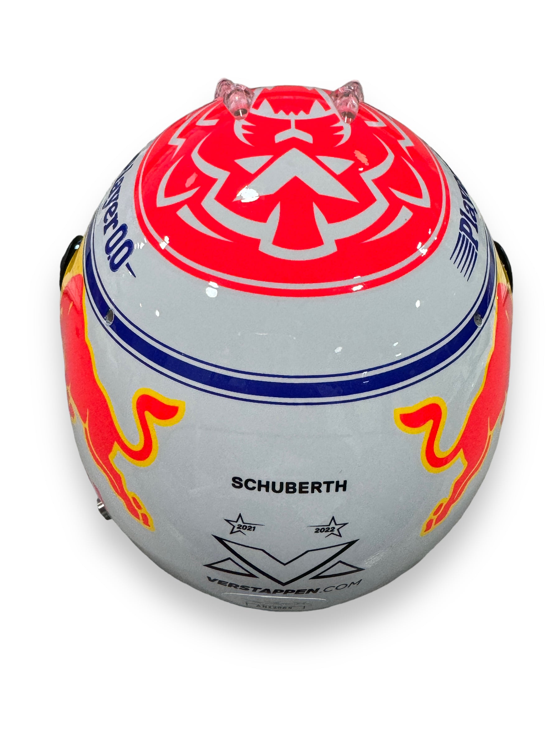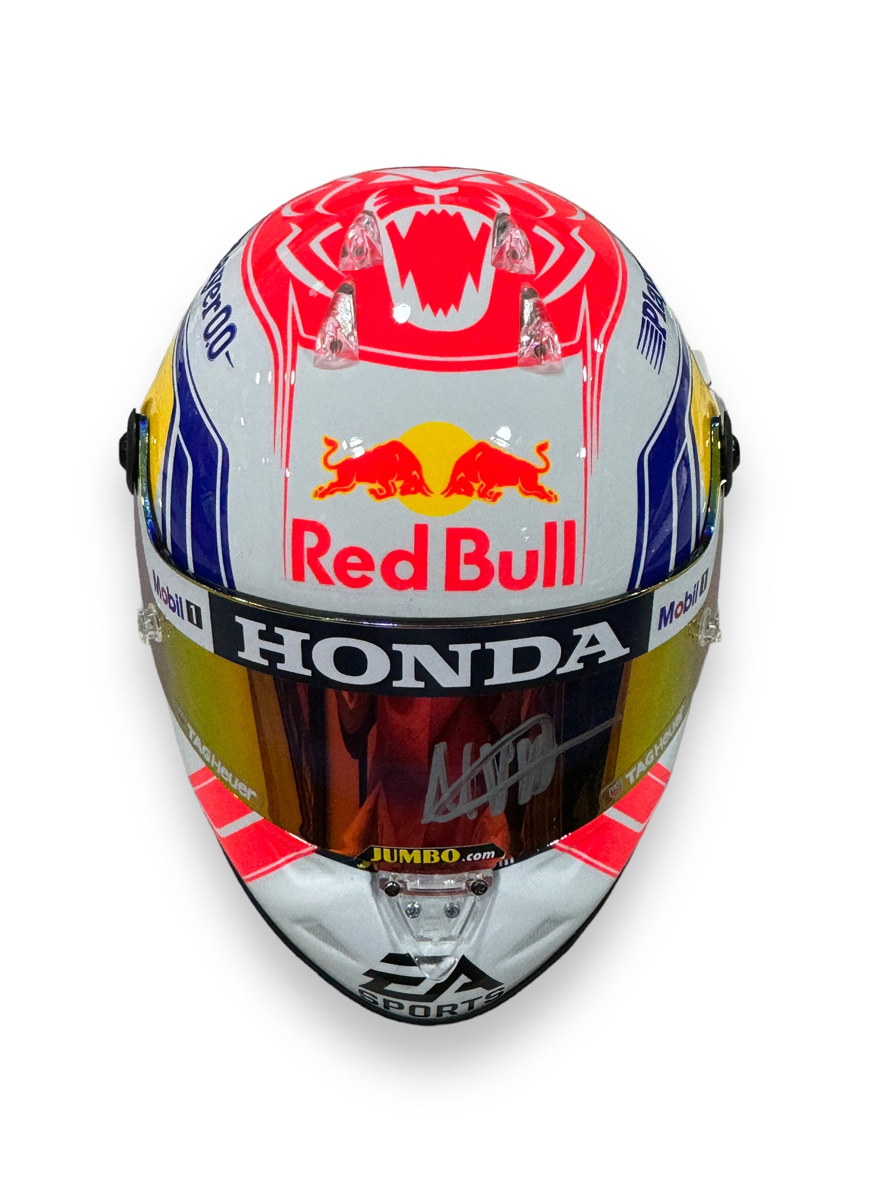Mini Casco escala 1:2 autografiado por el piloto de F1, Max Verstappen.