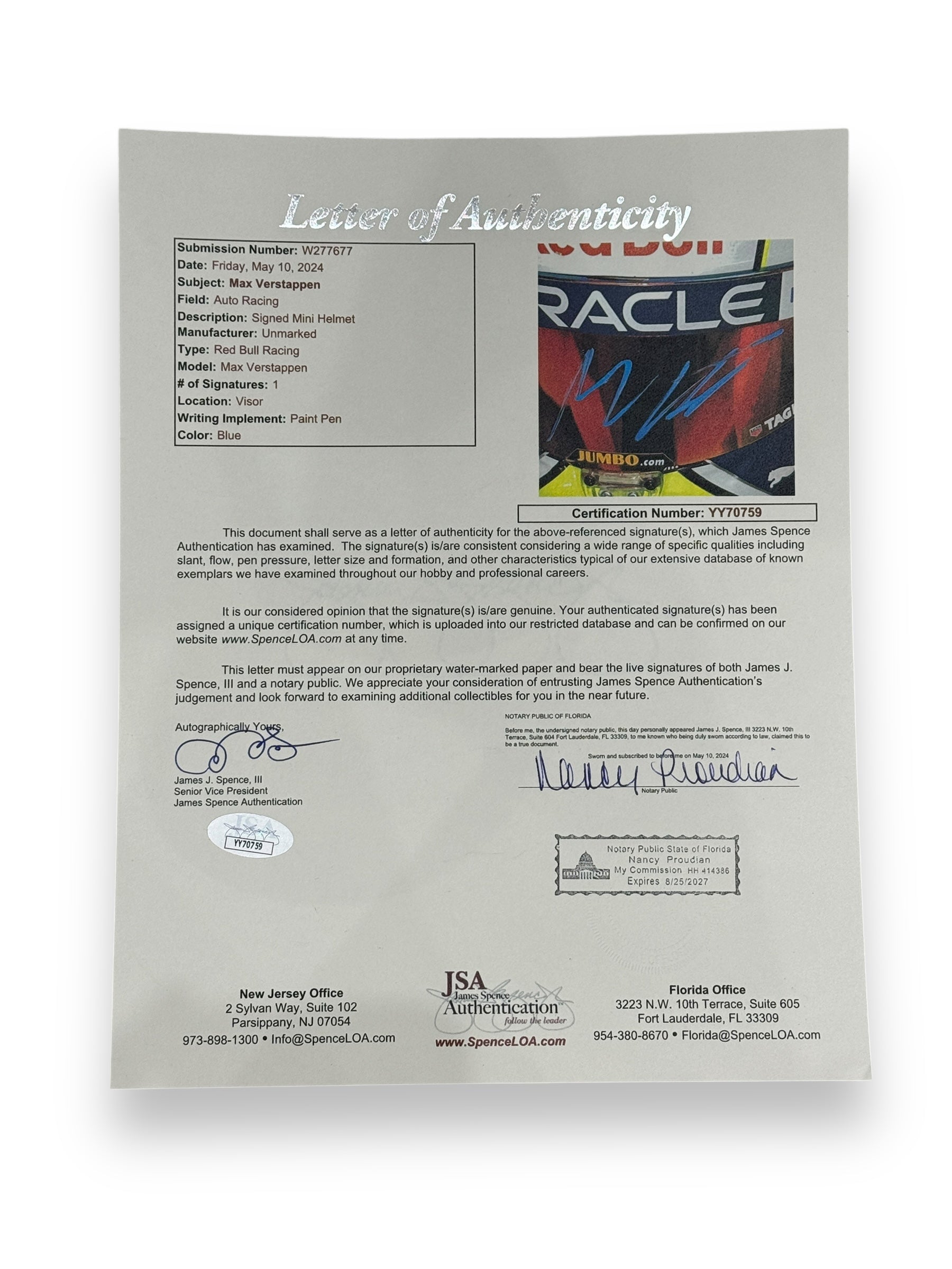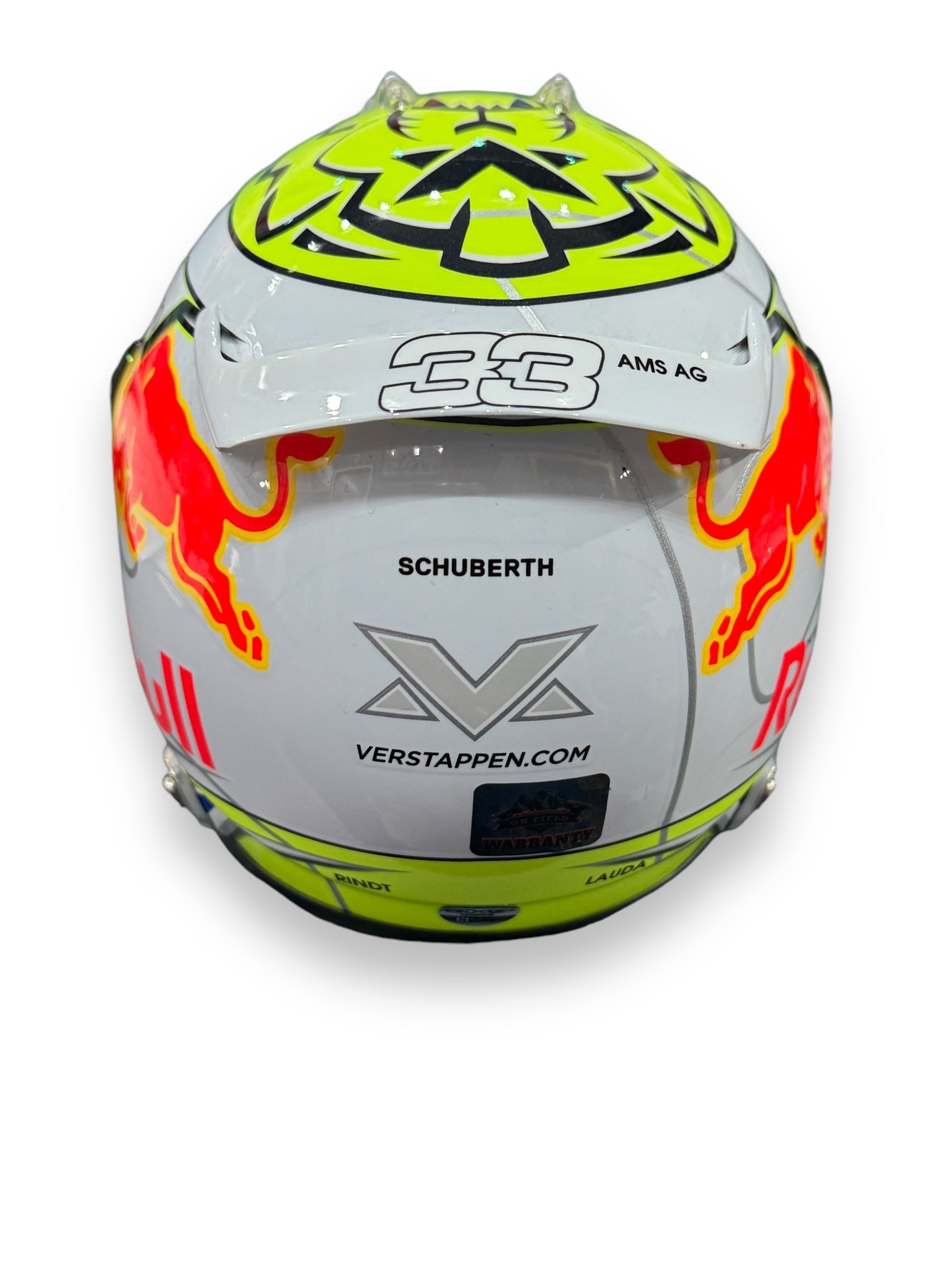Mini Casco escala 1:2 autografiado por el piloto de F1, Max Verstappen.
