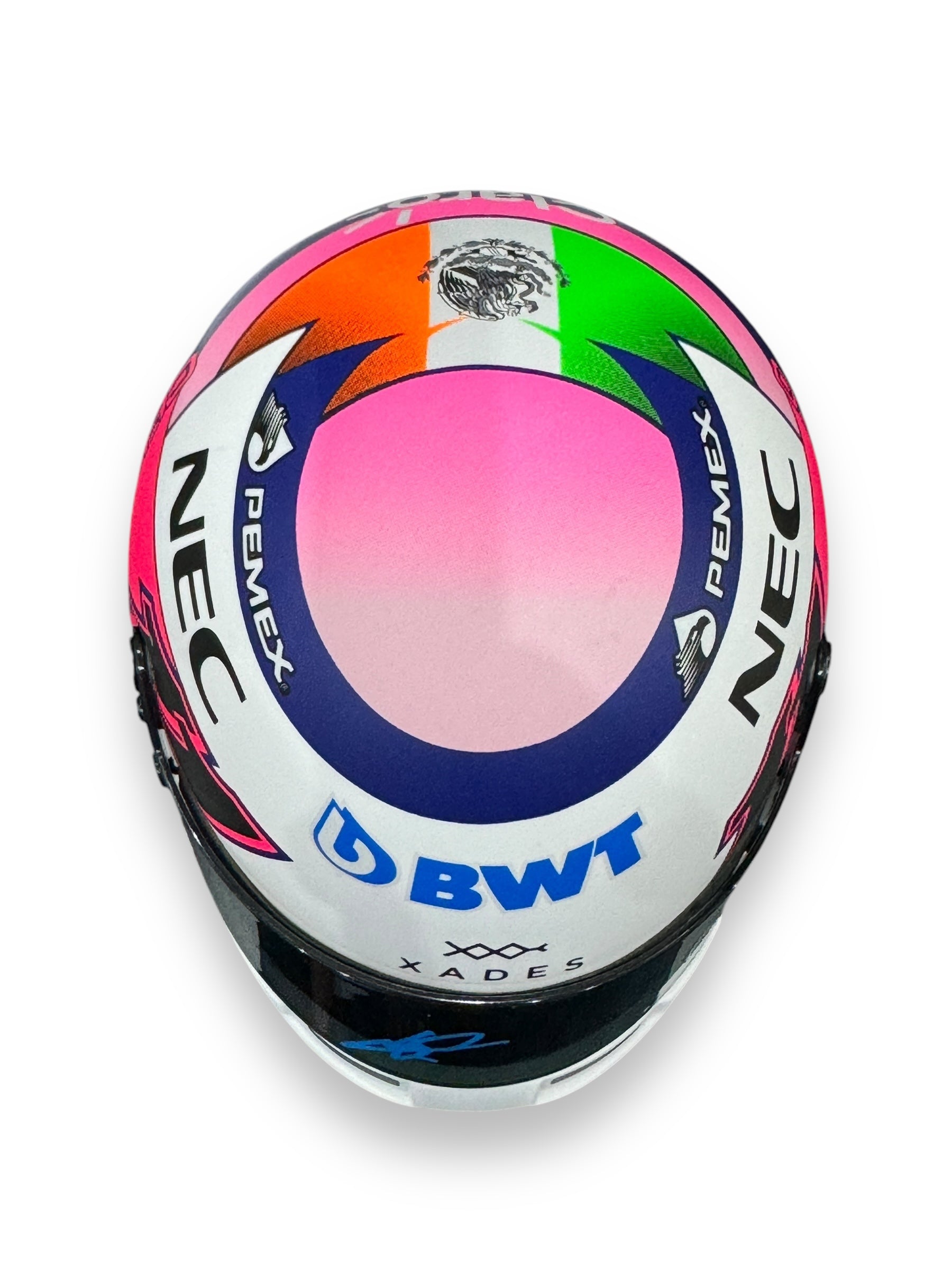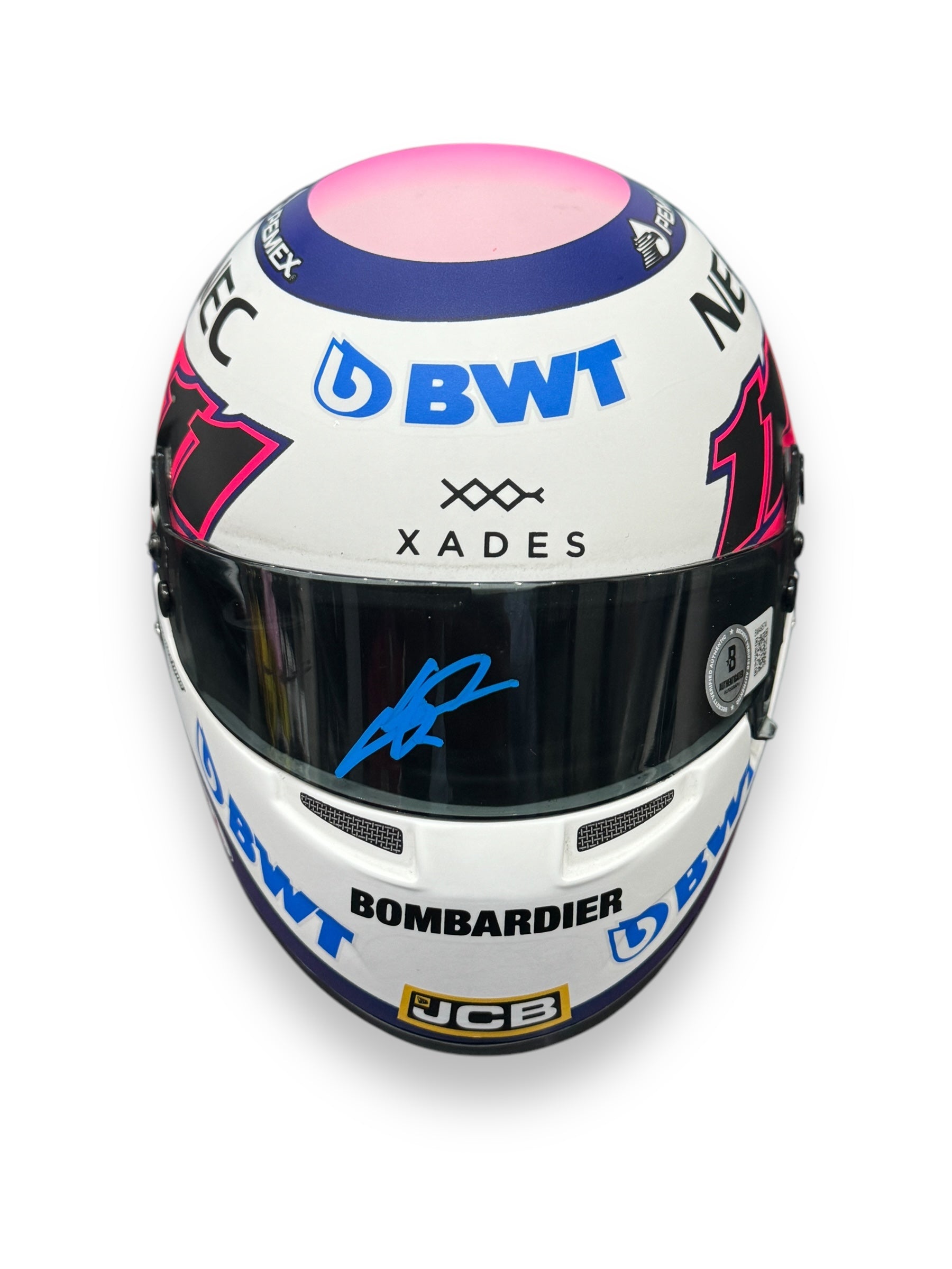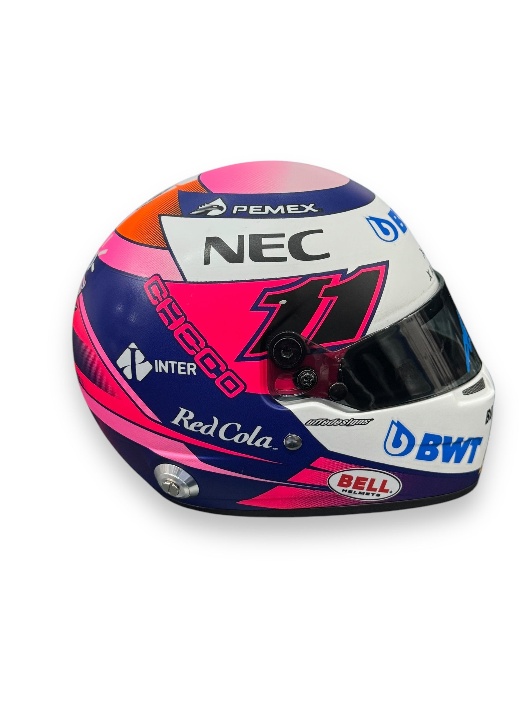 Mini Casco escala 1:2 autografiado por Sergio el Checo Pérez – Temporada 2019