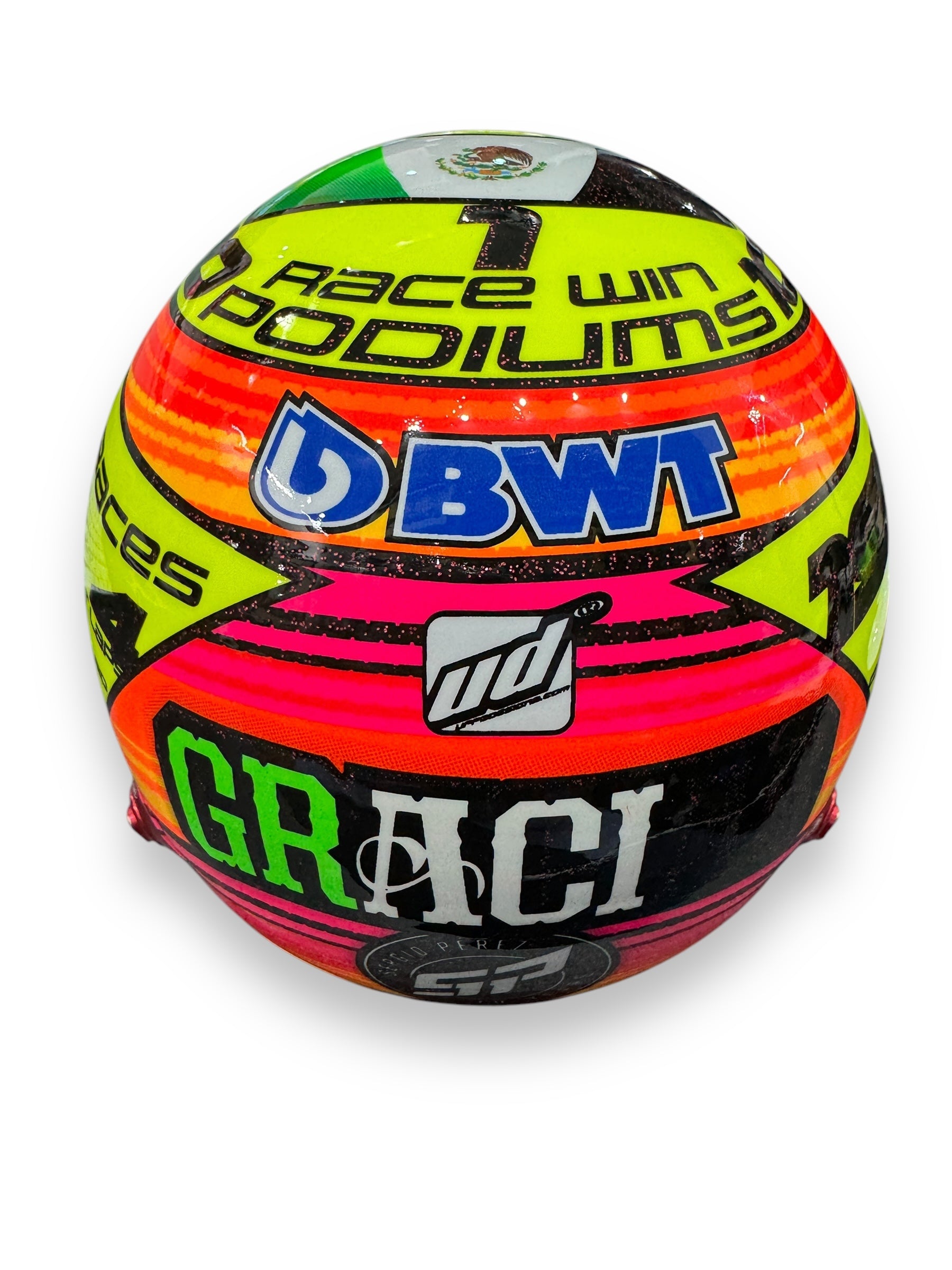Mini Casco escala 1:2 autografiado por Sergio el Checo Pérez – GP DE MEXICO 2020