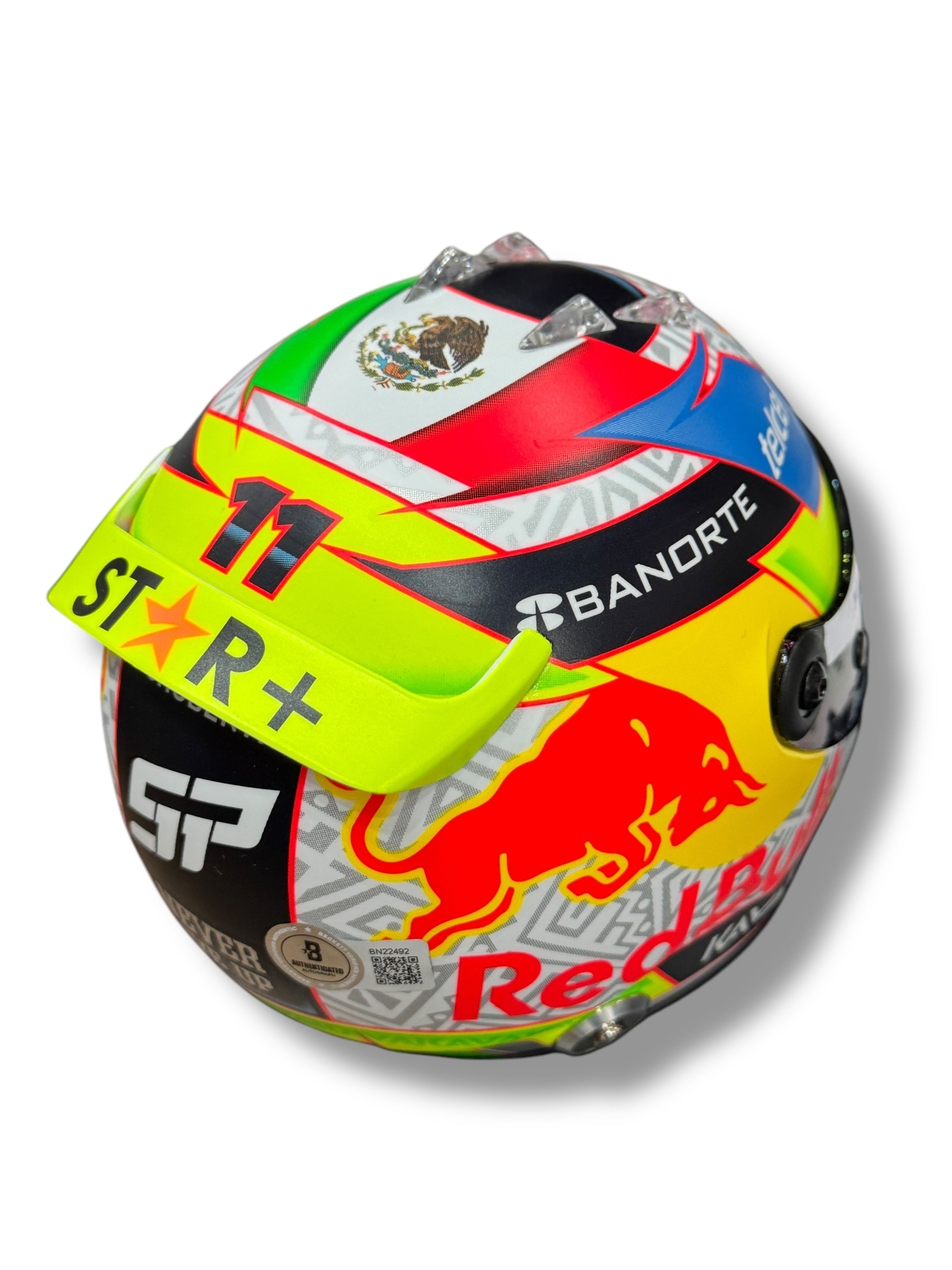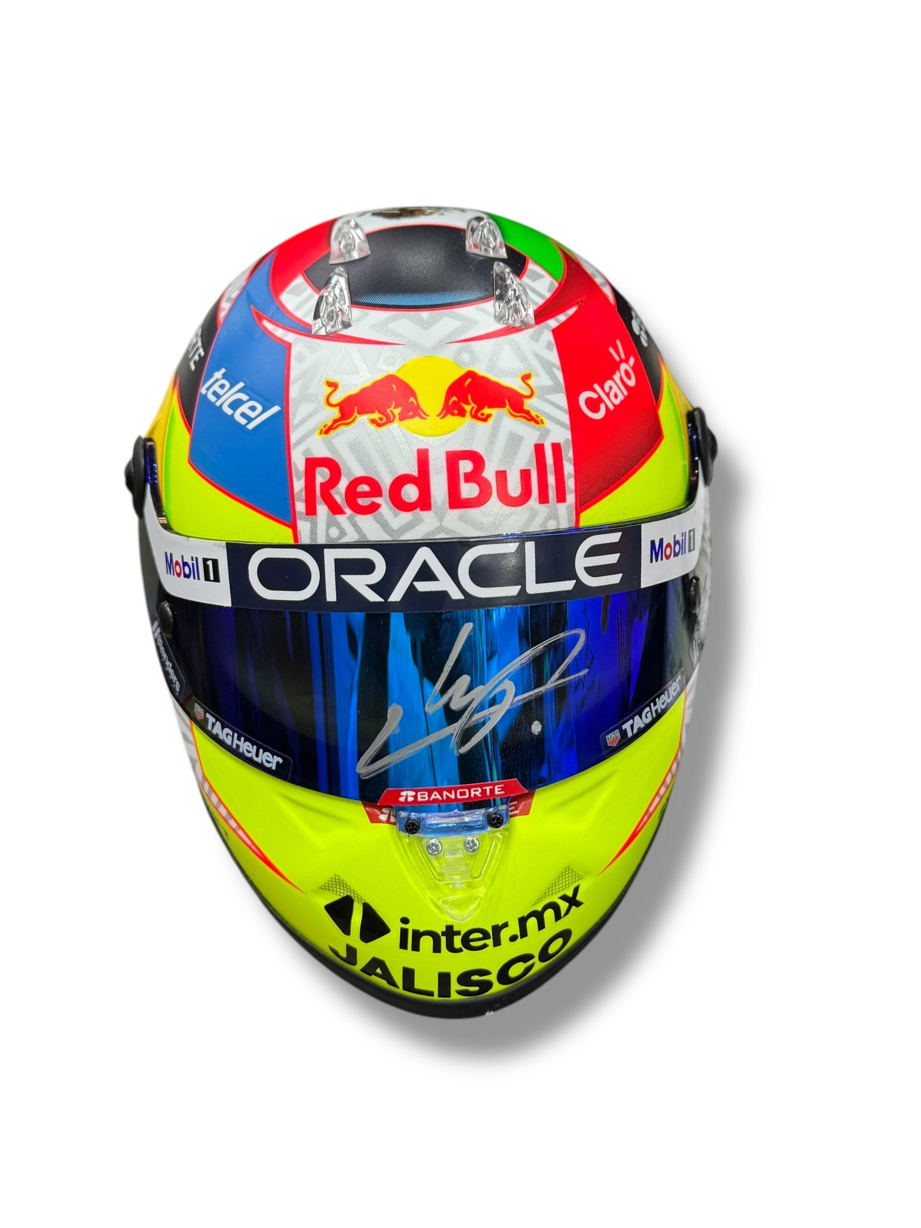 Mini Casco escala 1:2 autografiado por el piloto mexicano de F1 Sergio Checo Pérez TEMPORADA 2023