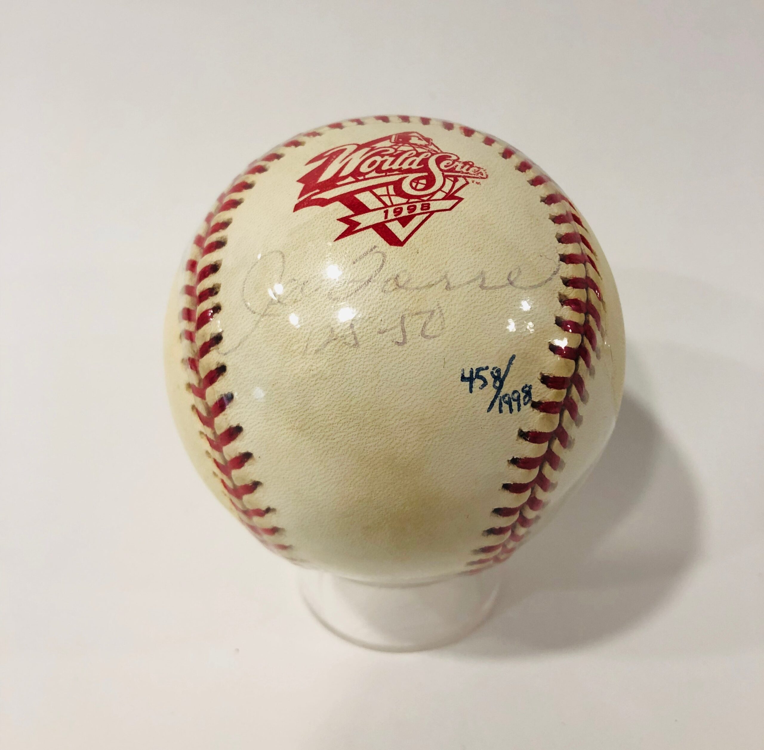 Pelota de Baseball usada en la Serie Mundial, 1998 y autografiada por Joe Torre, de los Yankees.