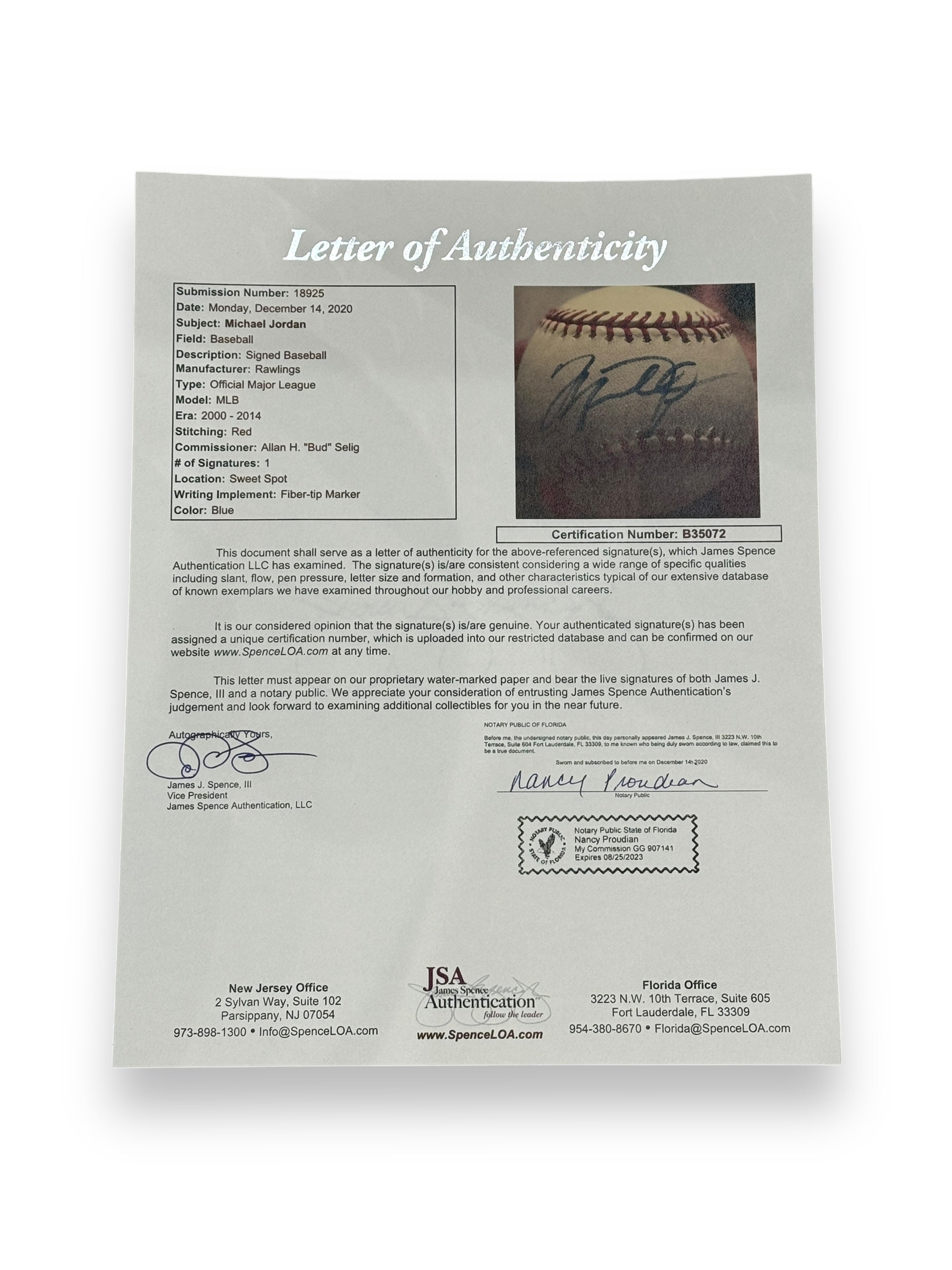 Pelota de Baseball autografiada por el jugador de los White Sox y leyenda del Basketball, Michael Jordan