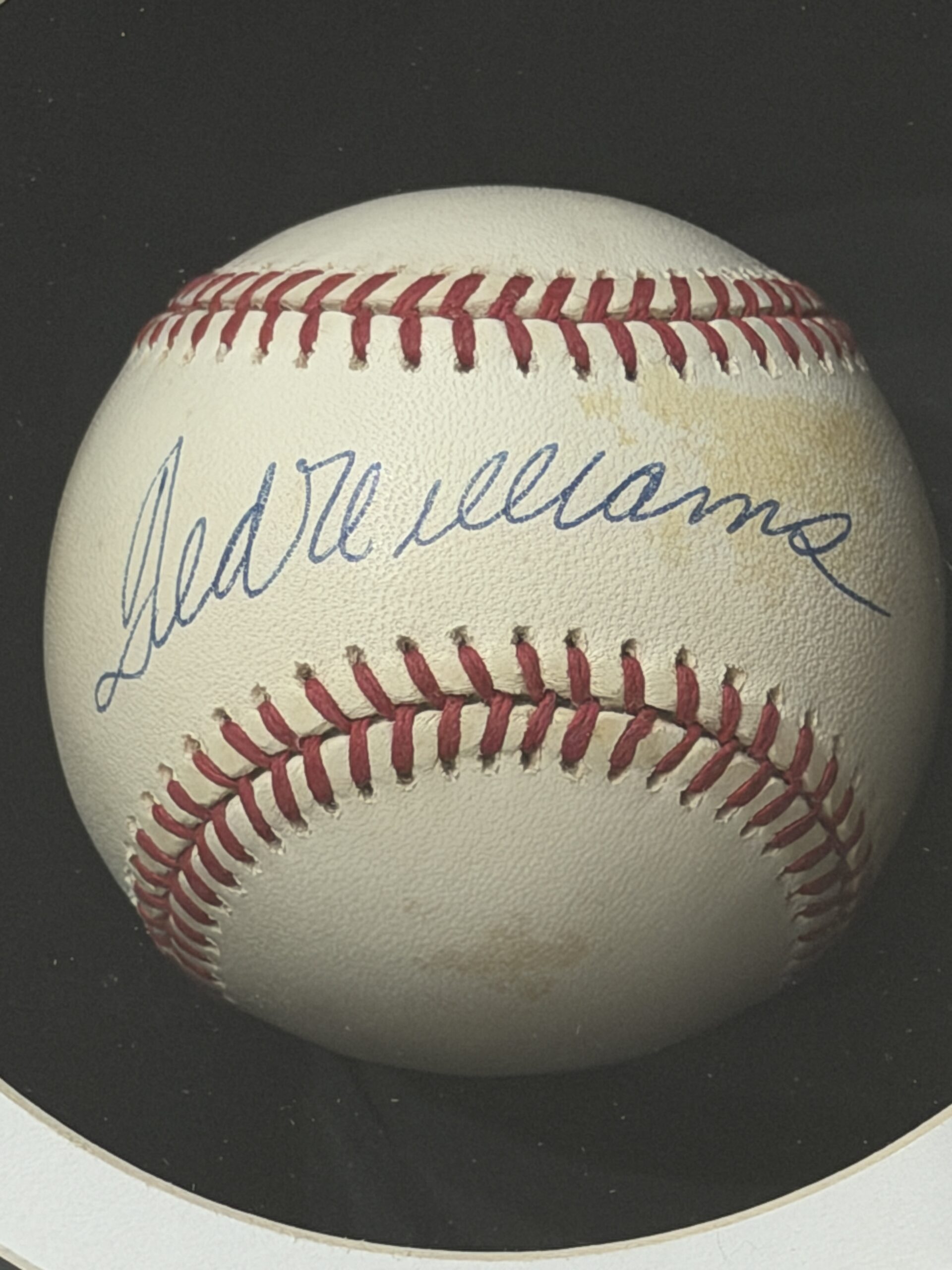 Pelota autografiada por el jugador leyenda de los Red Sox, Ted Williams