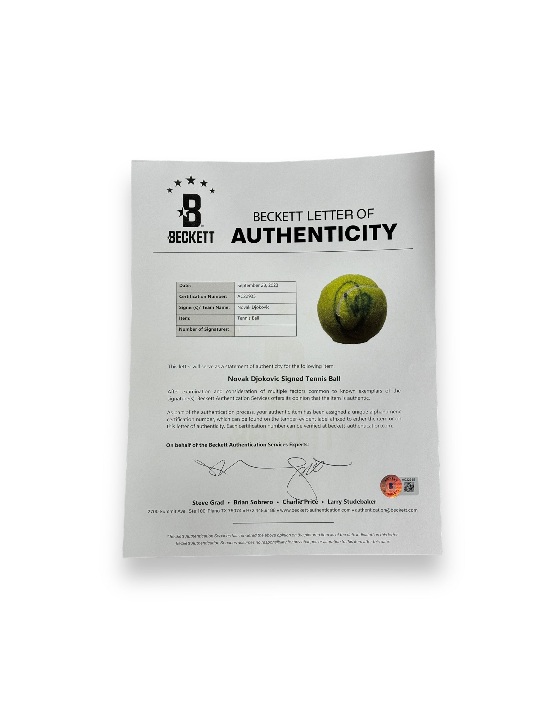 Certificado de Autenticidad BECKETT