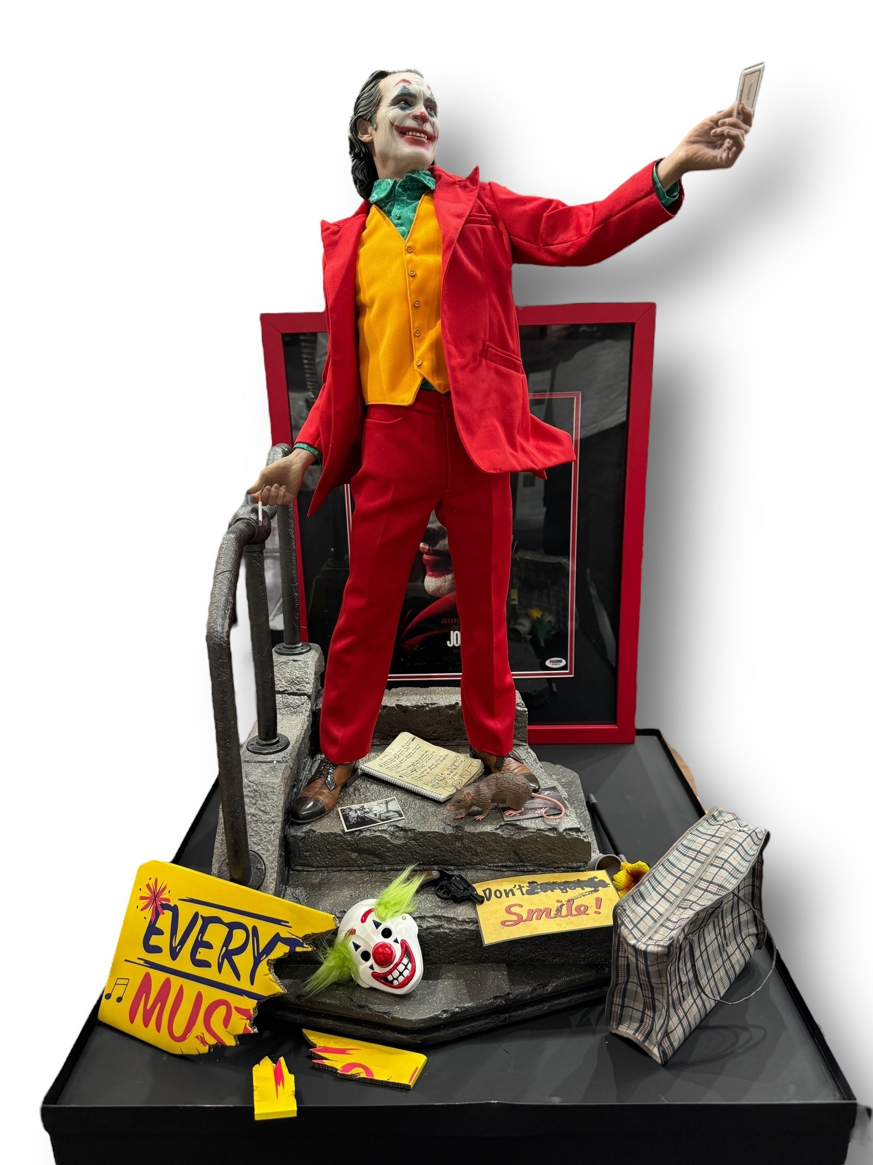 Set de estatua escala 1:3 y cuadro autografiado por el actor de cine, Joaquin Phoenix.