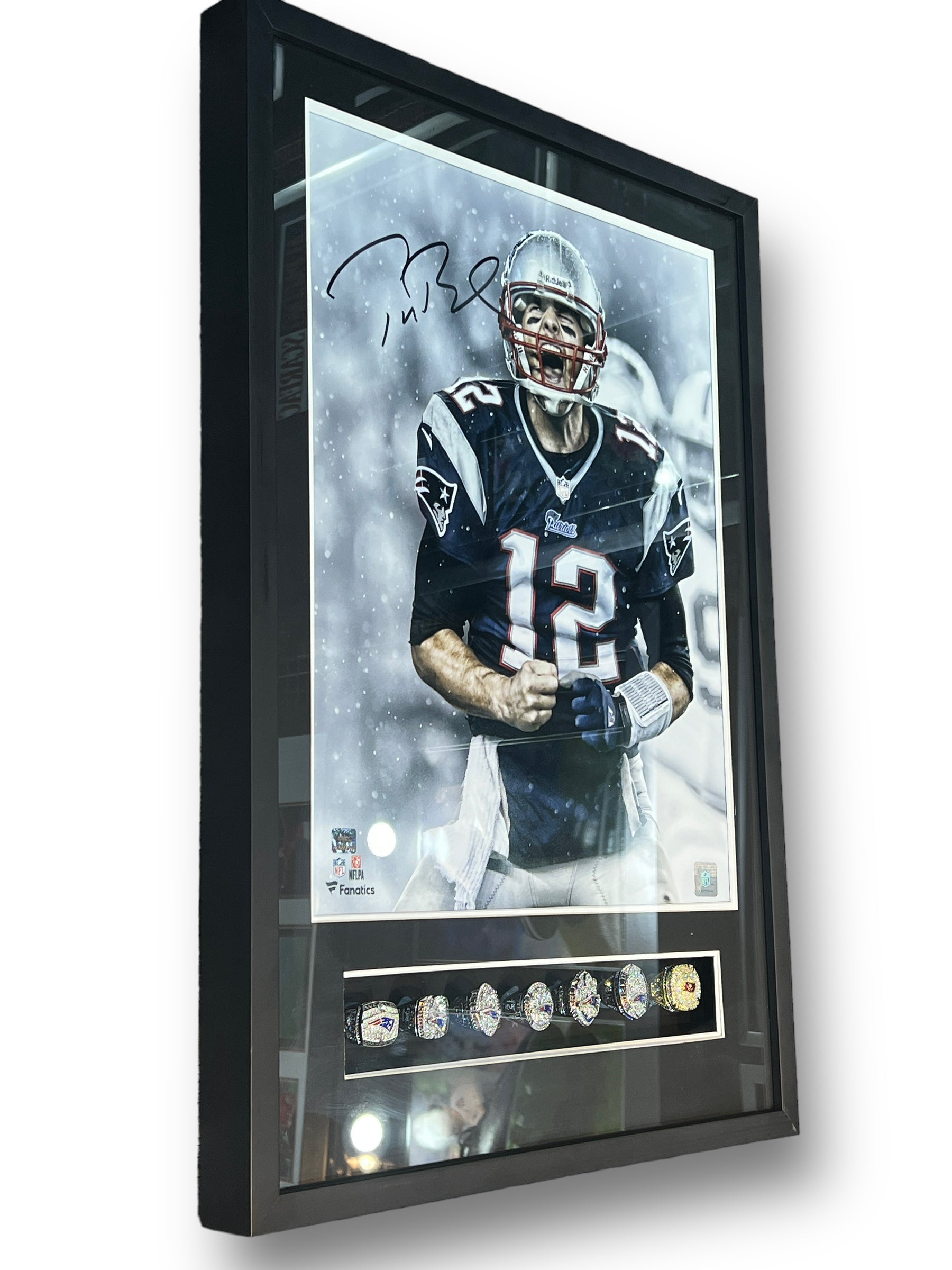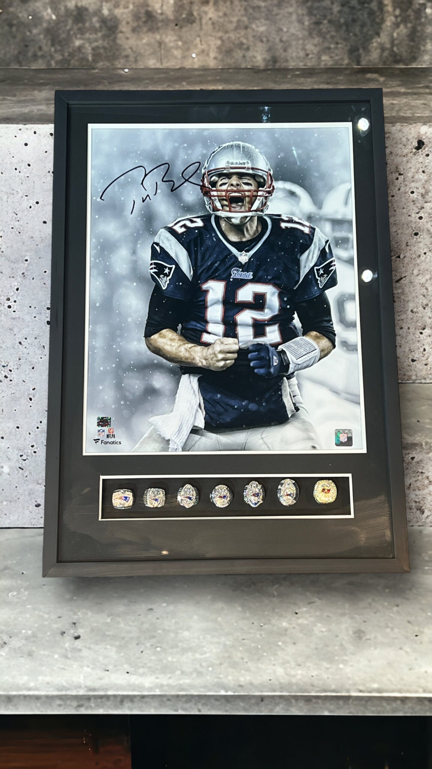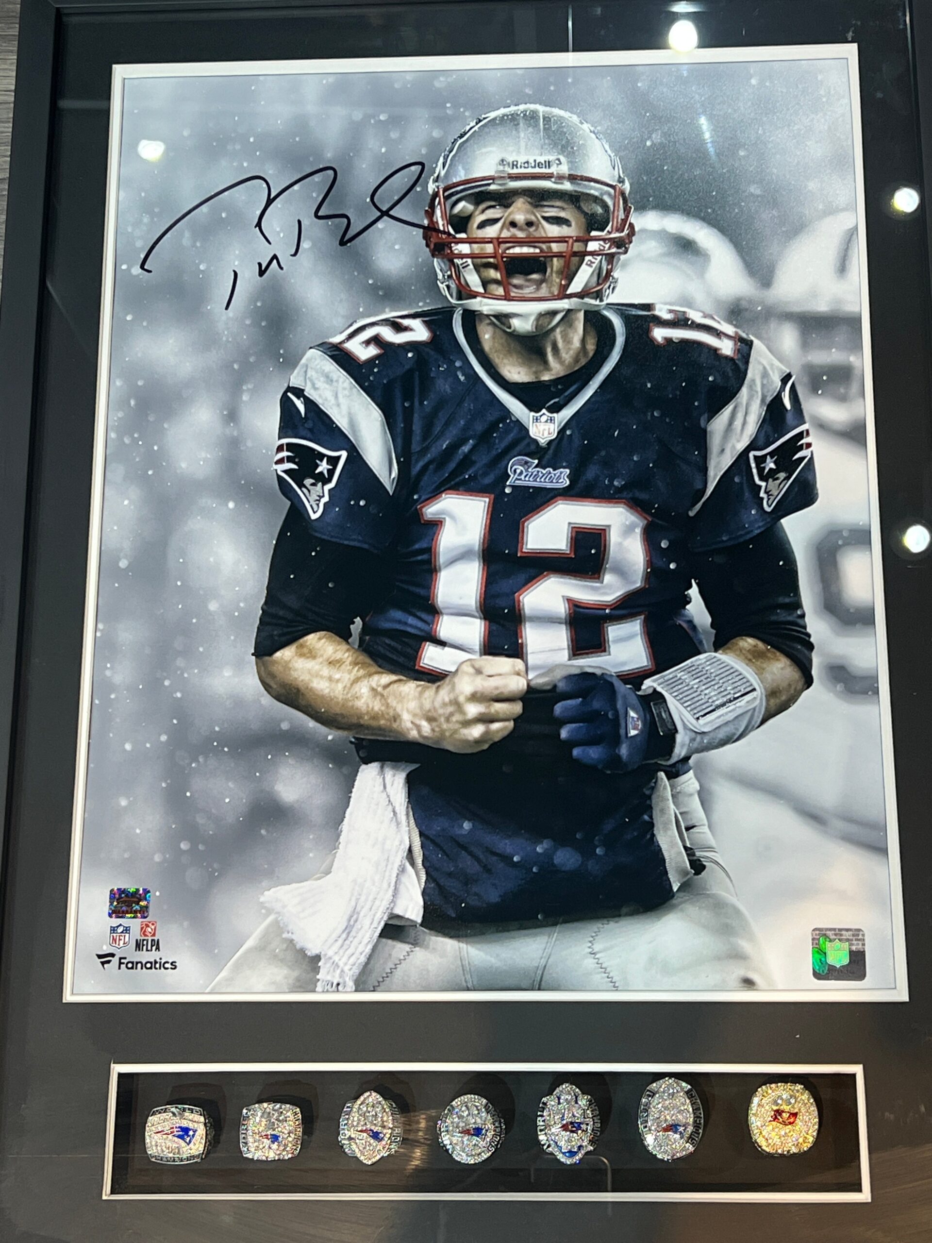 Poster enmarcado por el jugador de los Patriots Tom Brady