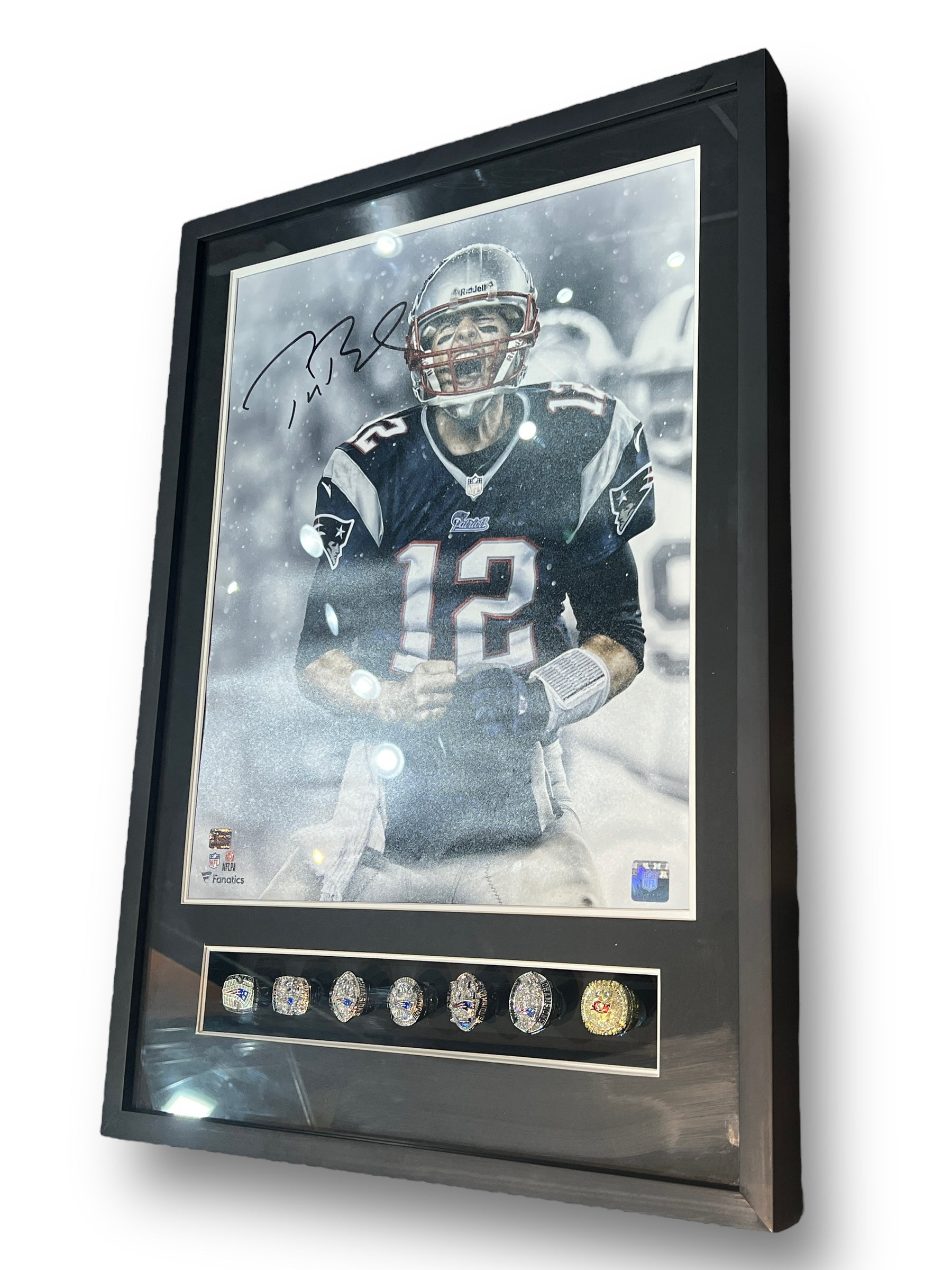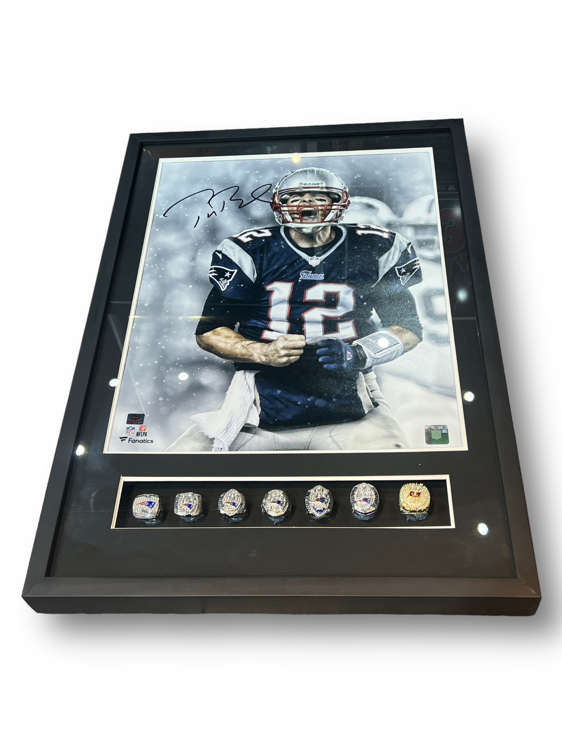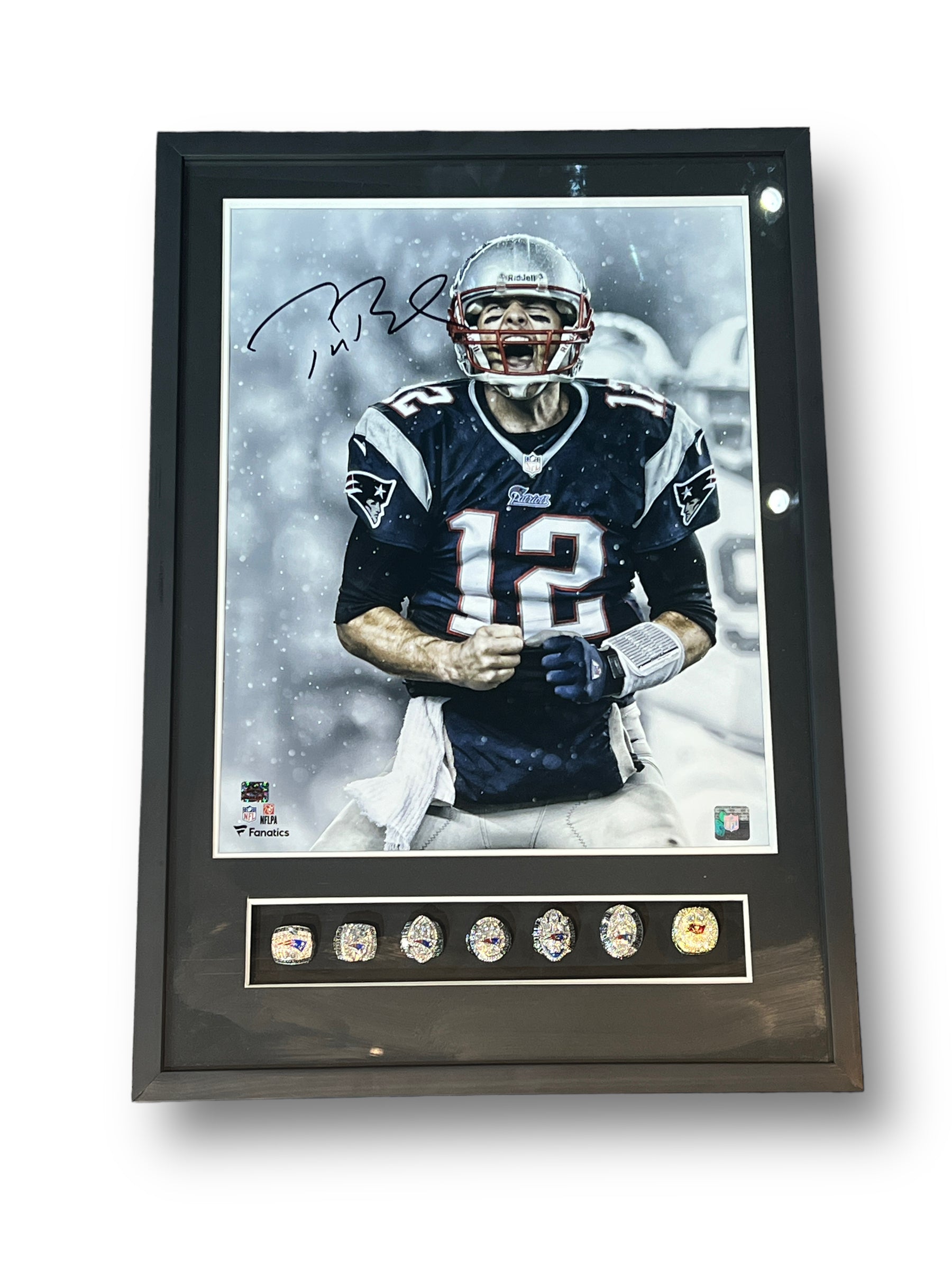 Poster enmarcado por el jugador de los Patriots Tom Brady