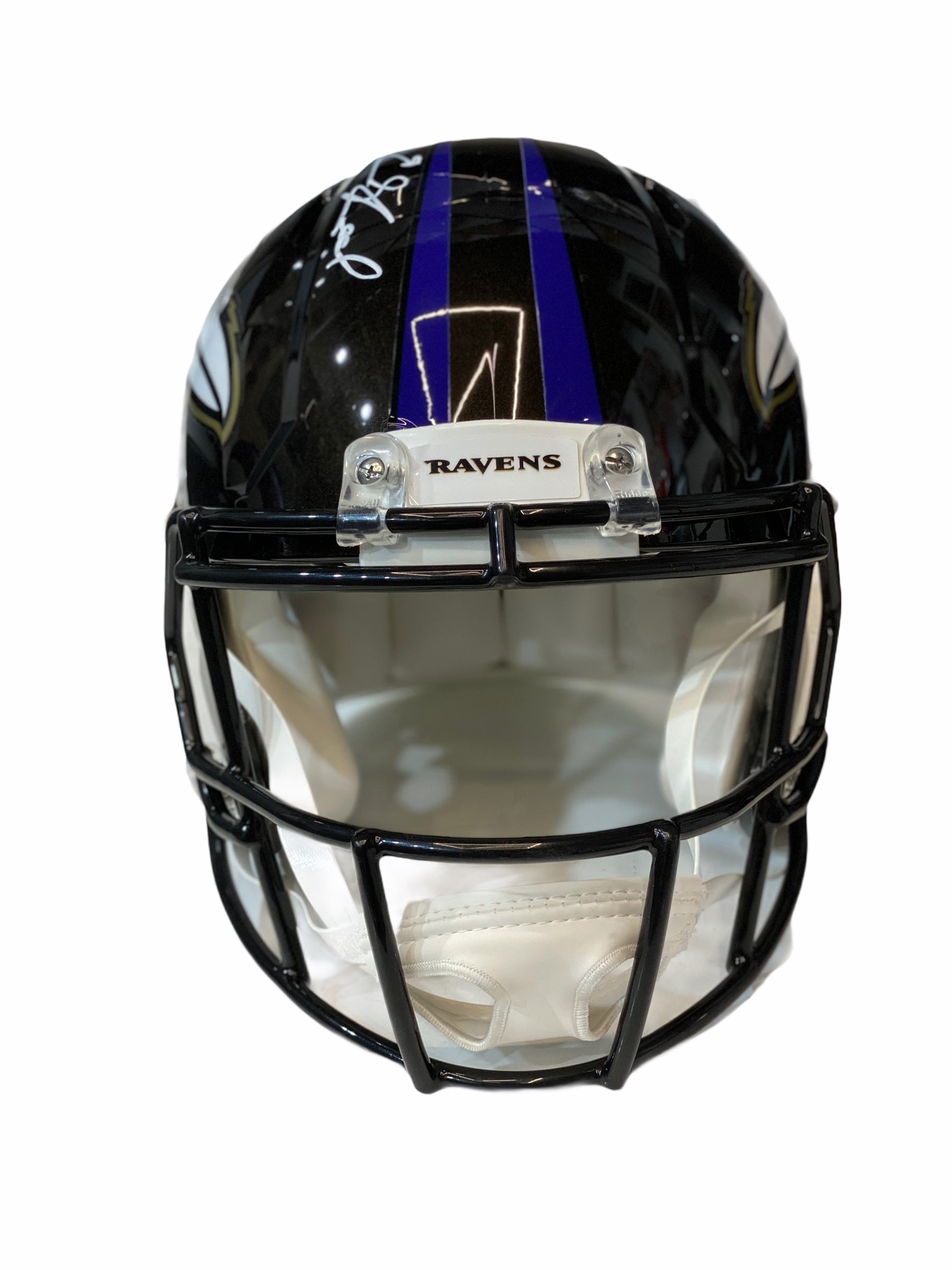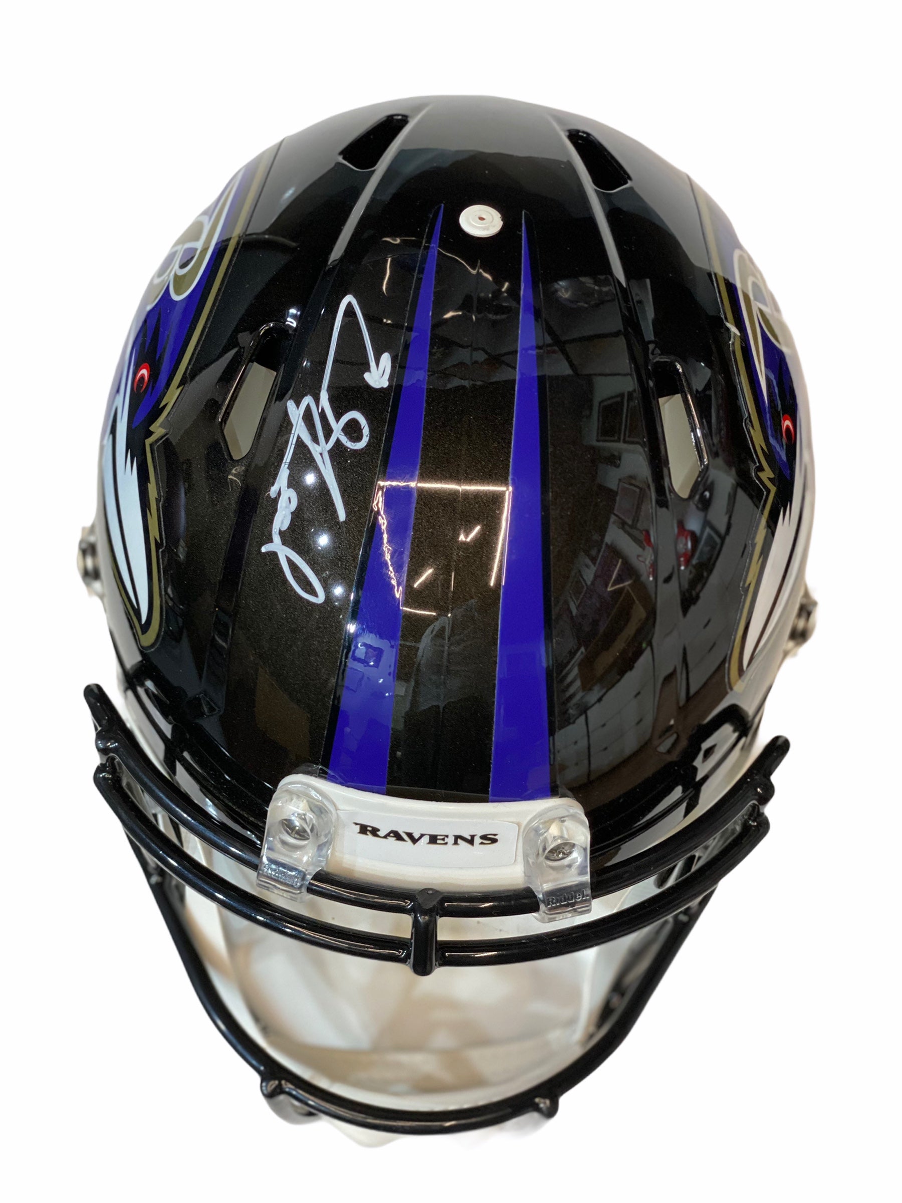 Casco Proline autografiado por Ed Reed de los Baltimore Ravens.