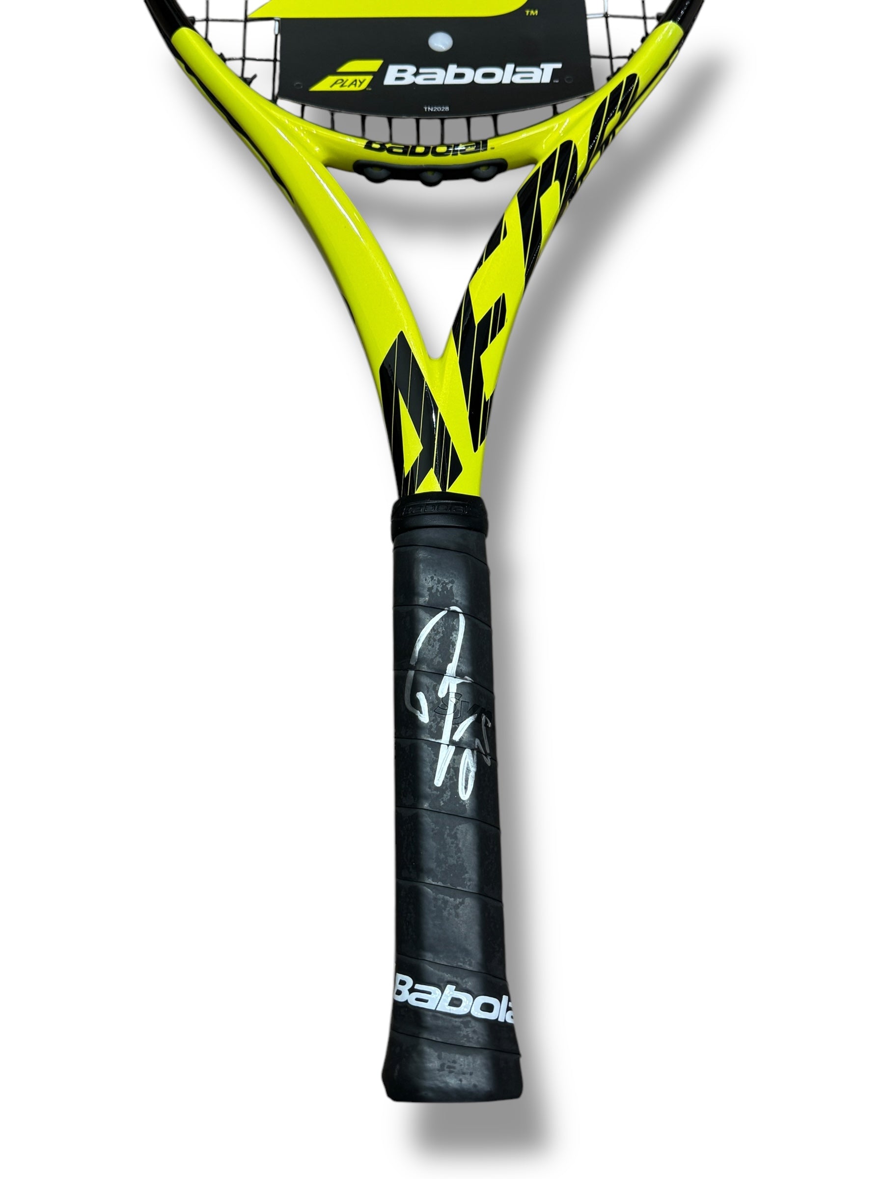 Raqueta enmarcada por el campeón de tenis, Rafael Nadal.